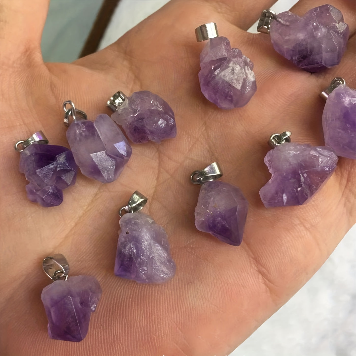 Add a touch of natural beauty to your jewelry creations with these unique irregular amethyst rock stone pendants. Perfect for necklaces or bracelets, these pendants showcase the natural beauty of amethyst.