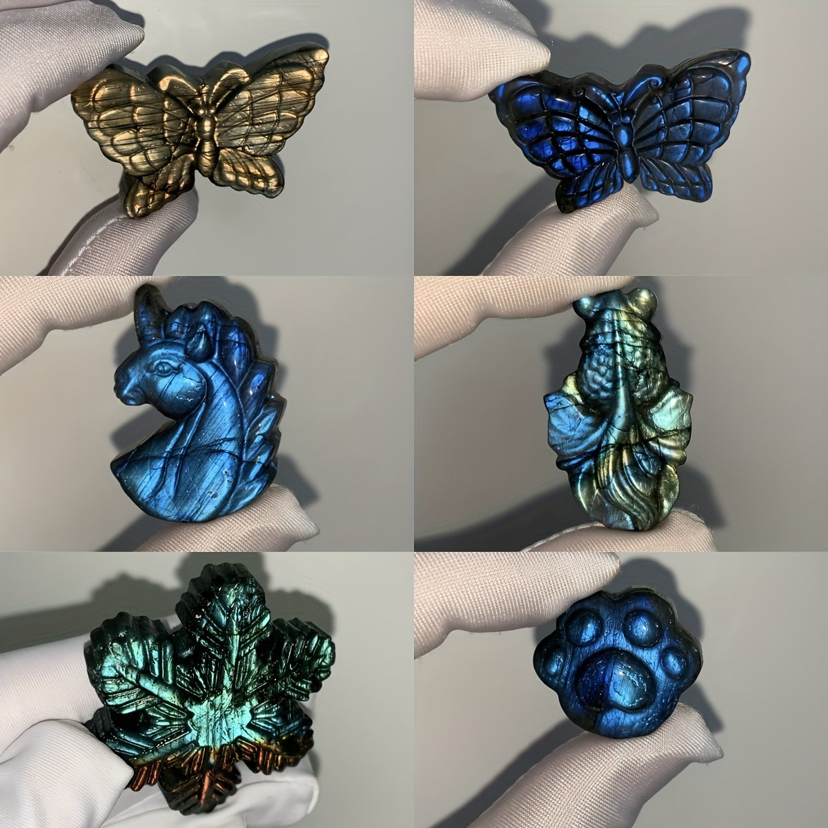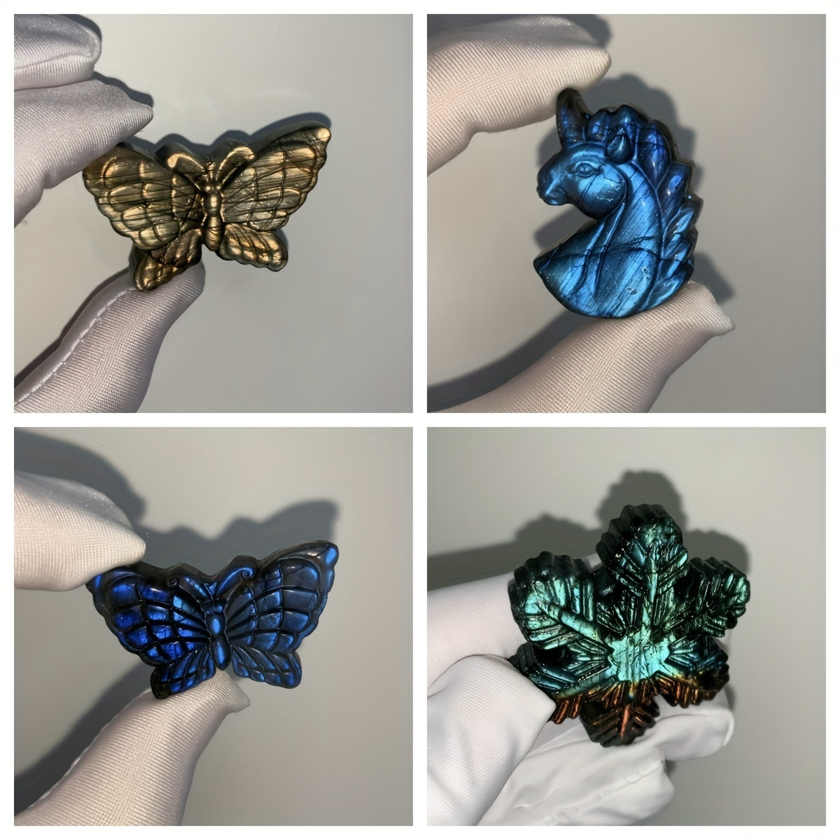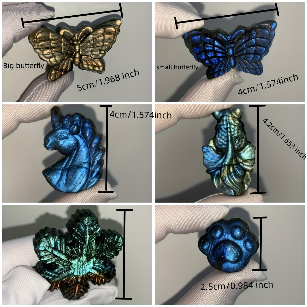 This stunning Labradorite butterfly carving is perfect for DIY projects, pendants, indoor decoration, or crystal healing. The intricate details and sparkle make it a unique piece.