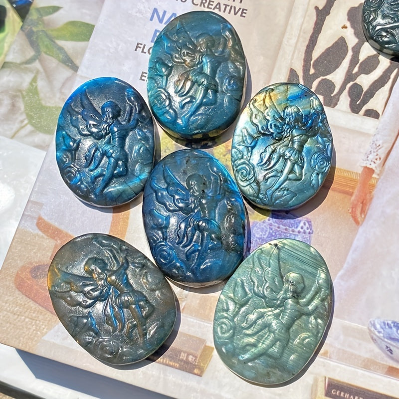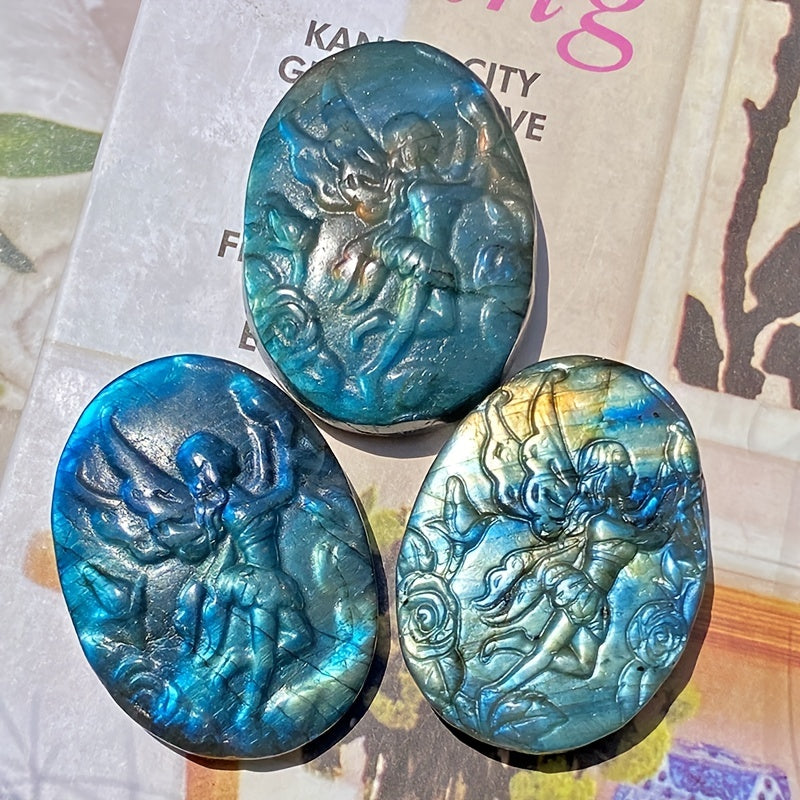 This exquisite Labradorite Butterfly Fairy crystal carving is a stunning addition to any space. Its natural beauty and intricate design make it a perfect office decoration or gift for loved ones. Labradorite is known for its healing properties, promoting freedom and beauty in your life.