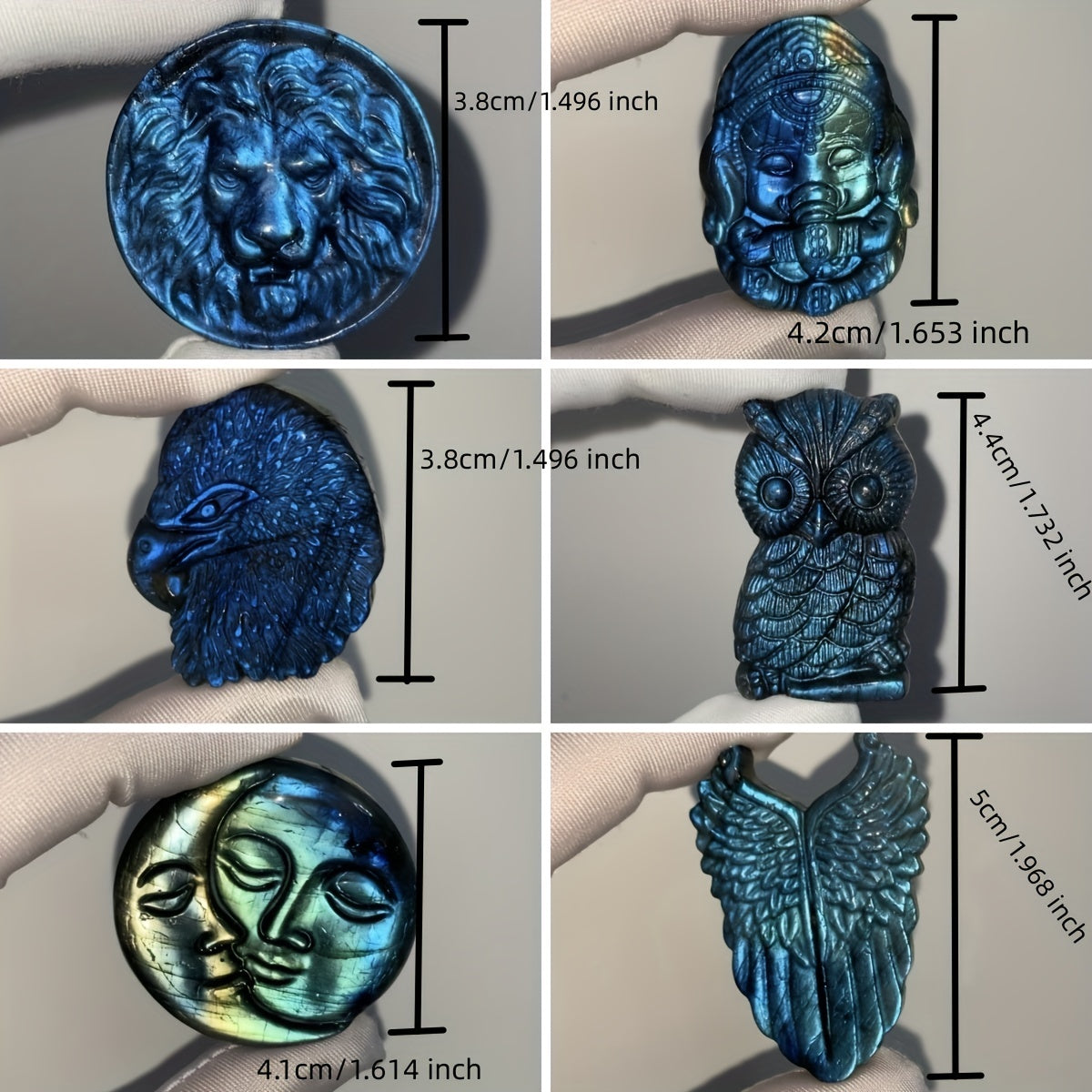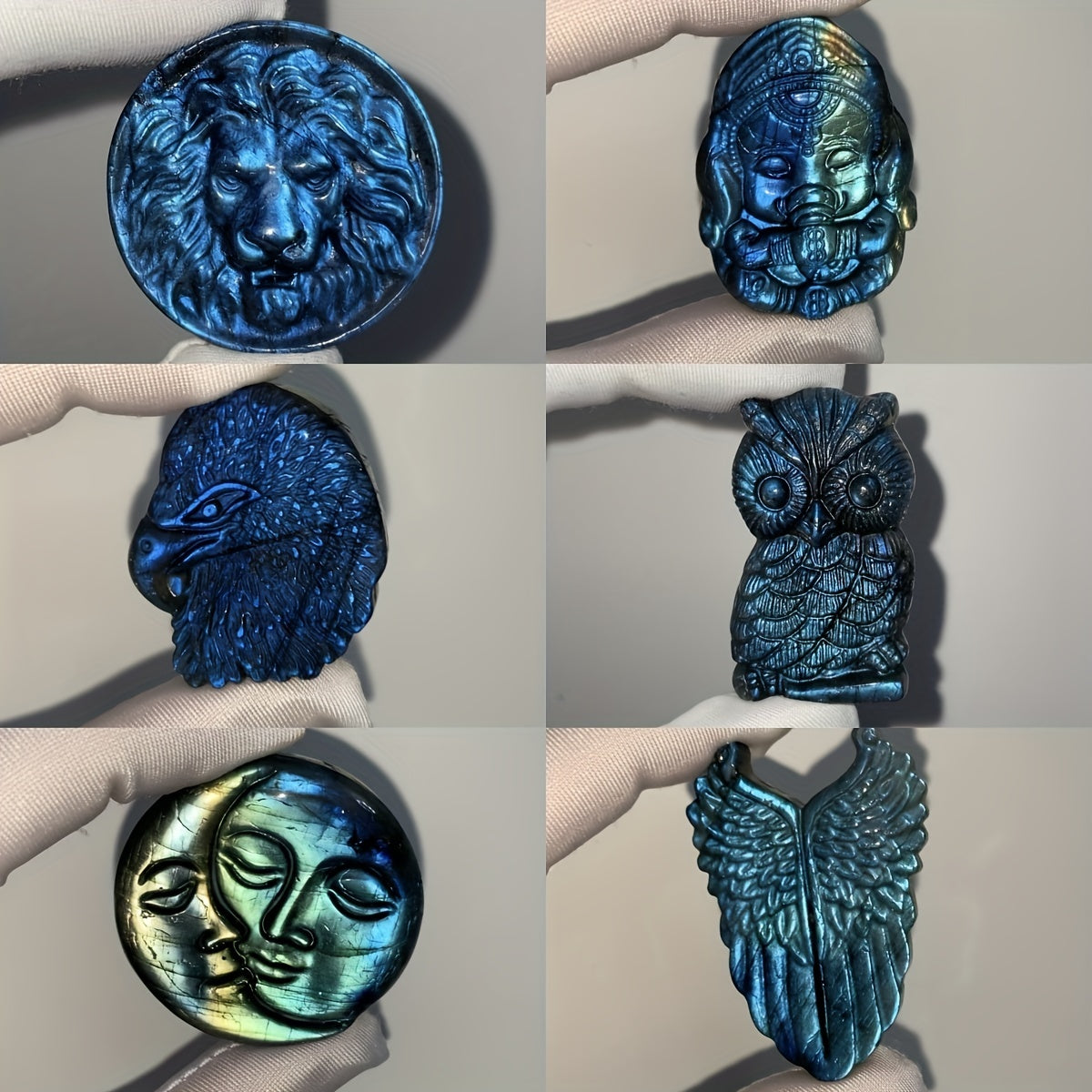Labradorite Carved Lion Ganesha Elephant Eagle Owl Sun Moon Pendant