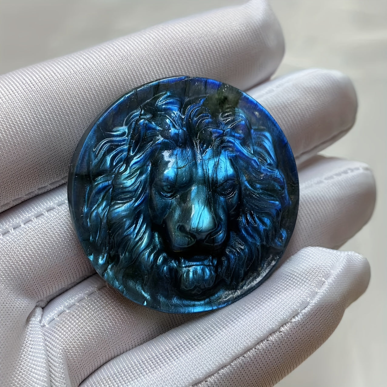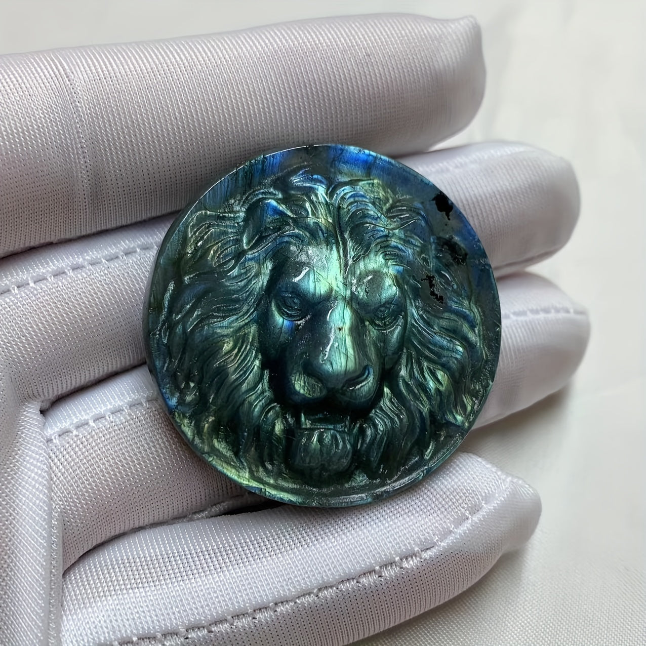 This natural Labradorite carved lion pendant is a stunning addition to any collection. It features flash crystal properties ideal for healing and Reiki practices.