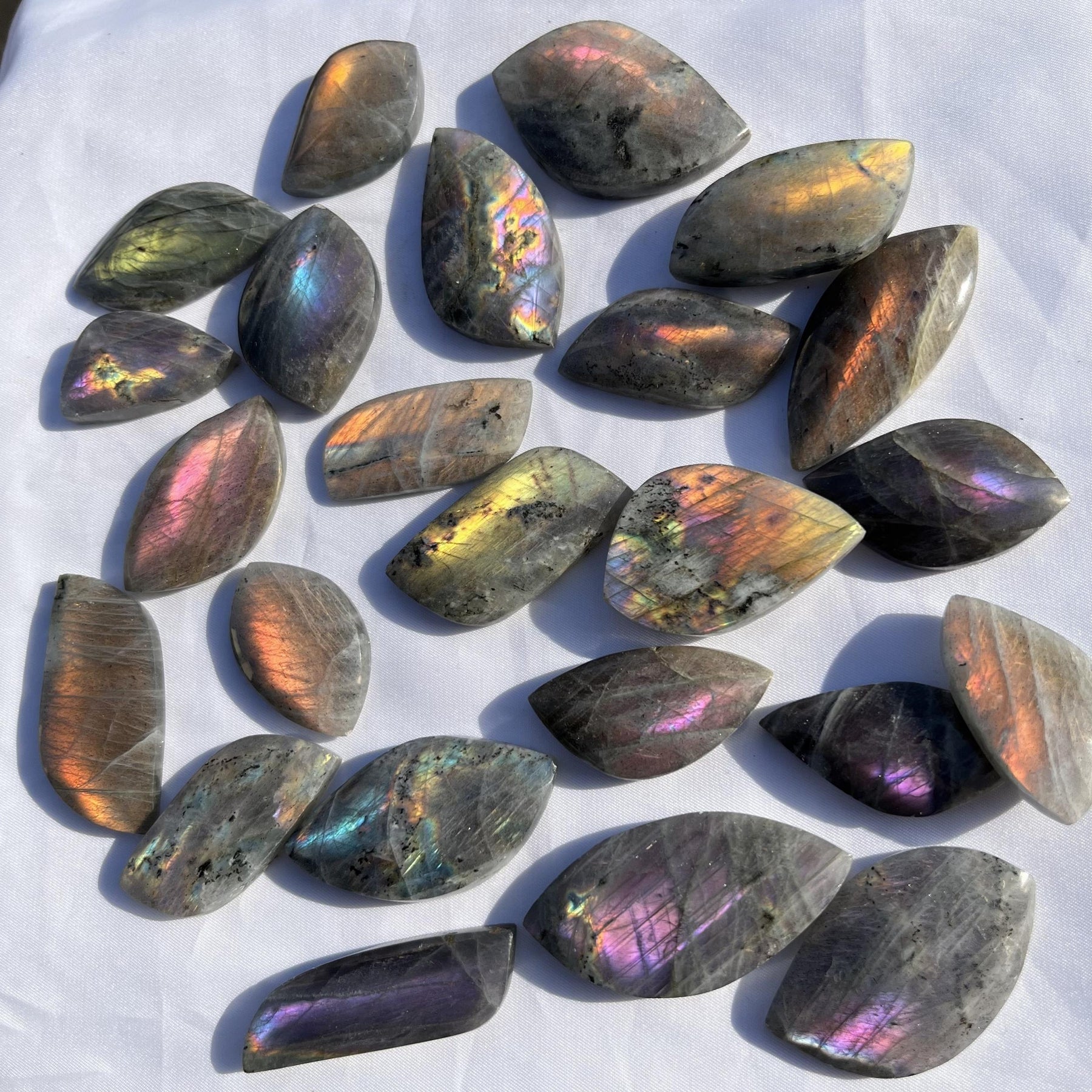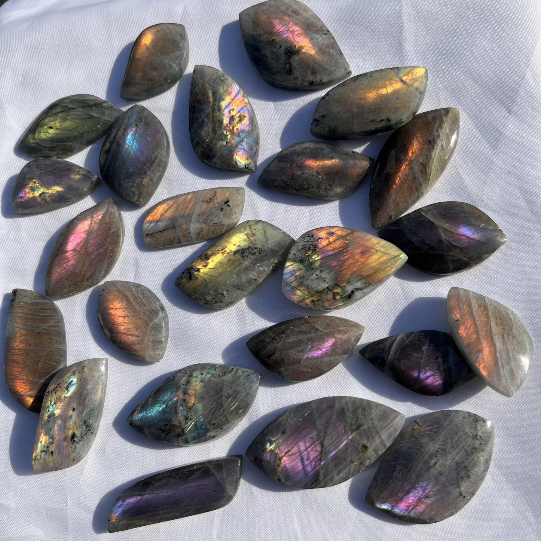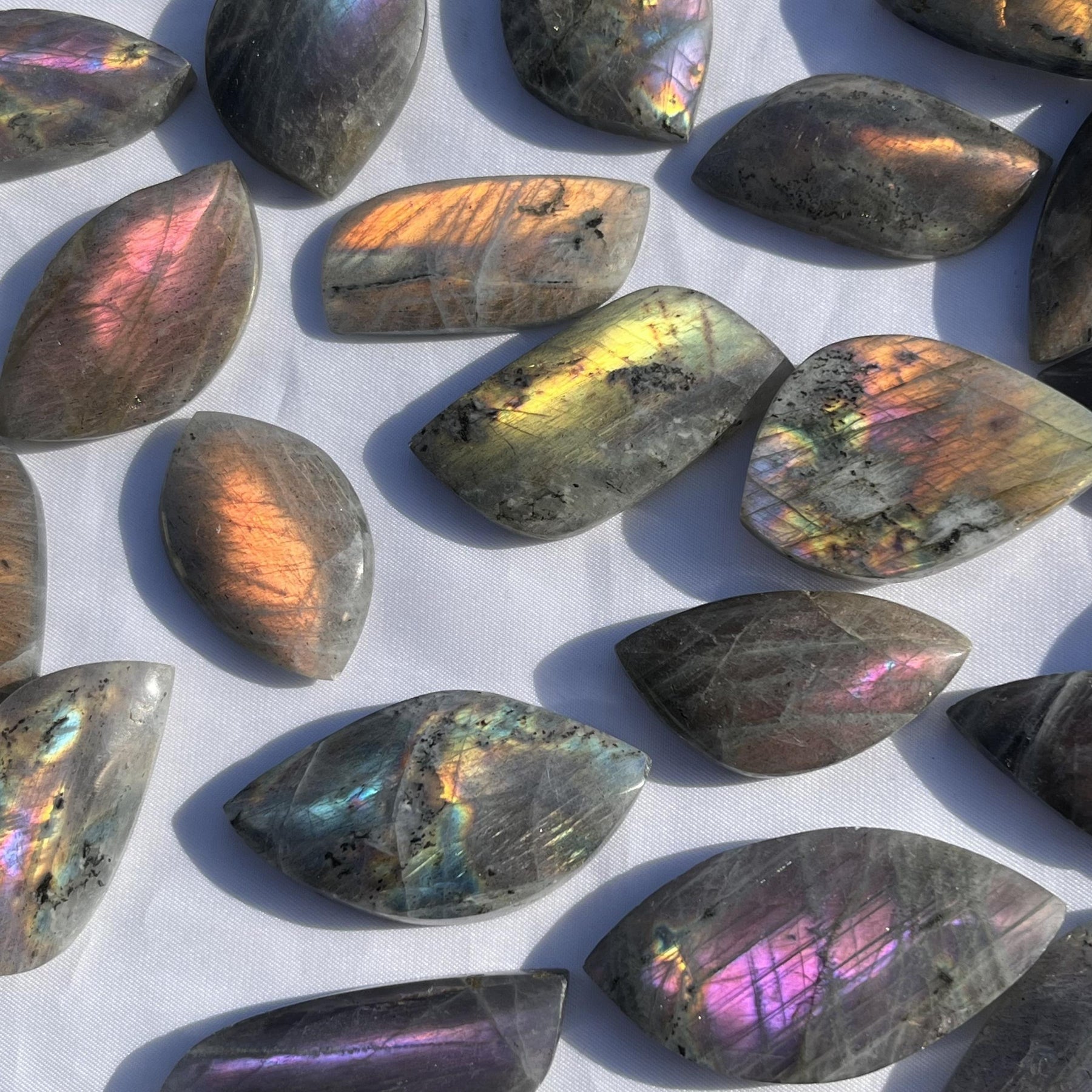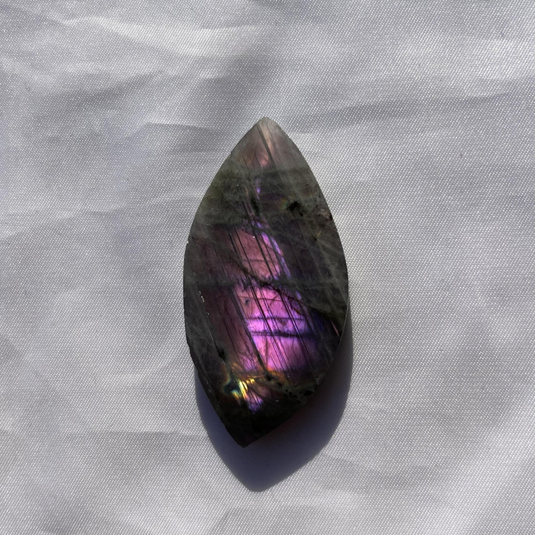 Enhance your space with this natural purple rainbow Labradorite crystal leaf pendant. Perfect for DIY projects, crystal healing, Reiki, and home decor.