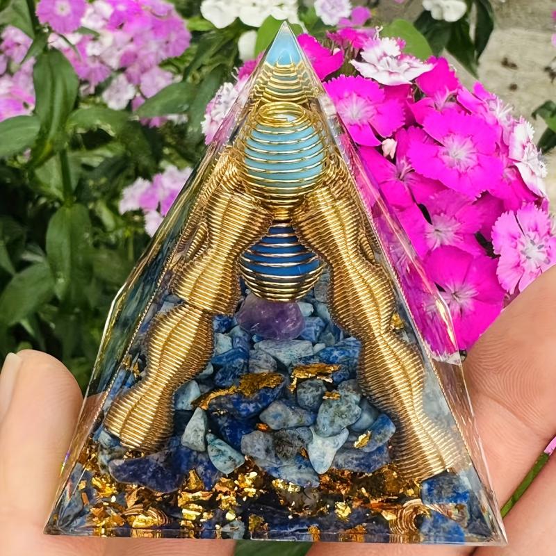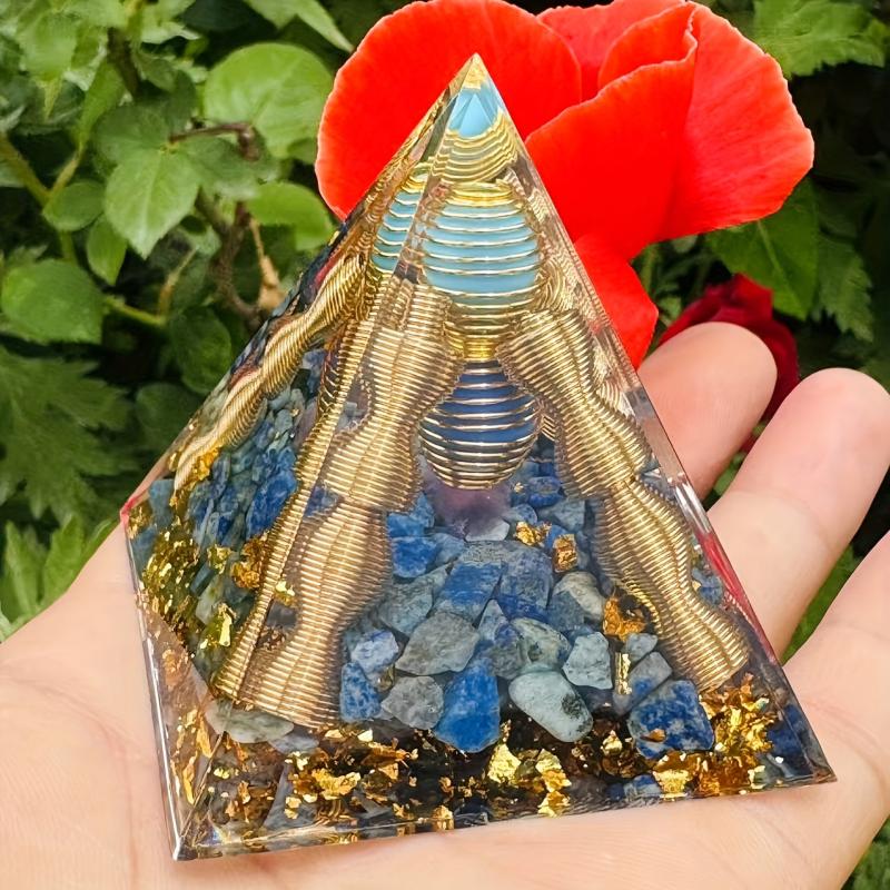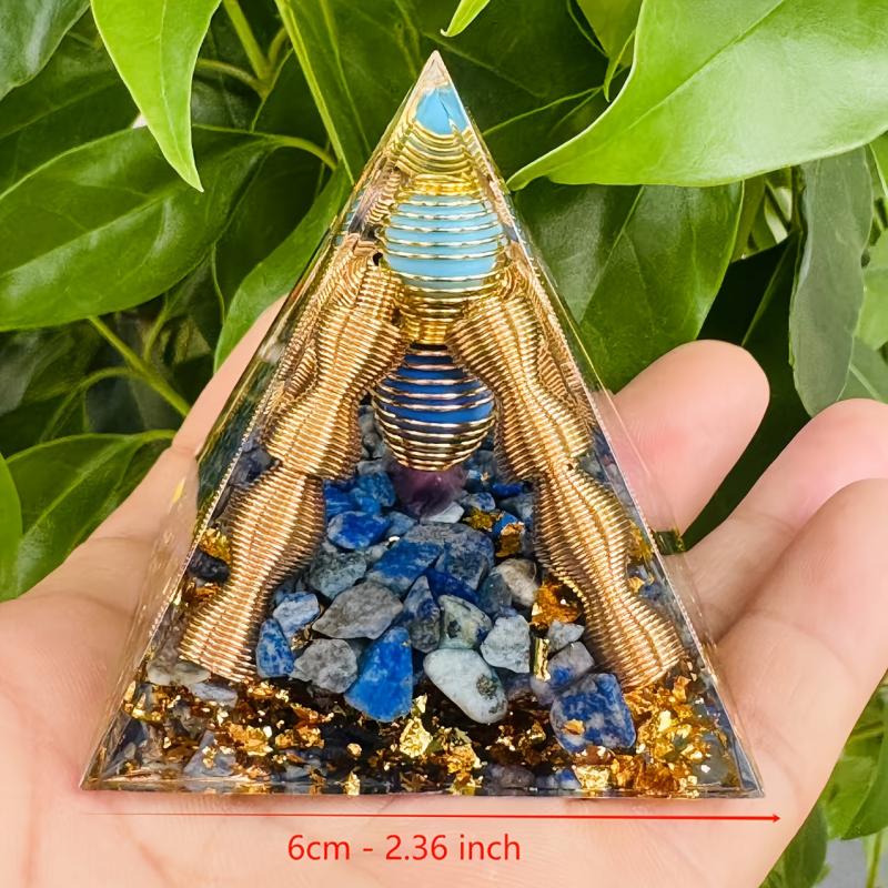 Enhance your workspace with this 2.35-inch lapis lazuli Ogen pyramid generator. Perfect as a desktop decoration ornament.