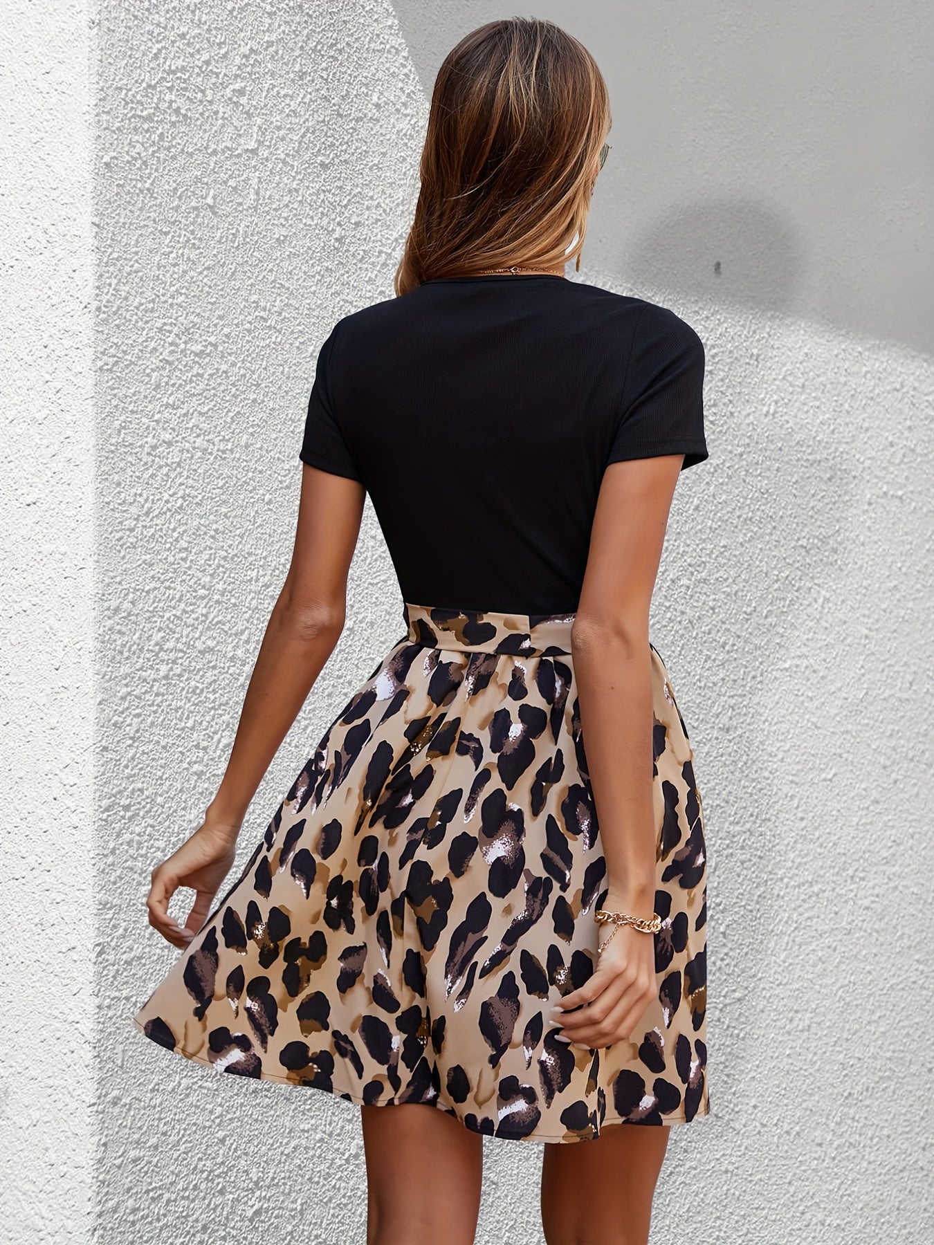 Stay stylish and comfortable in this leopard print short sleeve dress. Perfect for summer and spring!