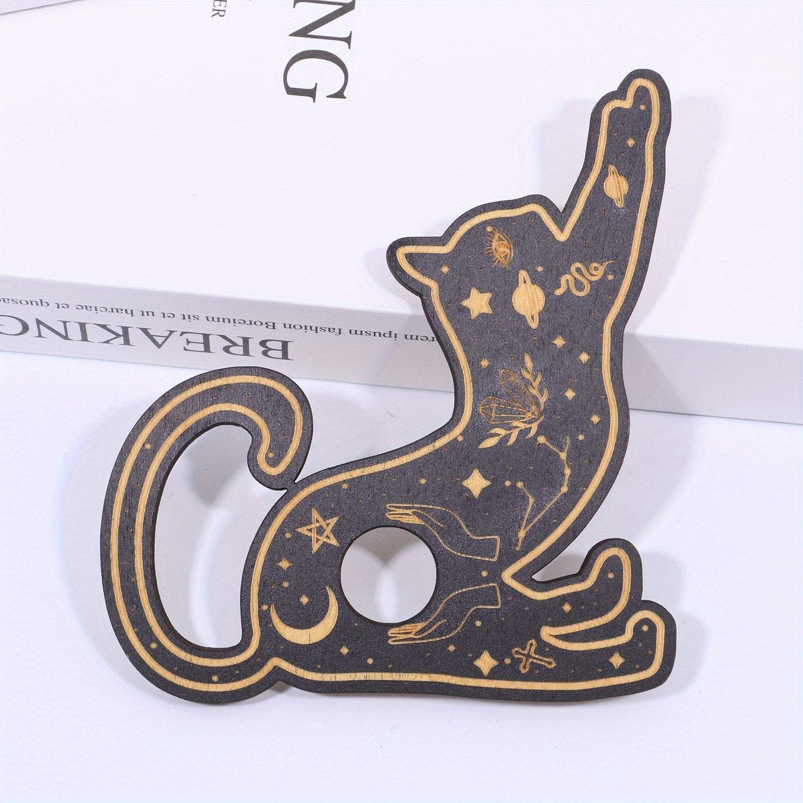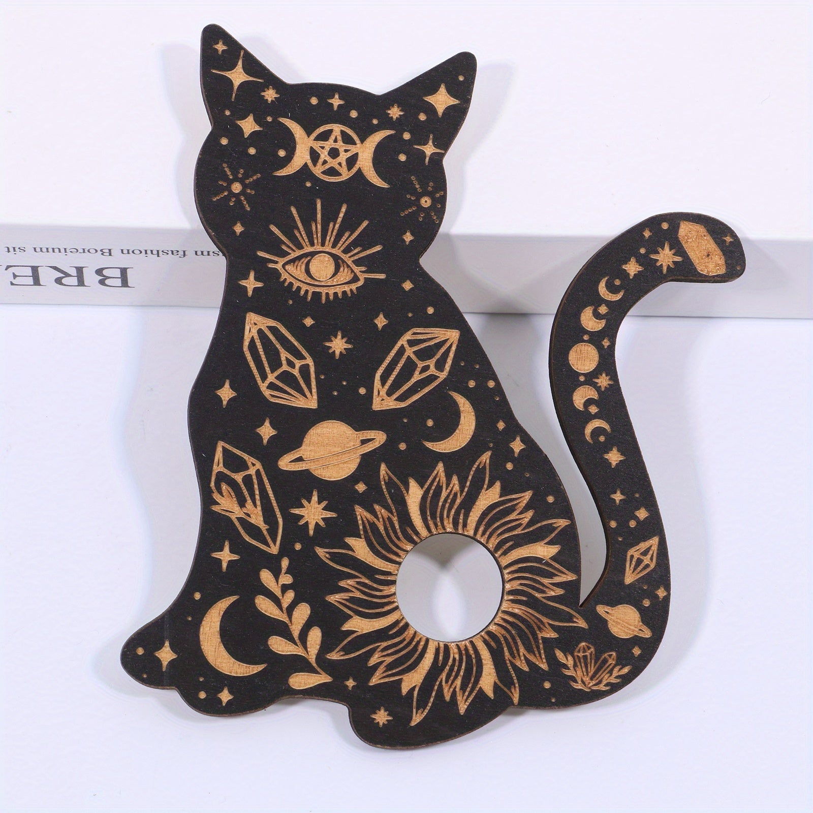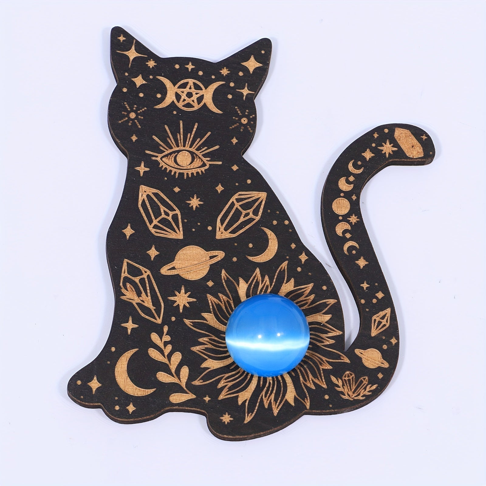 This crystal ball base features a magical cat design that provides protection from evil forces. It is perfect for displaying tarot cards, seven chakras crystals, and other crystal healing items.