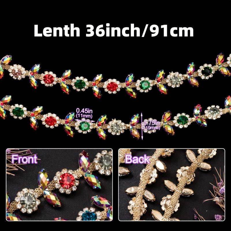 Multicolor Faux Gemstones Rhinestone Chain 1 Yard Sew On Trim