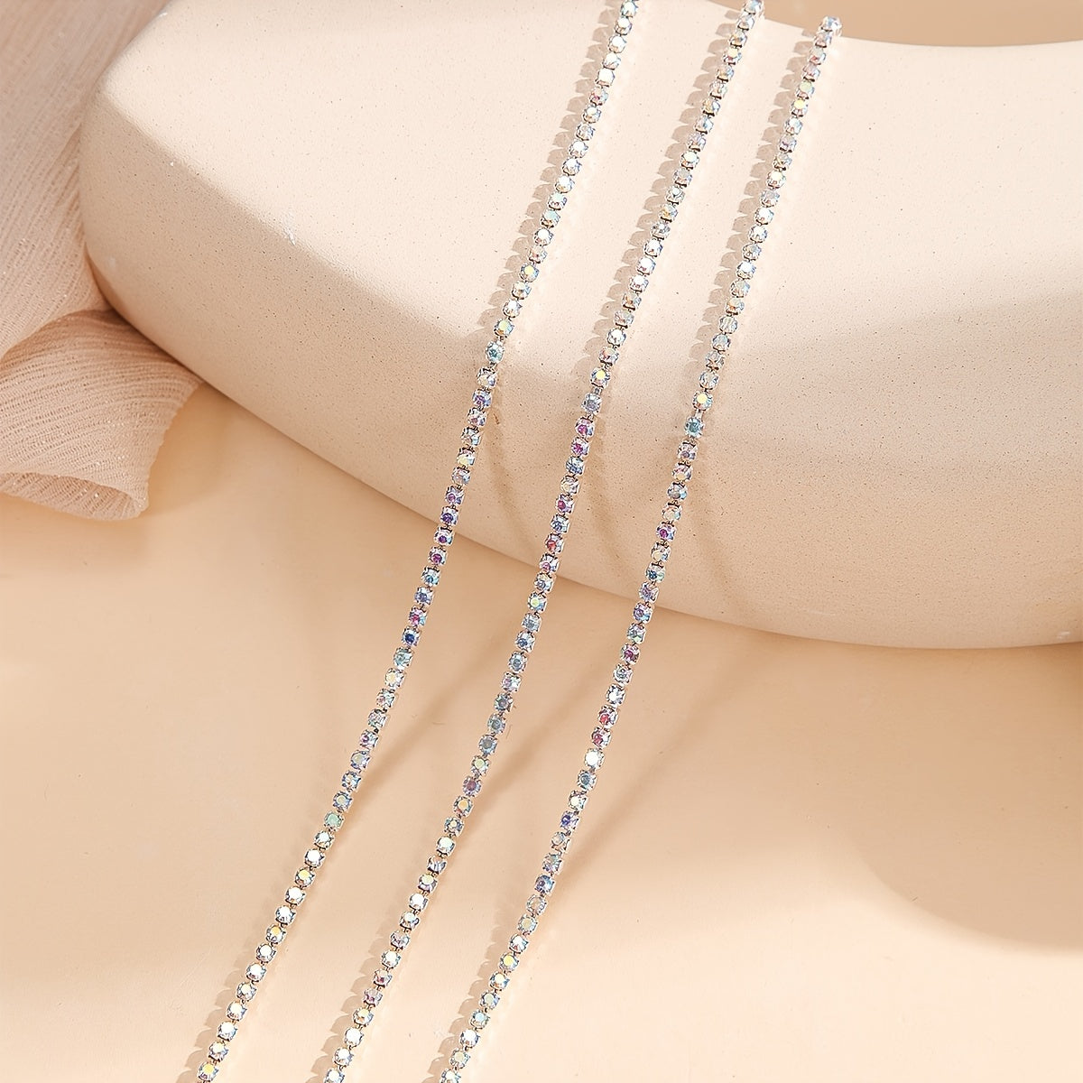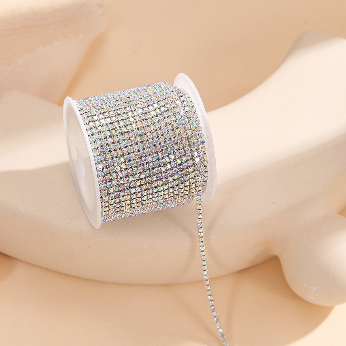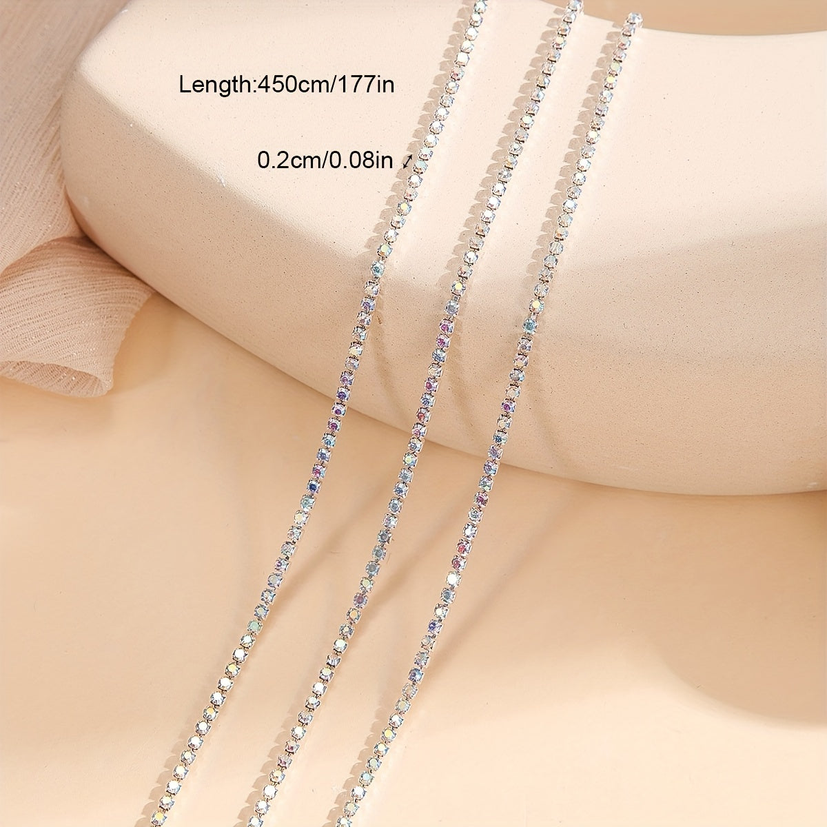 Enhance your DIY projects with this multicolor rhinestone chain. Perfect for adding sparkle to nail art, shoes, clothing, and phone cases.