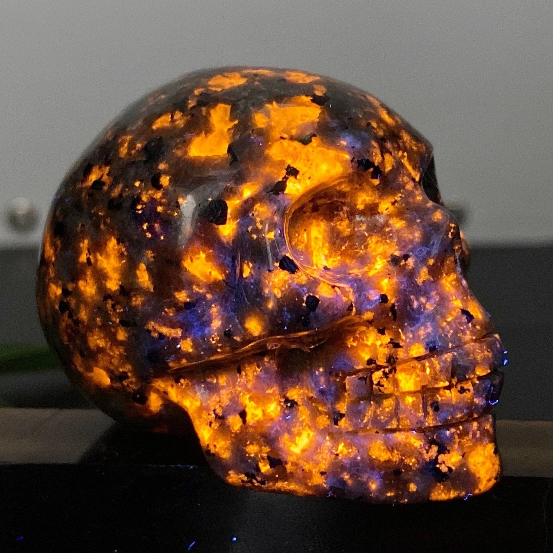 This 52mm natural hand-carved flame stone bone crystal skull carving is a powerful healing stone. Its unique design and crystal properties make it a great addition to any collection.
