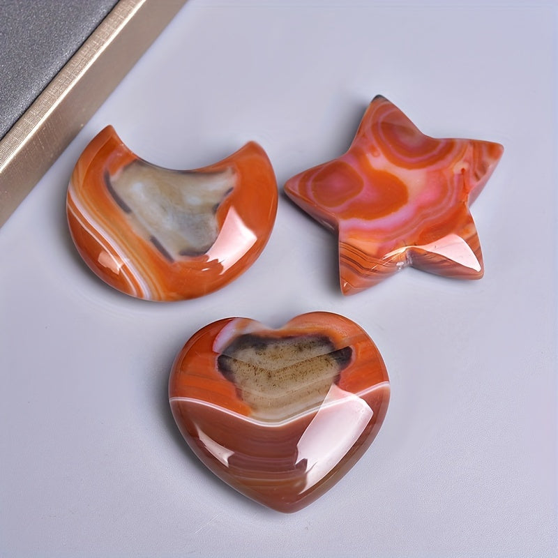 This beautiful agate carving features a heart, star, and moon design. Perfect for decoration in any setting or as a thoughtful gift. Each piece is unique due to the natural variations in agate.