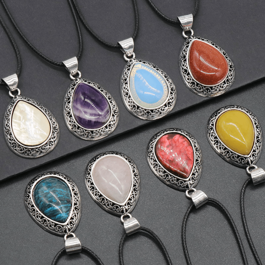 This stunning pendant features a natural crystal agate stone with an inlaid alloy abalone shell. It is a unique and eye-catching piece of jewelry.