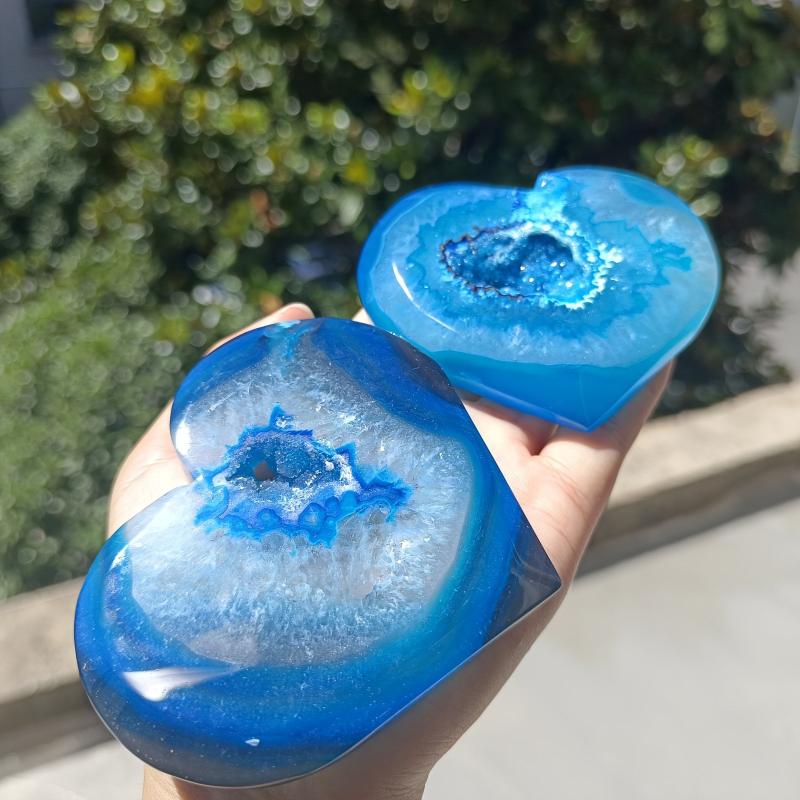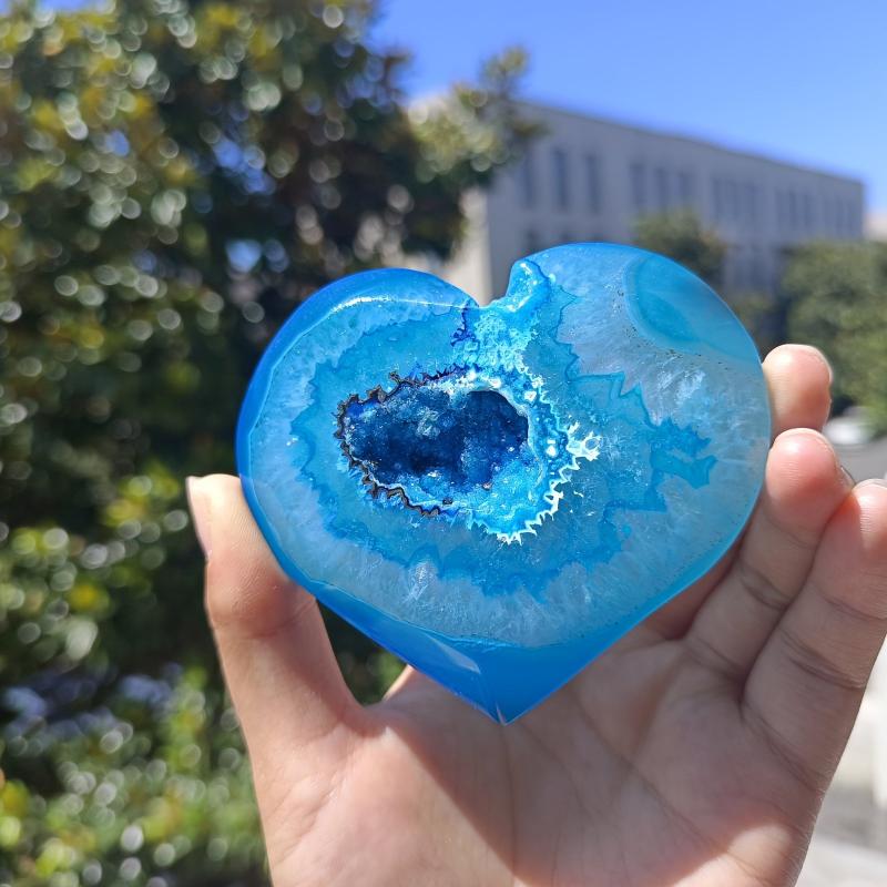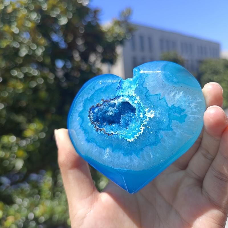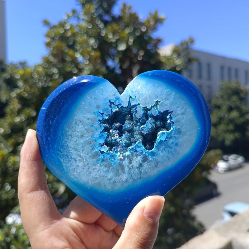 Sparkling crystal crystals in a polished palm stone, perfect for DIY home decor or as a unique gift for any occasion.