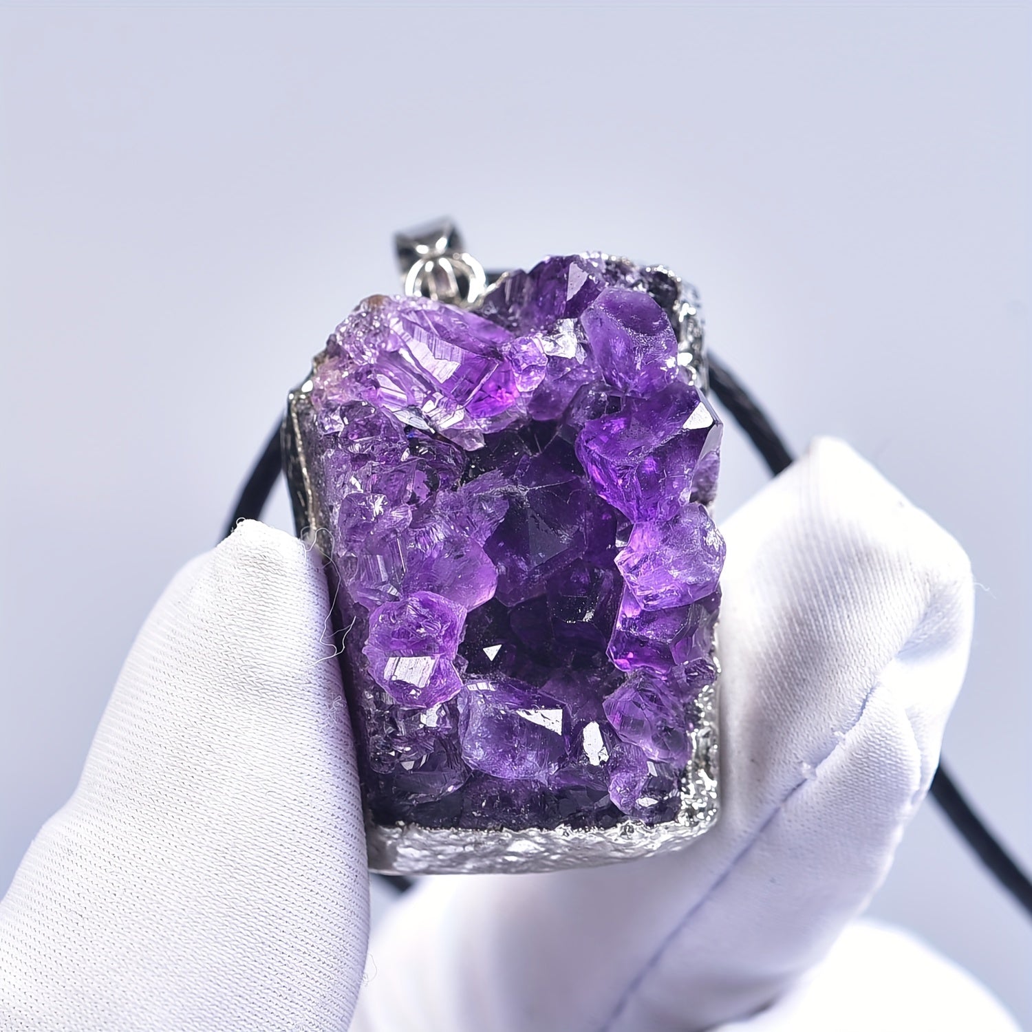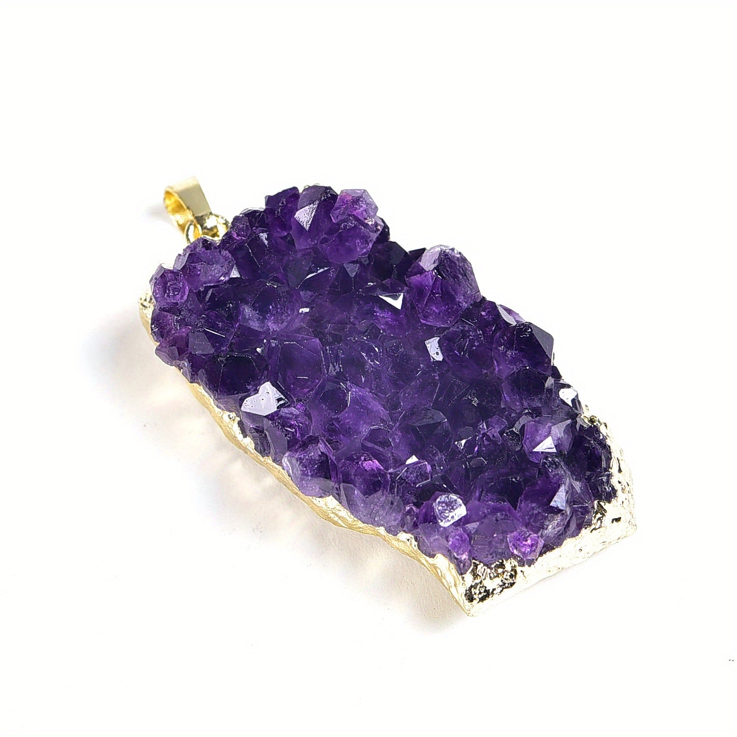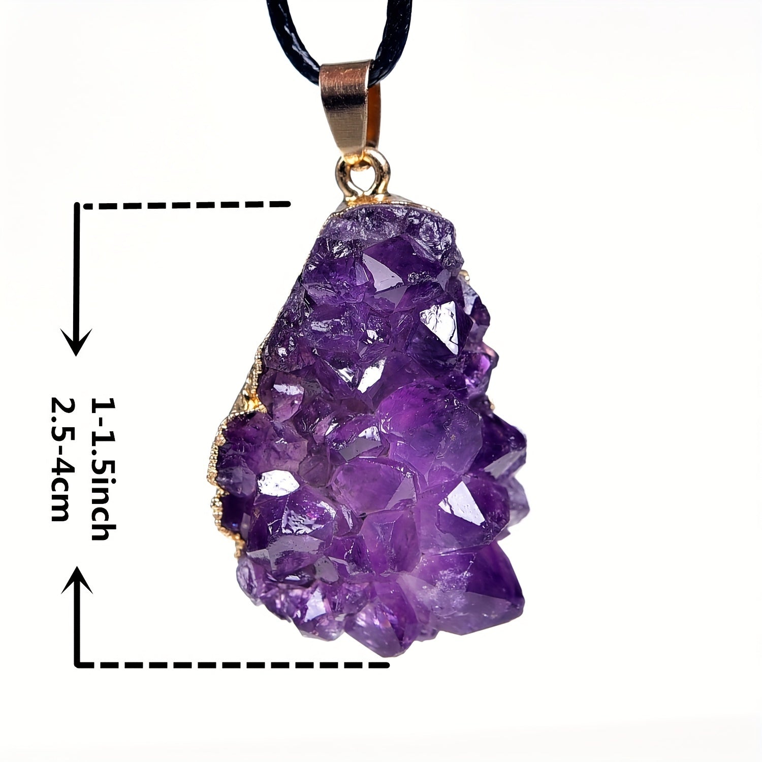 This natural amethyst cluster pendant is perfect for creating unique and elegant jewelry pieces. Each pendant is made from a genuine amethyst cluster, showcasing the natural beauty of the stone.