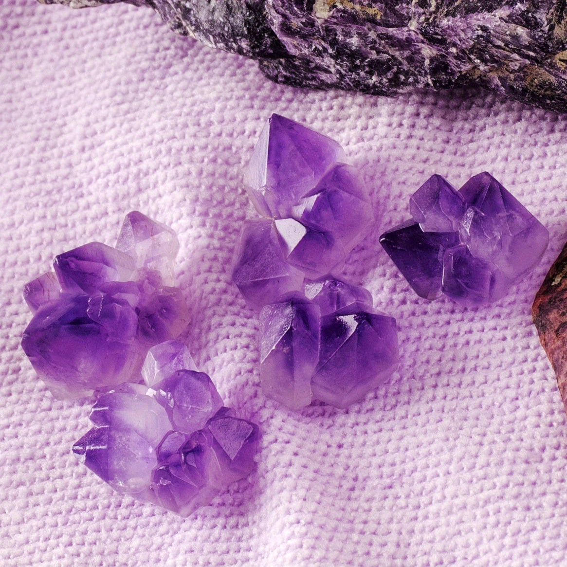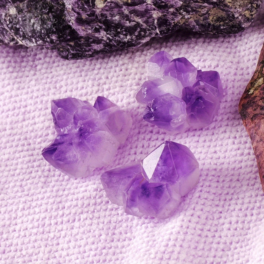 These healing stone amethyst charms are perfect for energy balance, chakra healing, and jewelry making. Each piece is a unique irregular shape.