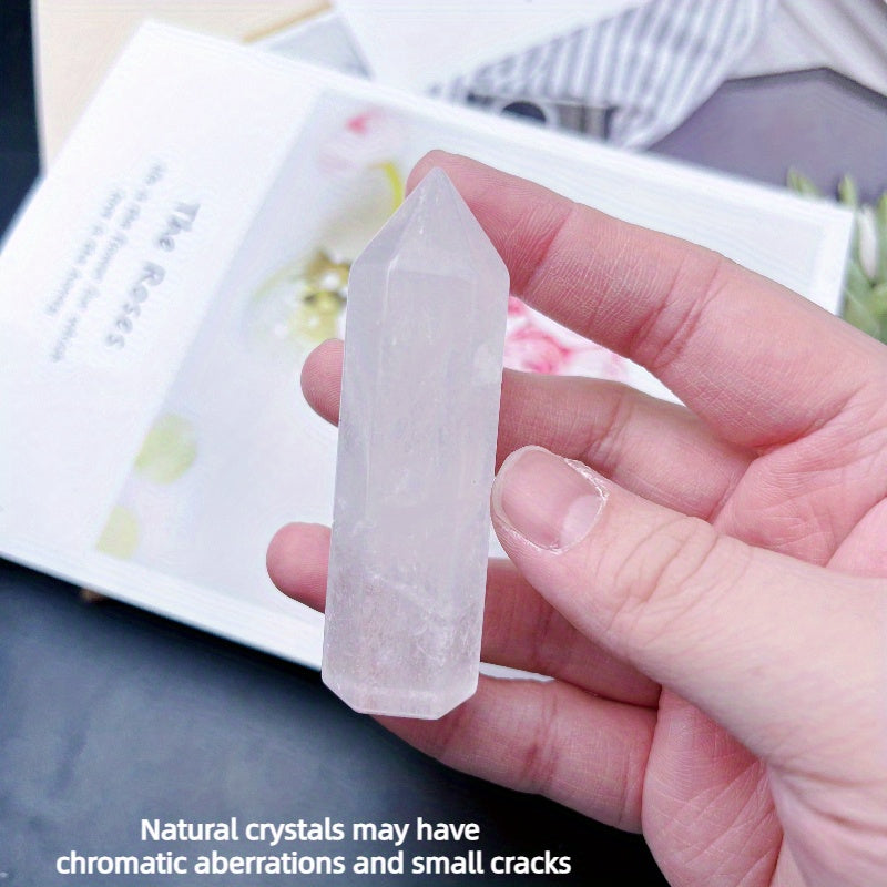 This natural clear quartz healing crystal wand features a 6 faceted single point crystal prism for meditation, reiki, and chakra balancing.