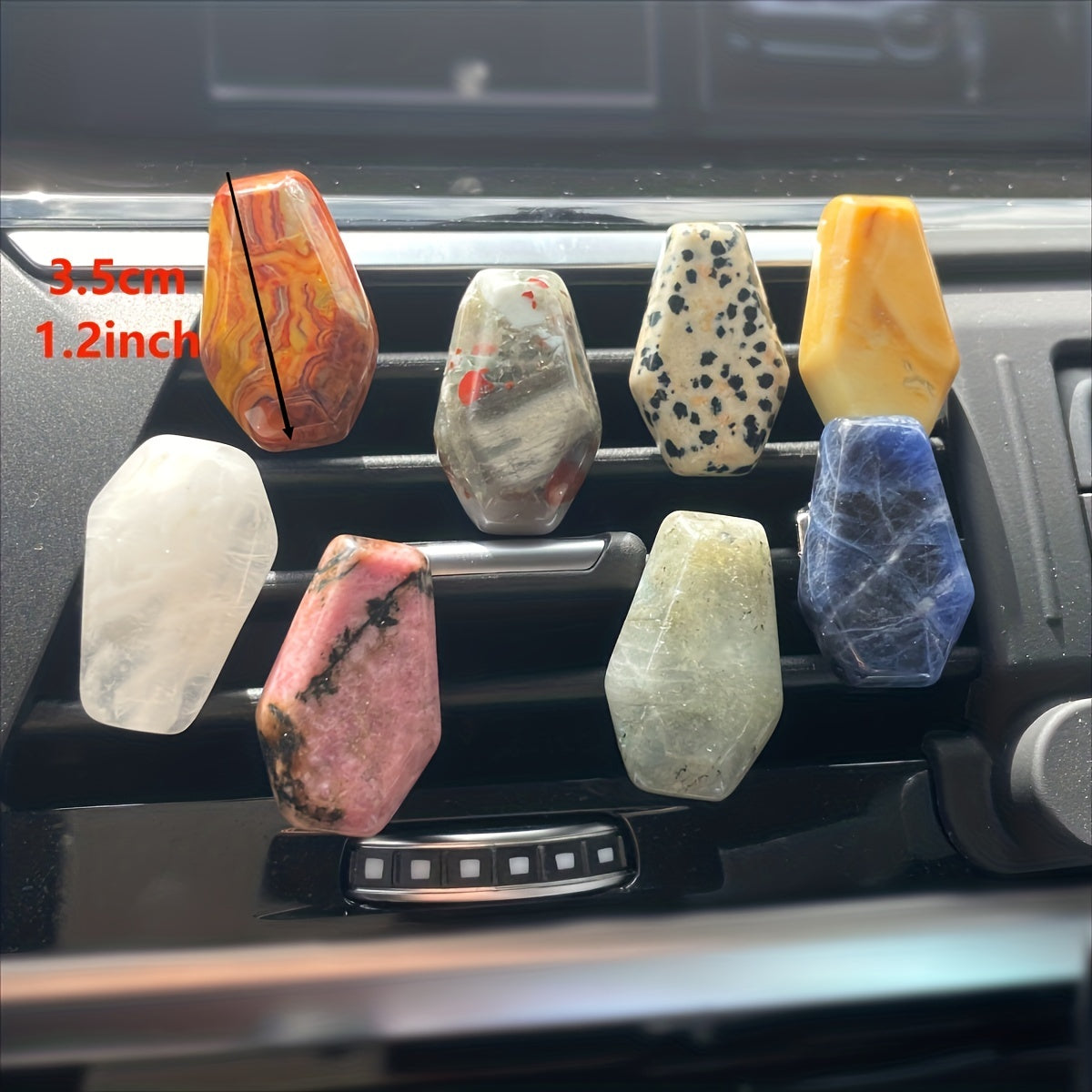 Enhance your car's interior with this natural crystal decoration that also serves as a clip-on perfume vent accessory. Add a touch of creativity to your vehicle.