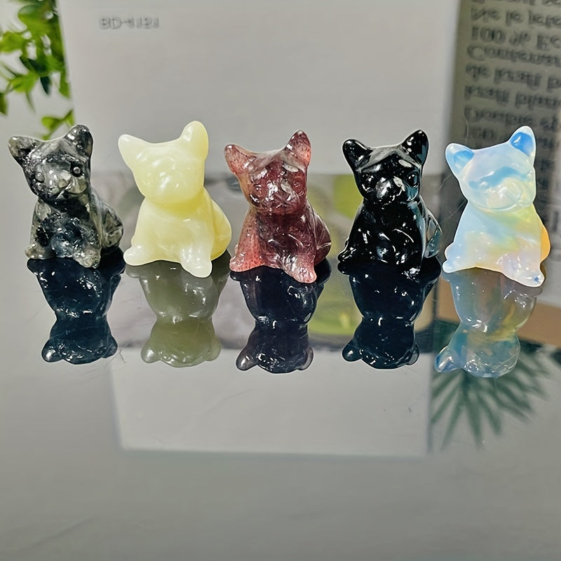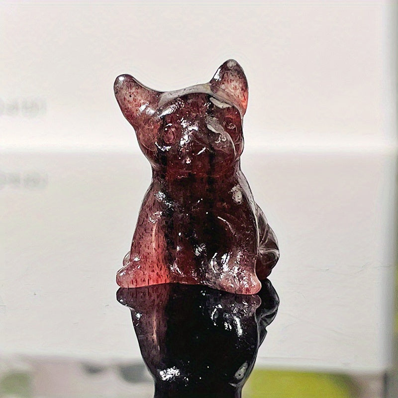 This hand-carved natural crystal dog statue is a beautiful addition to any collection. Perfect for reiki healing or as a decorative piece.
