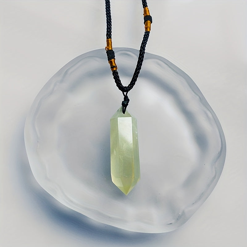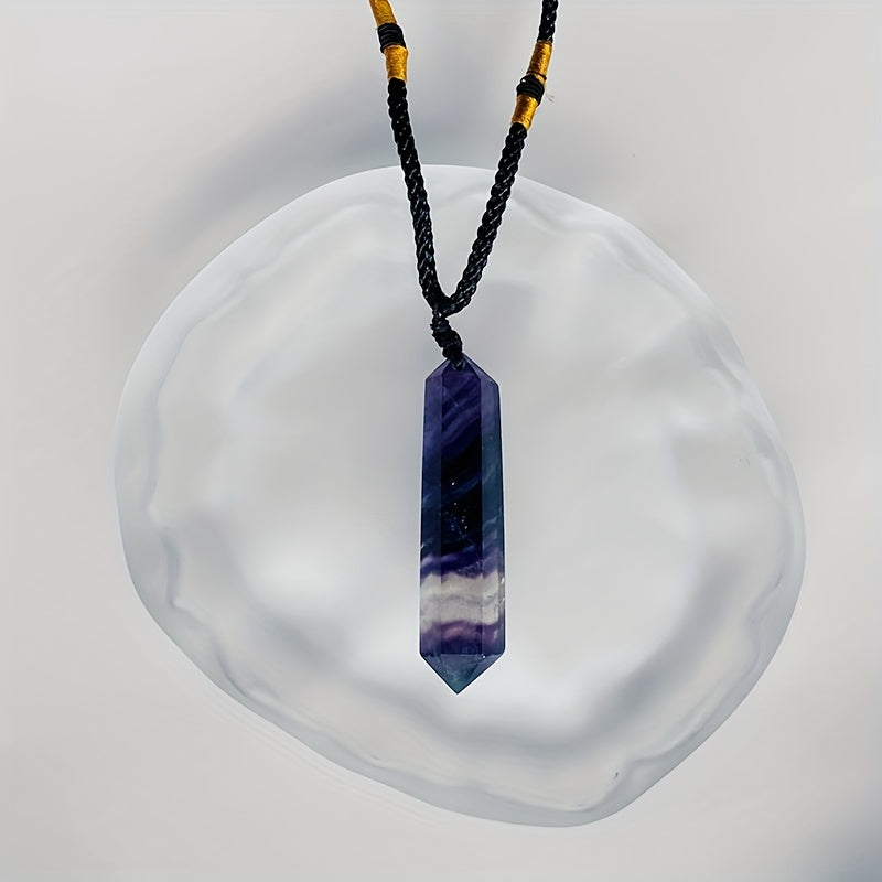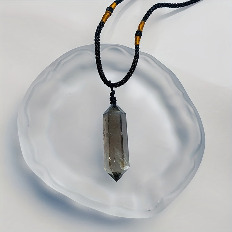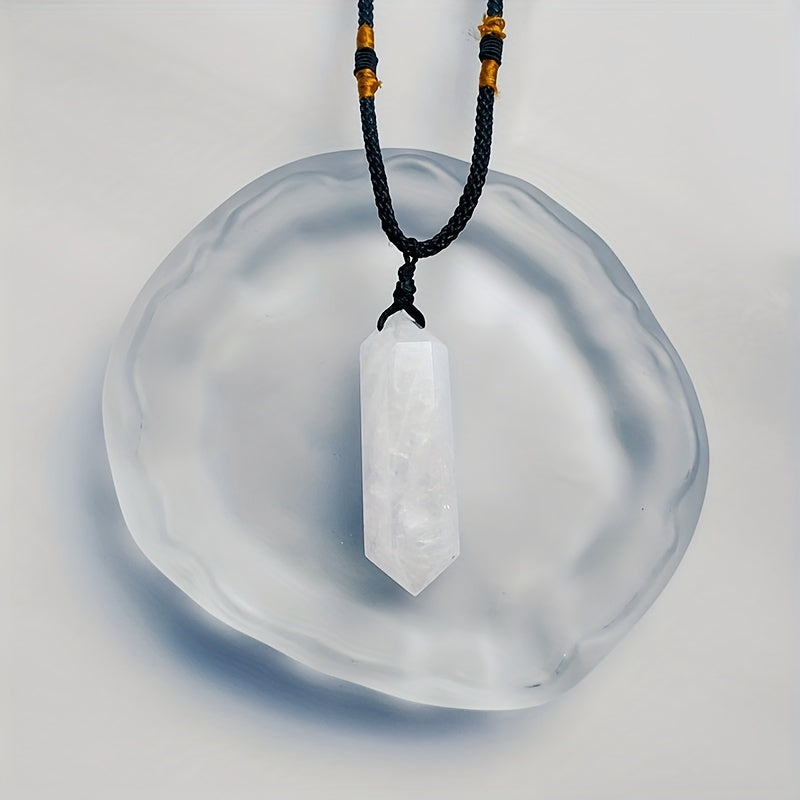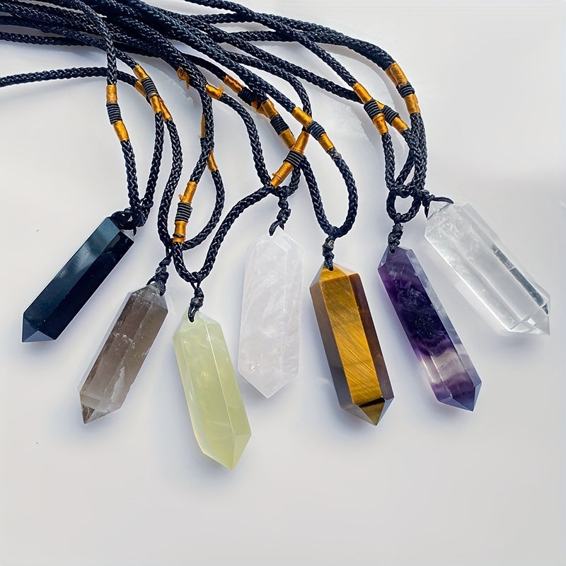 This unique pendant necklace features a hexagonal design with a natural crystal double pointed pillar for healing energy. A creative and stylish accessory for everyday wear.