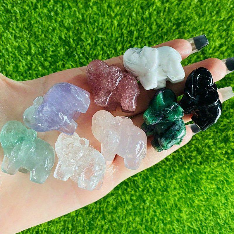 This beautiful crystal elephant carving is handcrafted from natural stone, making it a unique and enchanting addition to your home decor. It serves as a healing stone to bring positive energy and balance to your space.