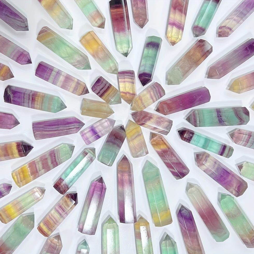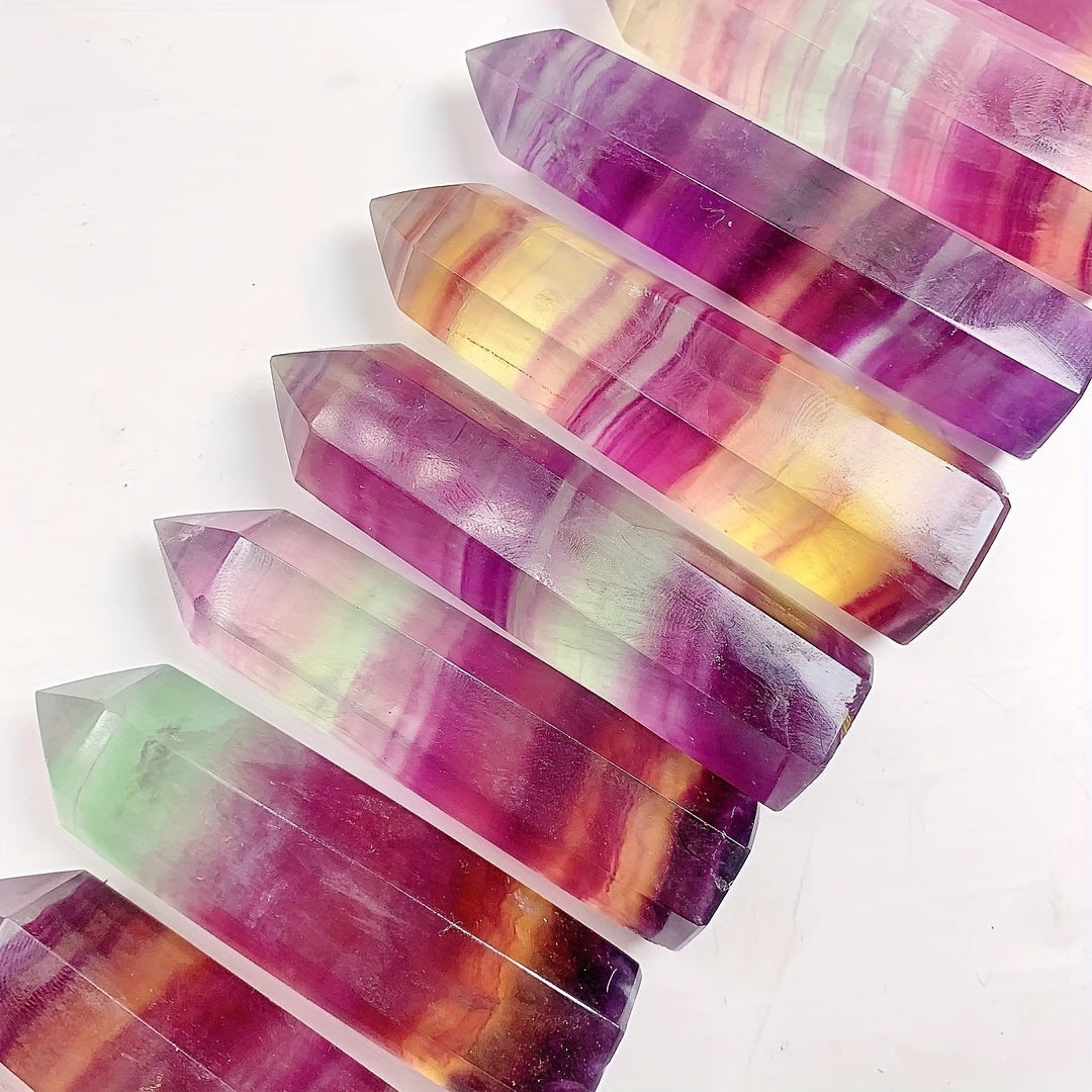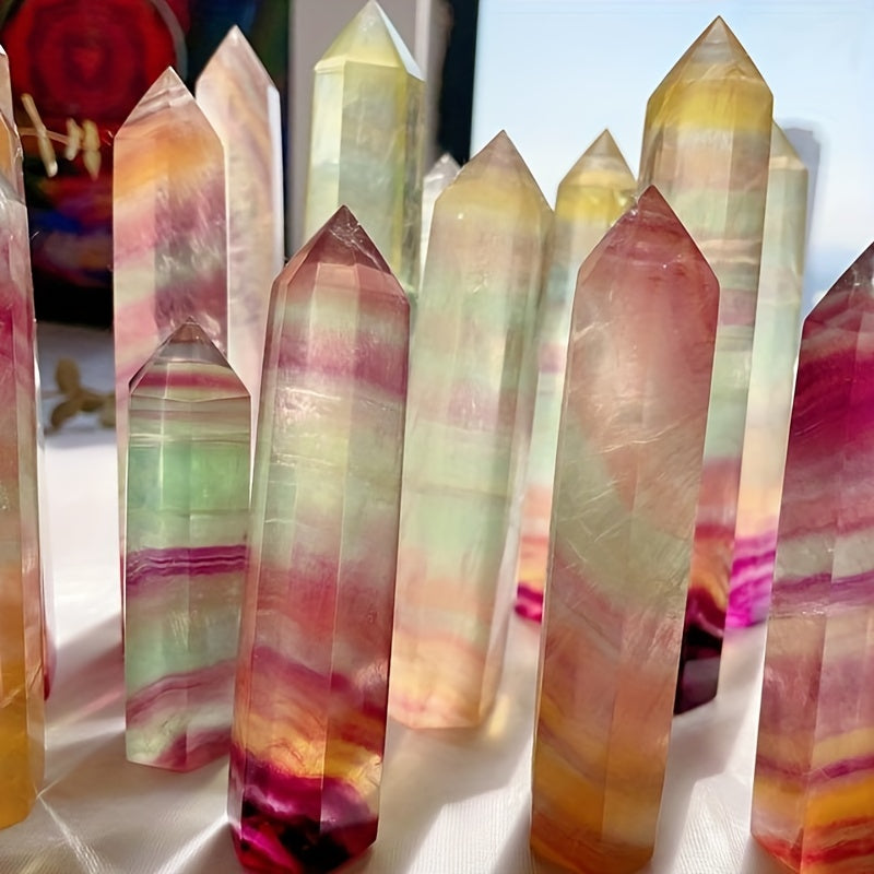 This colorful Fluorite column features a thousand layers of rainbow hues, perfect for meditation and healing practices. Each piece is unique and showcases the beauty of natural crystals.