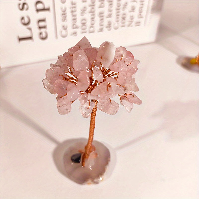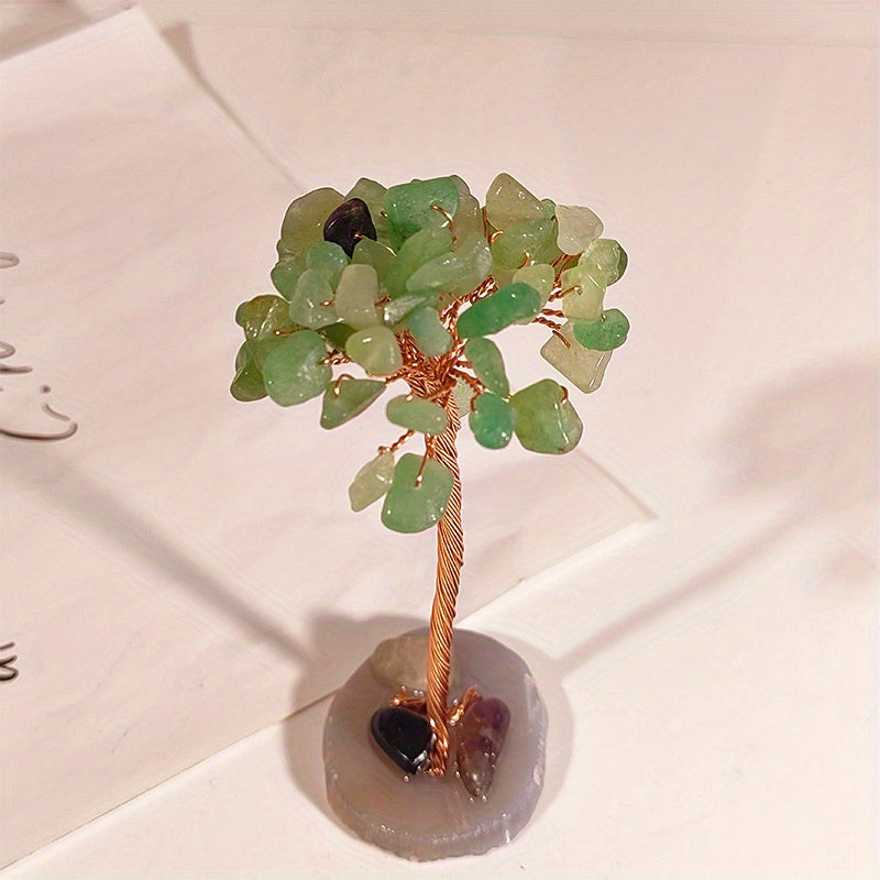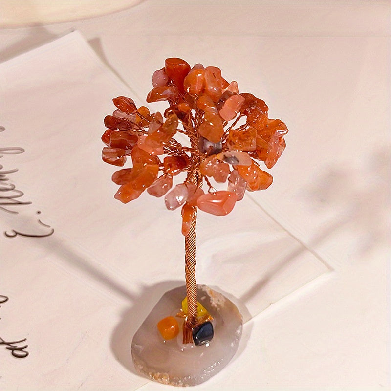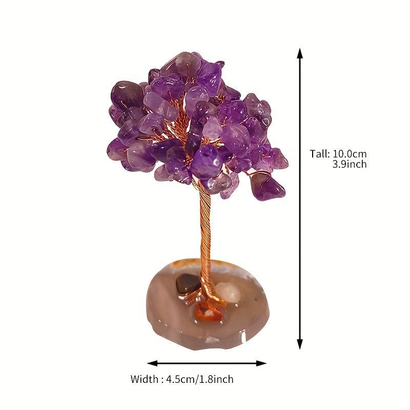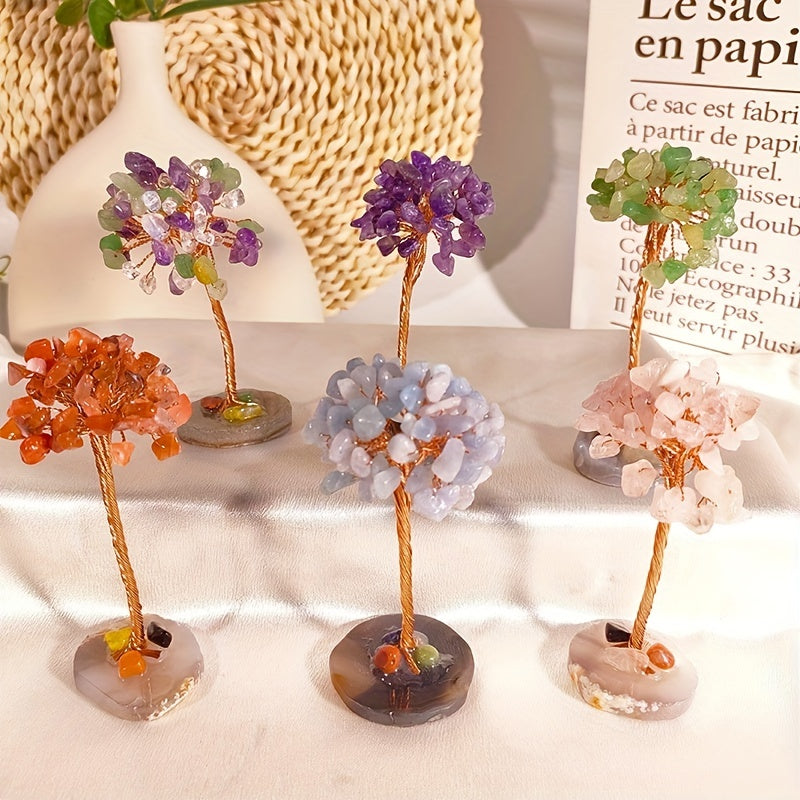 This beautiful hand-woven Fortune Tree ornament is made from natural crystal crushed stones and features an agate base. It is a perfect decoration for your home, bringing healing energy and positive vibes.