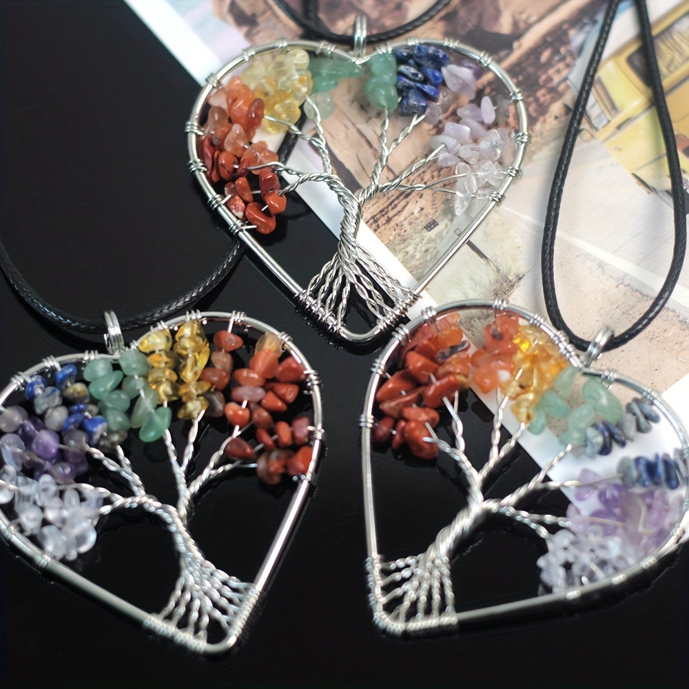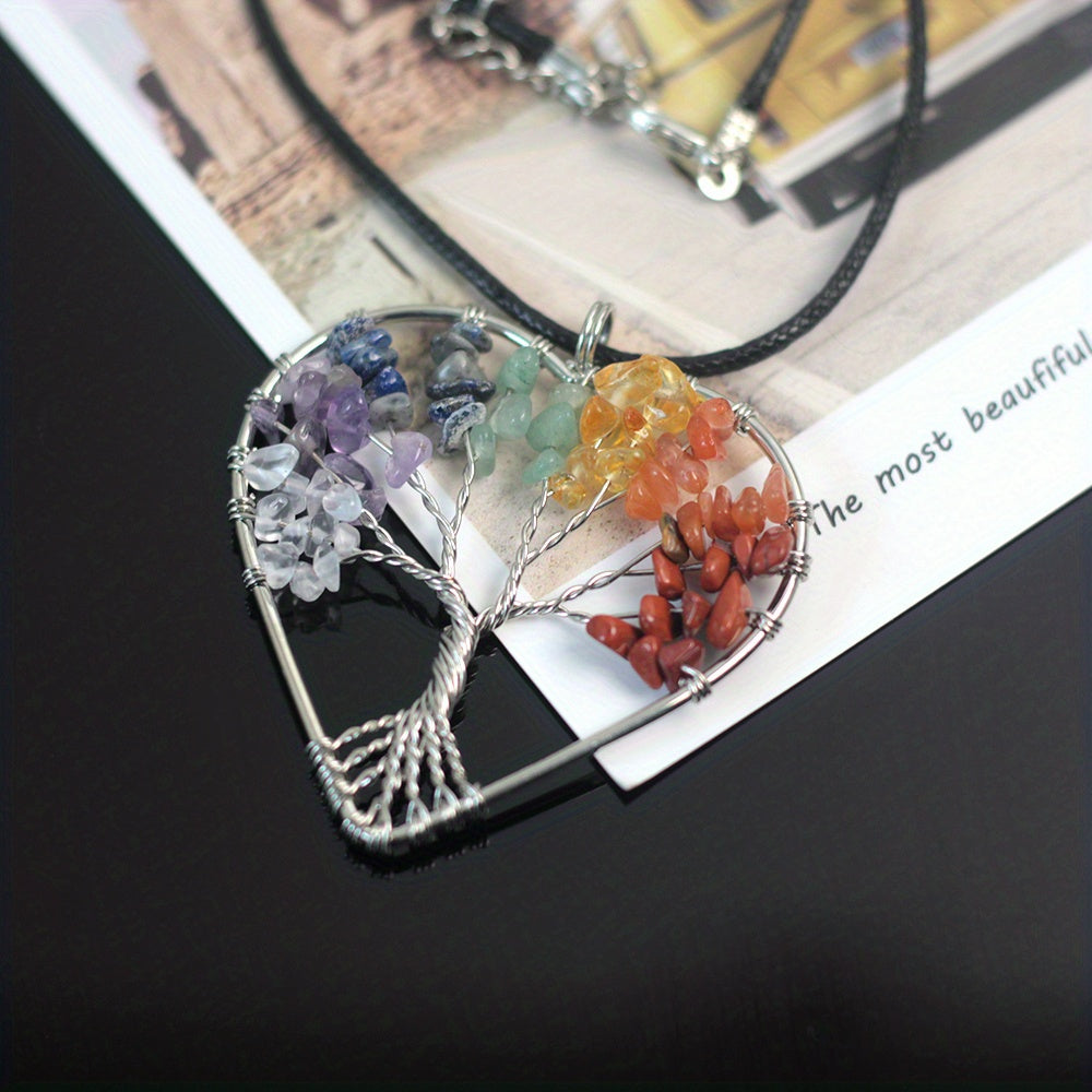 Natural Crystal Heart Pendant 7 Chakra Tree Of Crystal Life Pendant Necklace