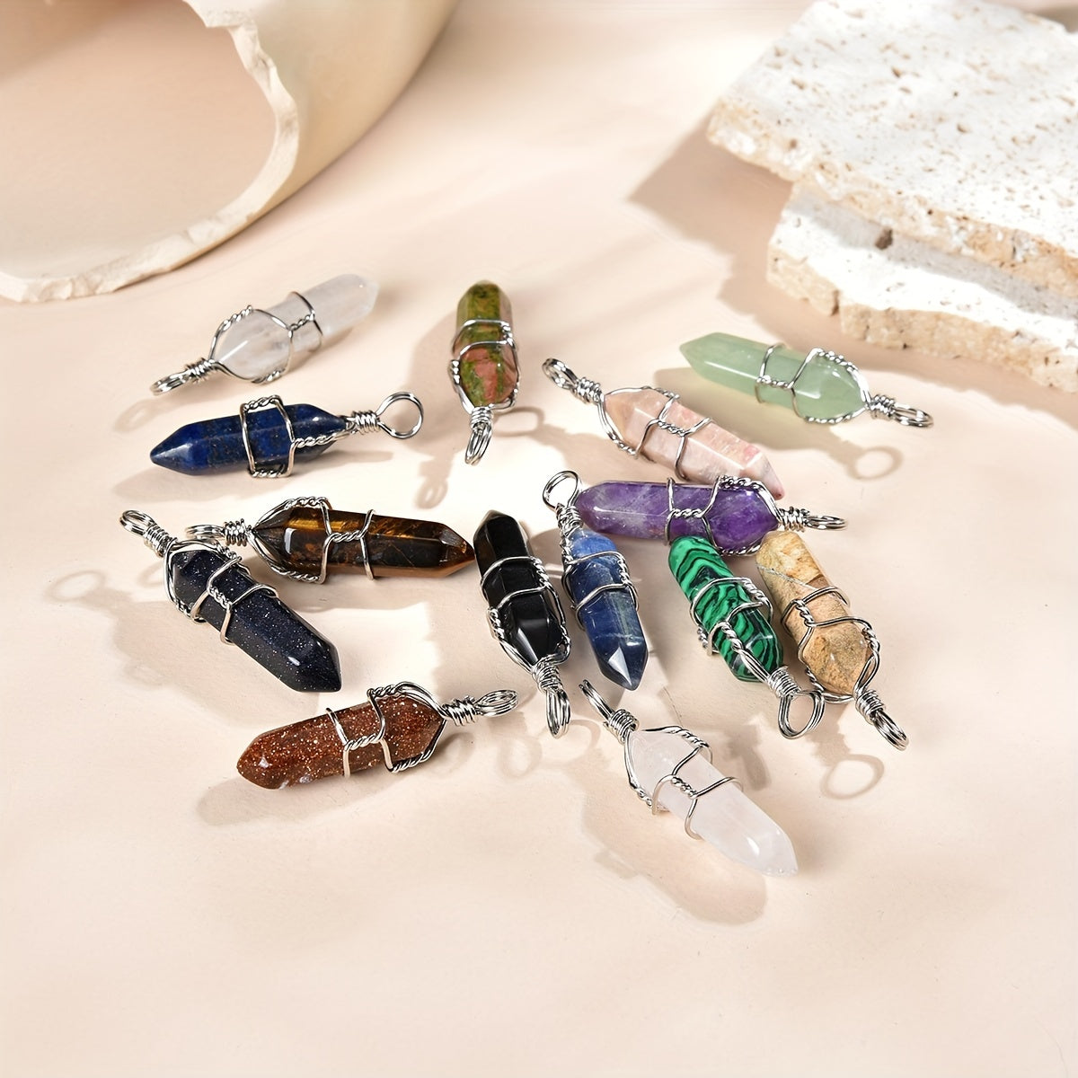 This single stone pendant features rich colors and varieties, making it a unique addition to your collection. The hexagonal column shape adds an elegant touch to any outfit.