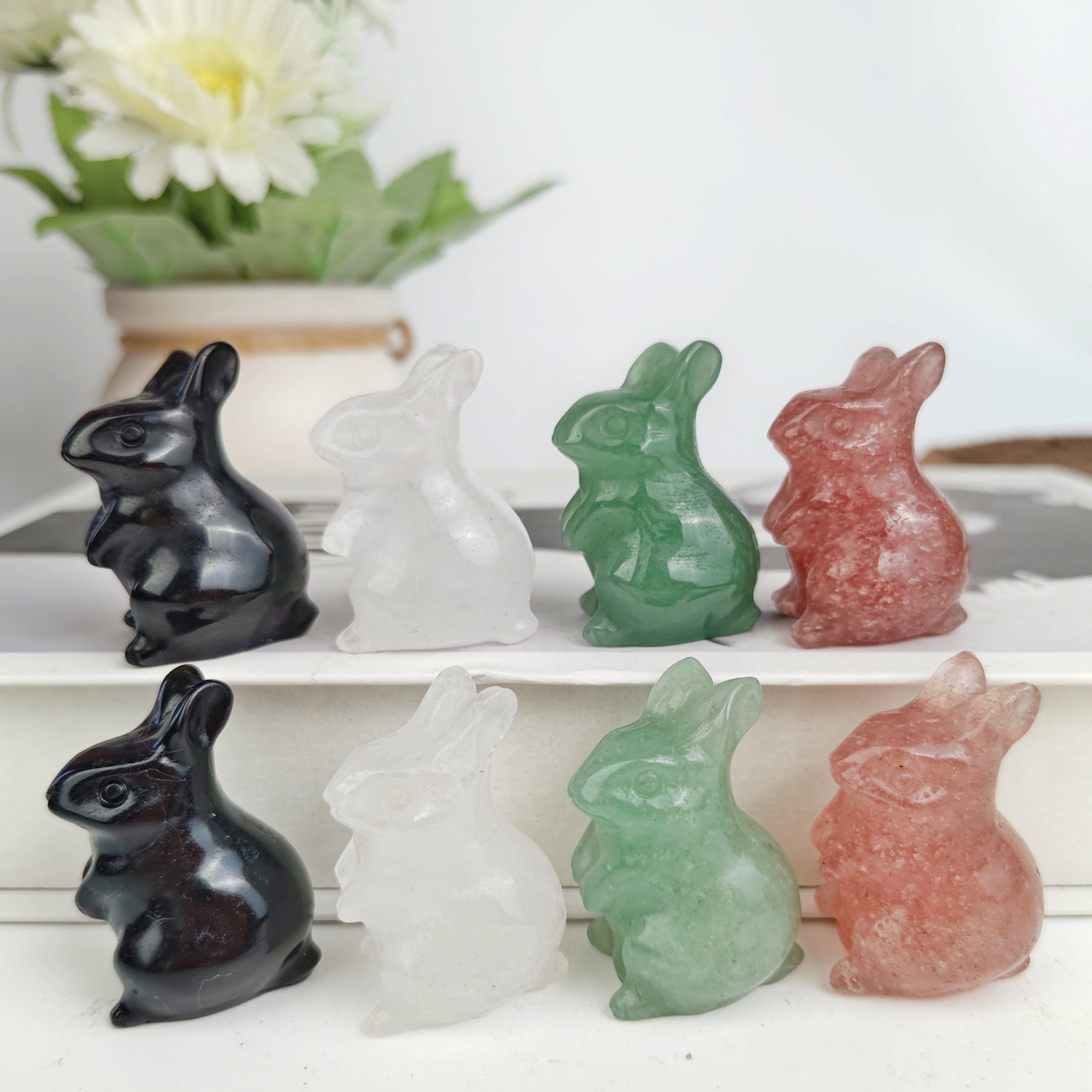 Natural Crystal Little Rabbit Carving Healing Energy Table Decoration