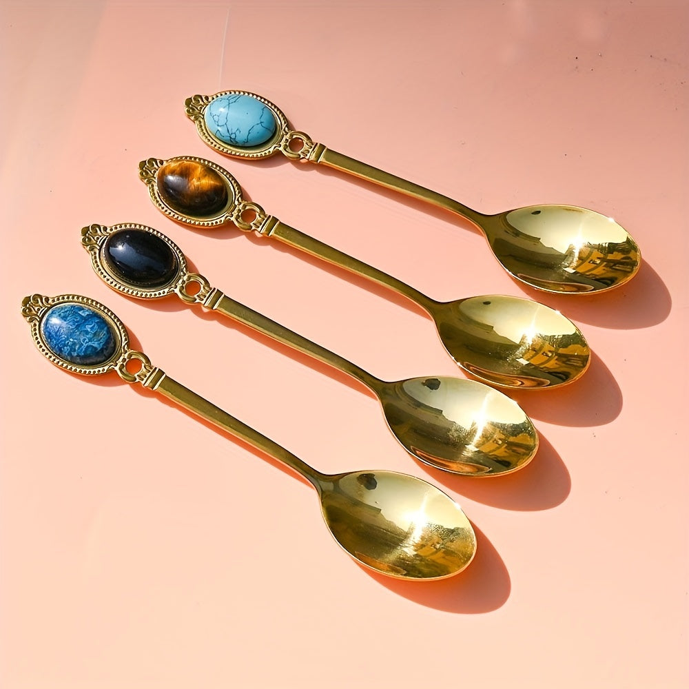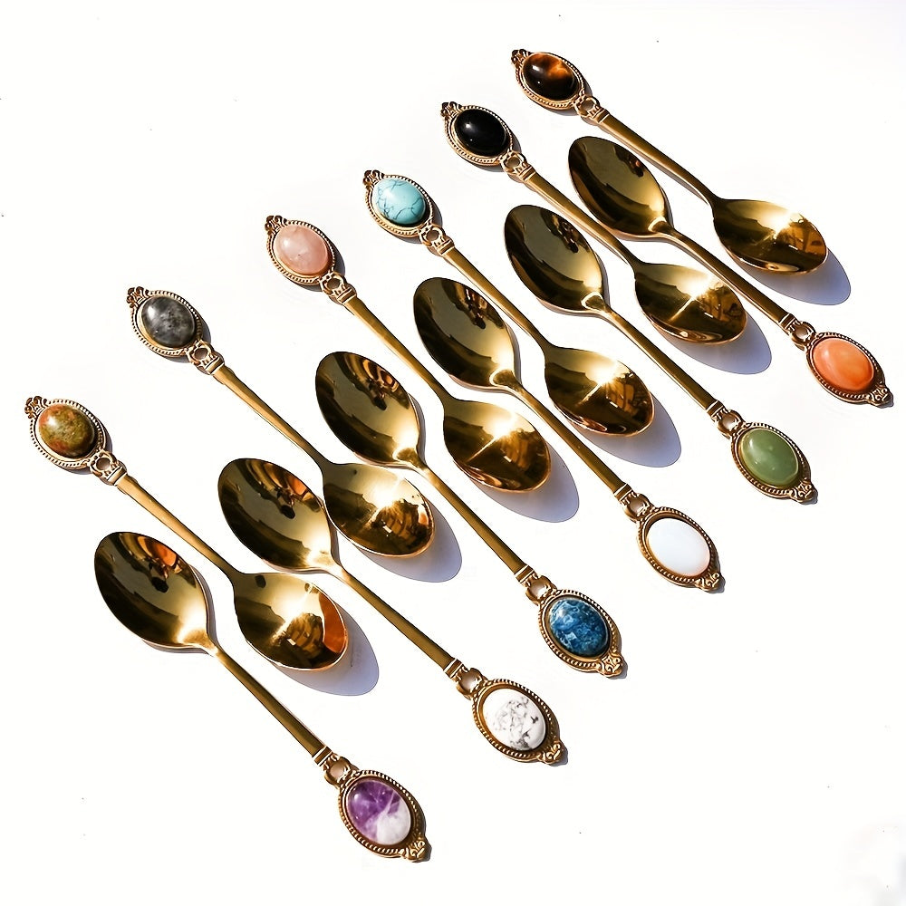 This hot natural crystal mini spoon is a creative gift that can be used for soups or stirring. Made of amethyst and tiger eye, it adds a touch of luxury to your dining experience.