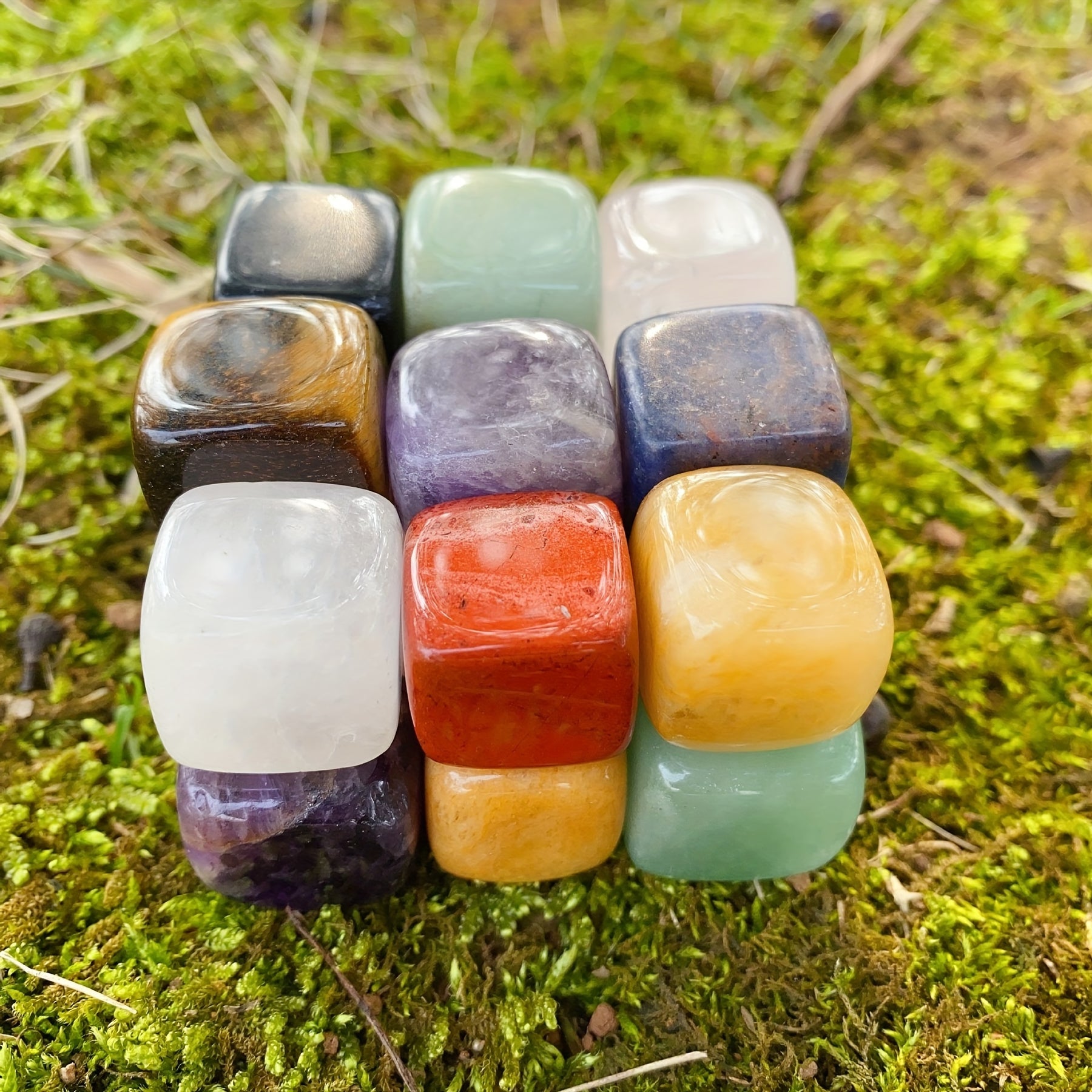 Add a touch of natural beauty to your space with this set of seven small square crystal stones. Perfect for decoration or meditation purposes.