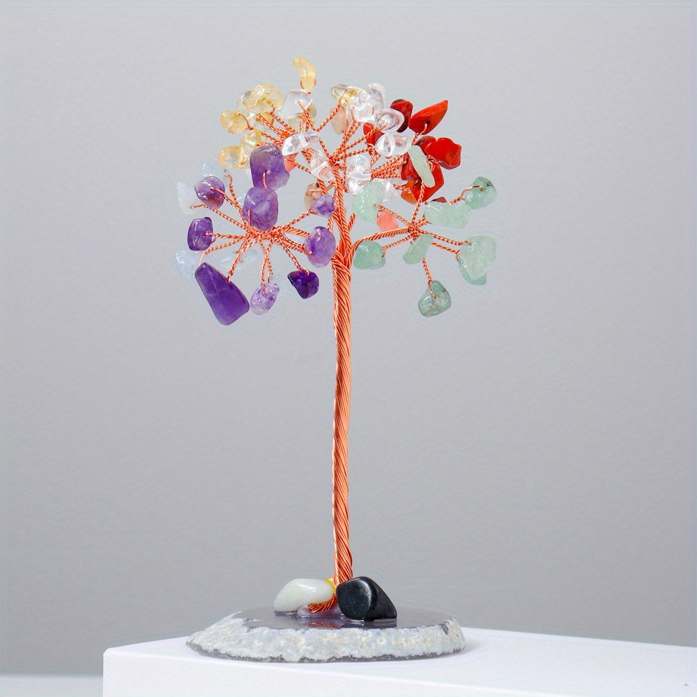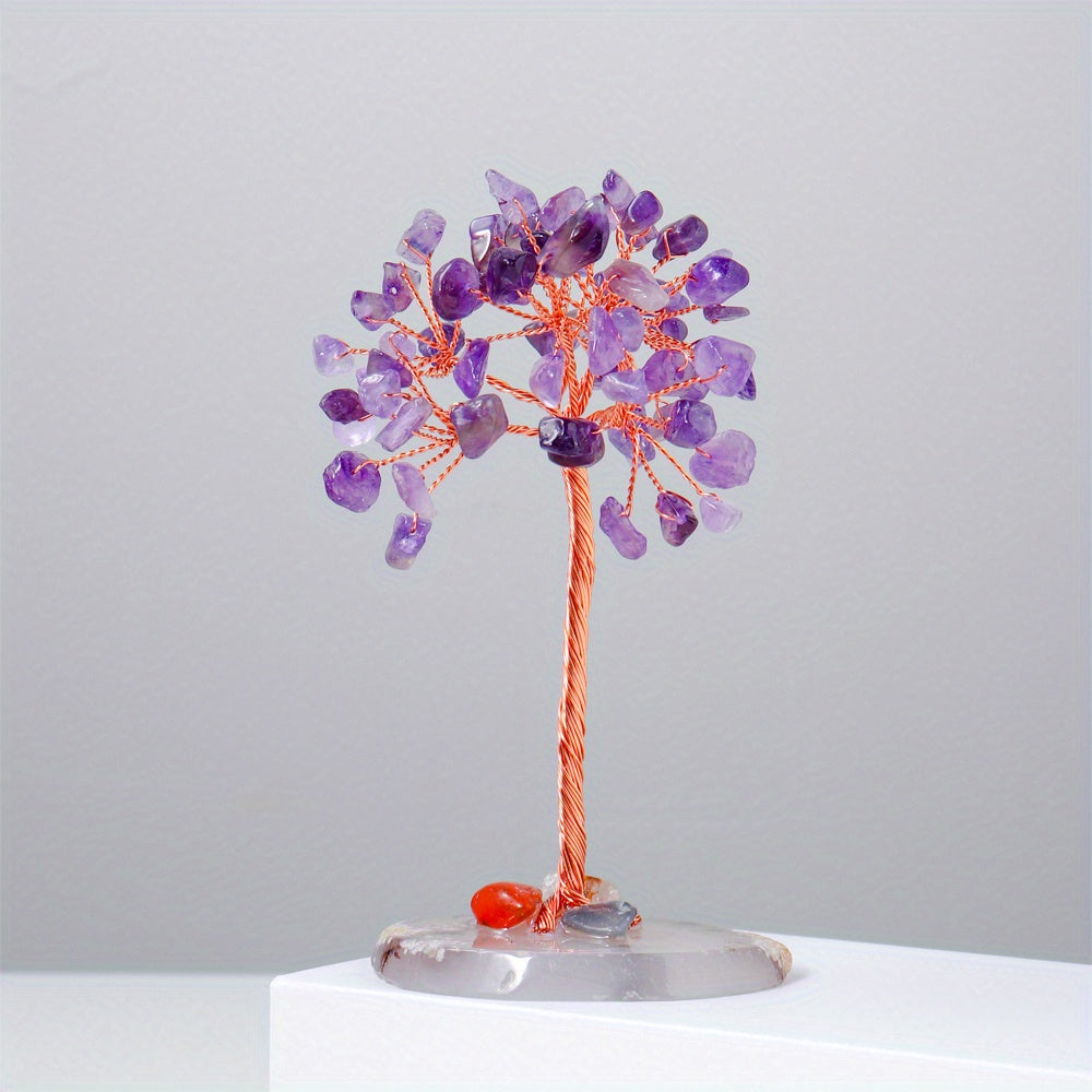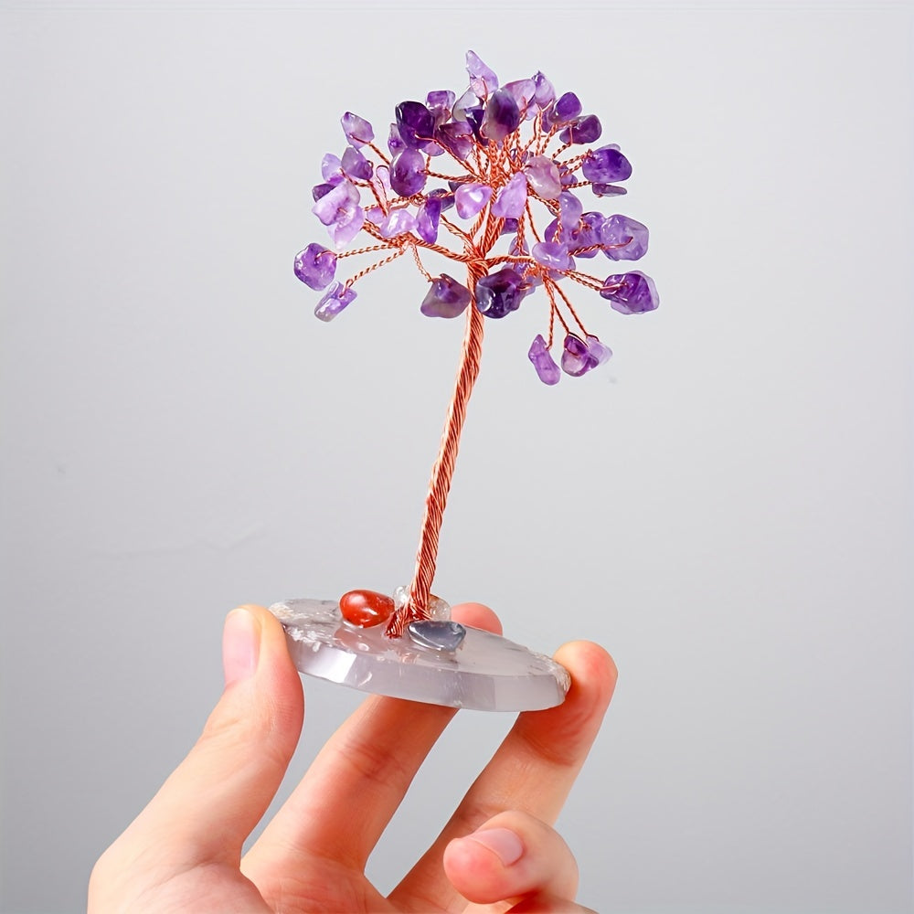 This beautiful natural crystal tree features seven chakra stones bringing balance and harmony. It is made of Amethyst for promoting health and well-being. A perfect decoration and lucky gift for any occasion.