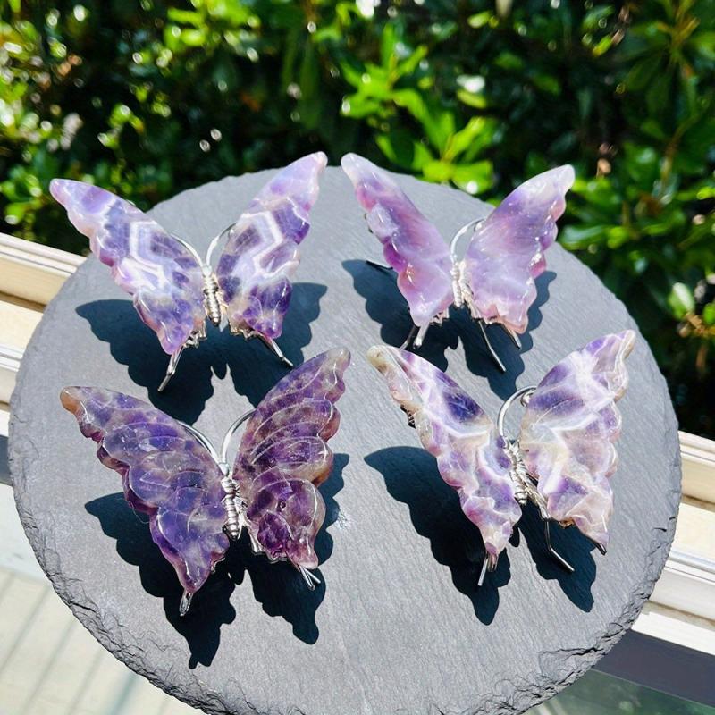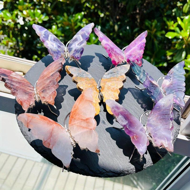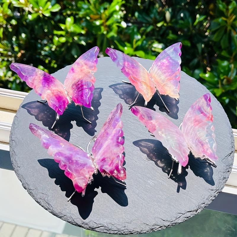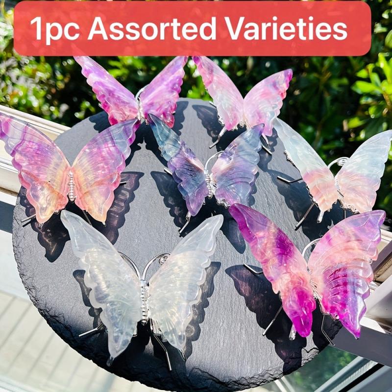 Enhance your space with this beautiful Fluorite Butterfly Carving. The crystal features a stunning gradient from purple to pink, perfect for home decor, aquarium ornament, or jewelry making.