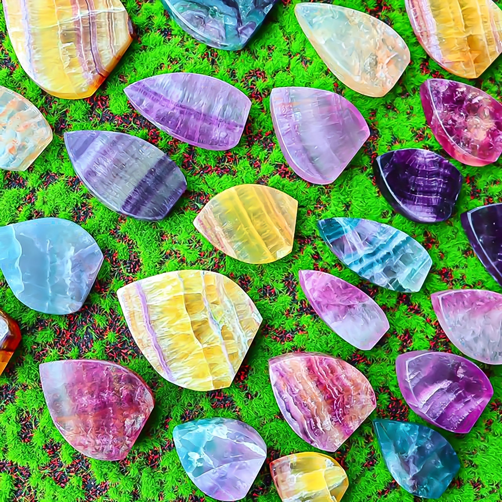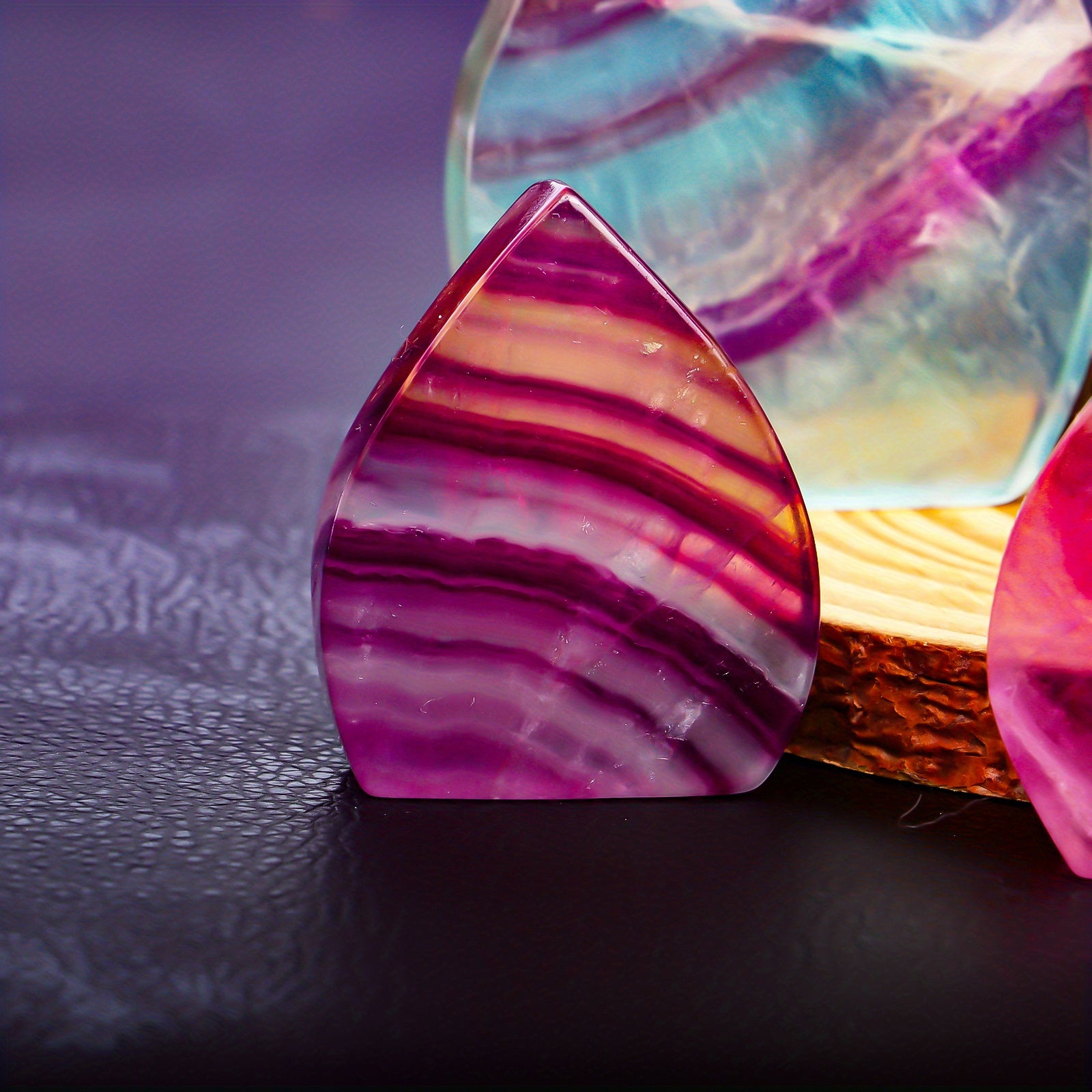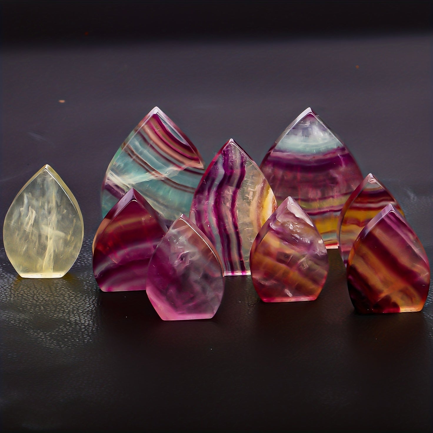 Bring positive energy and enhance your space with these colorful natural fluorite maple leaf ornaments. Perfect for meditation and relaxation.