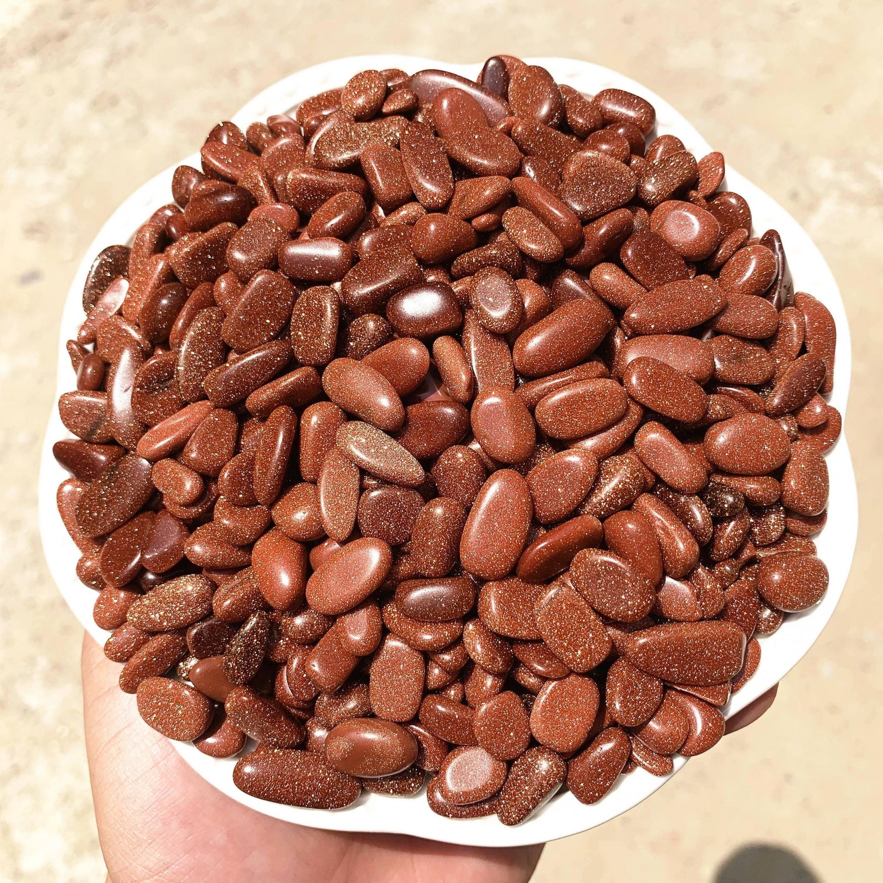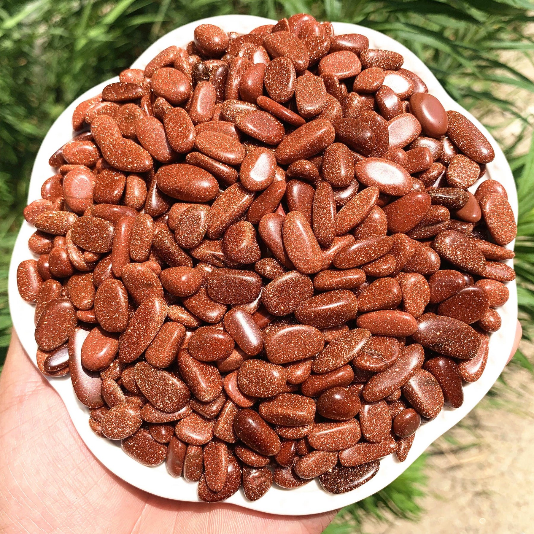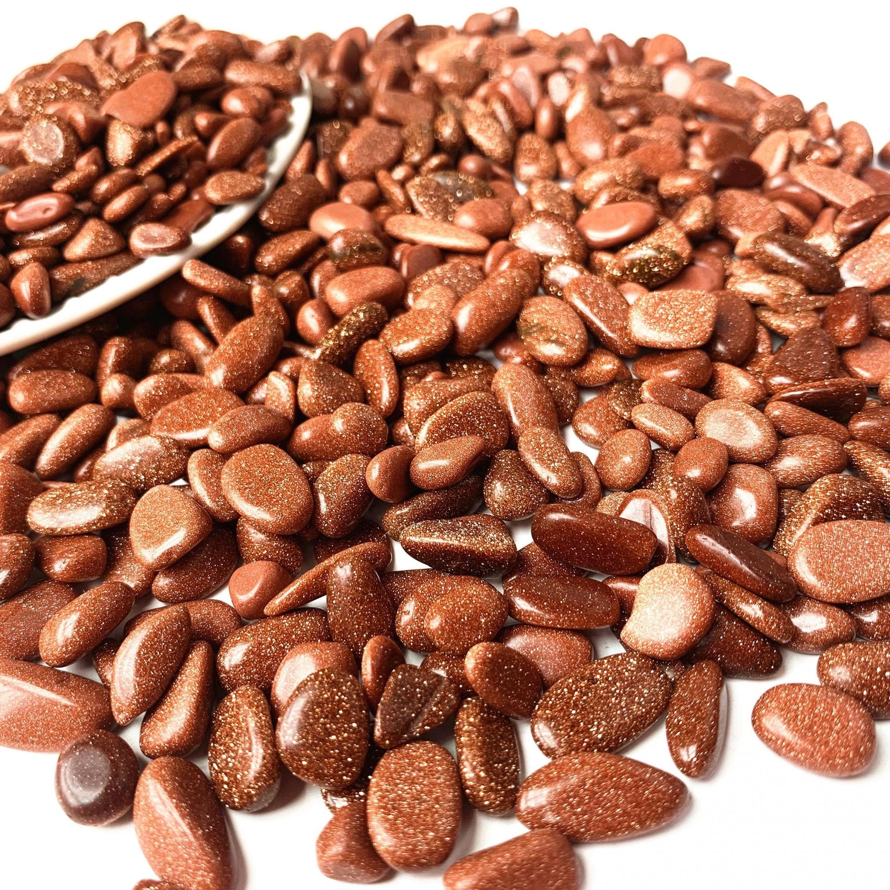 Enhance your energy with these polished Goldstone crystal chips. Perfect for healing practices and positive vibrations.