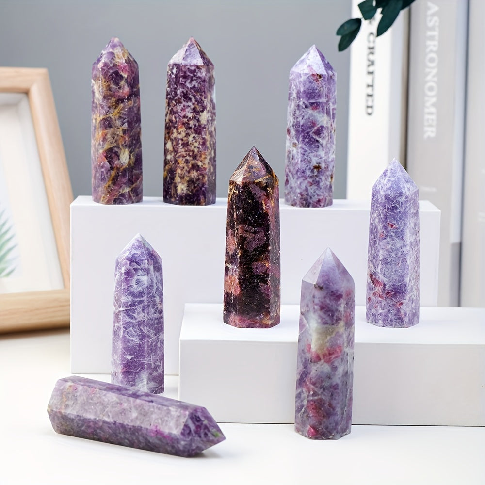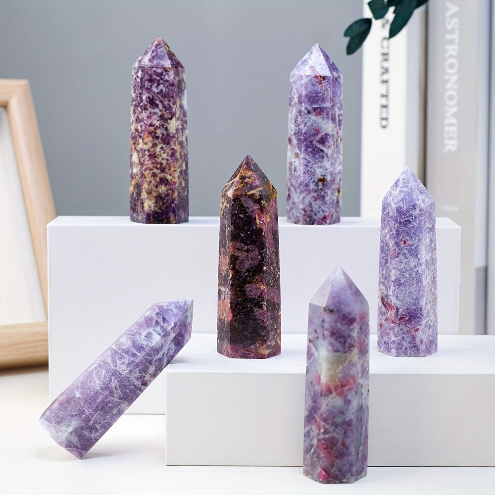Enhance your space with this stunning natural tourmaline crystal pillar. The unicorn plum color adds a touch of magic to any room while promoting healing and positive energy.
