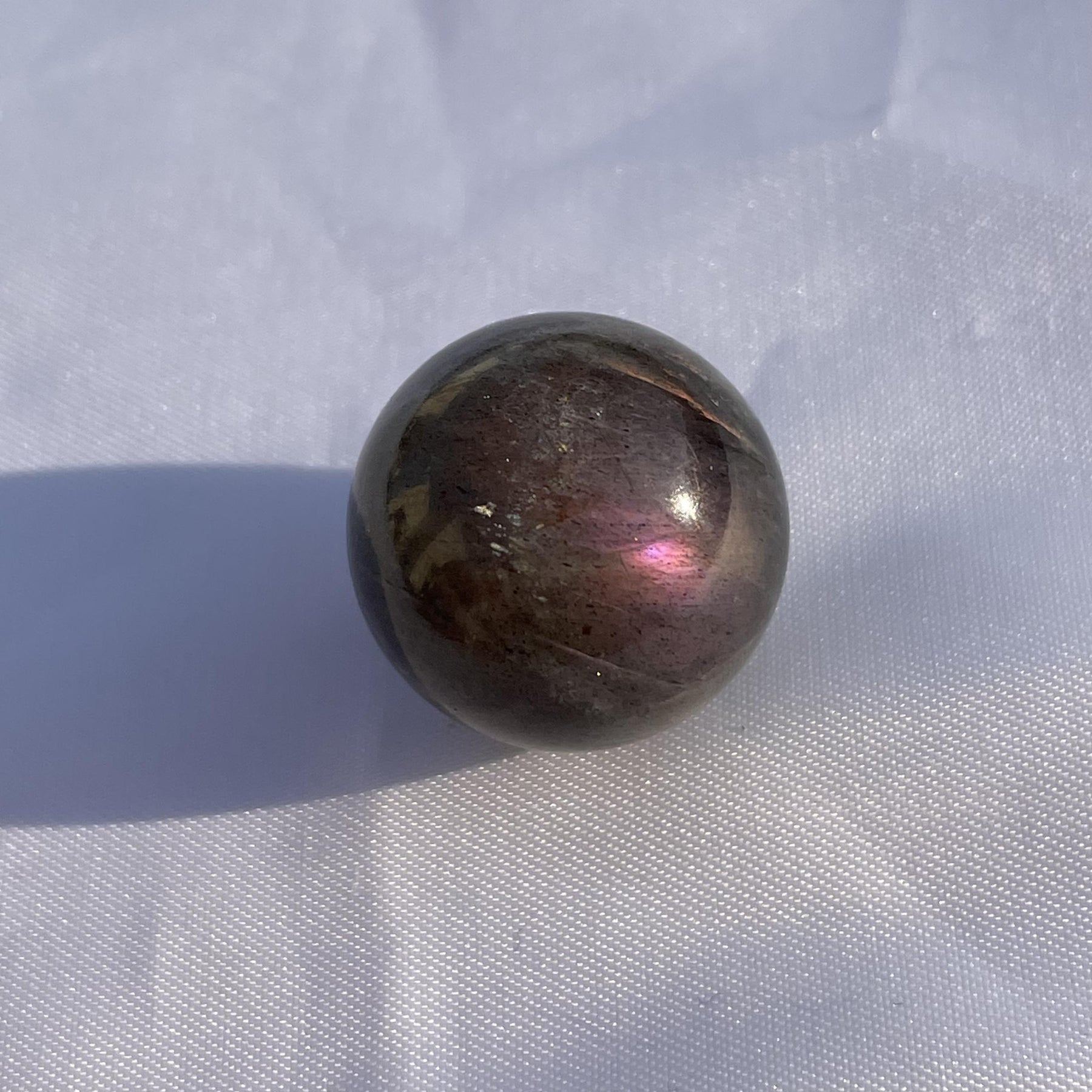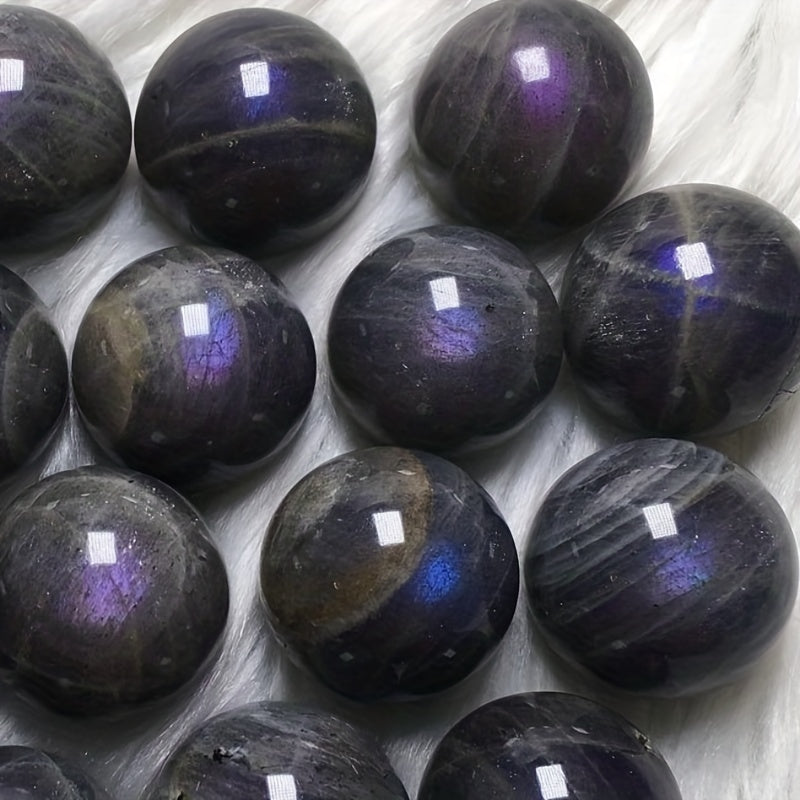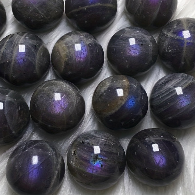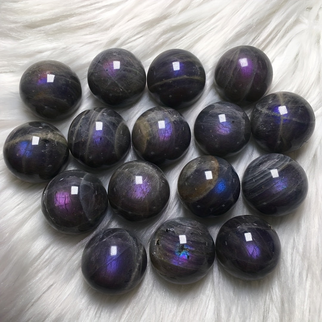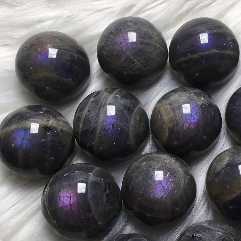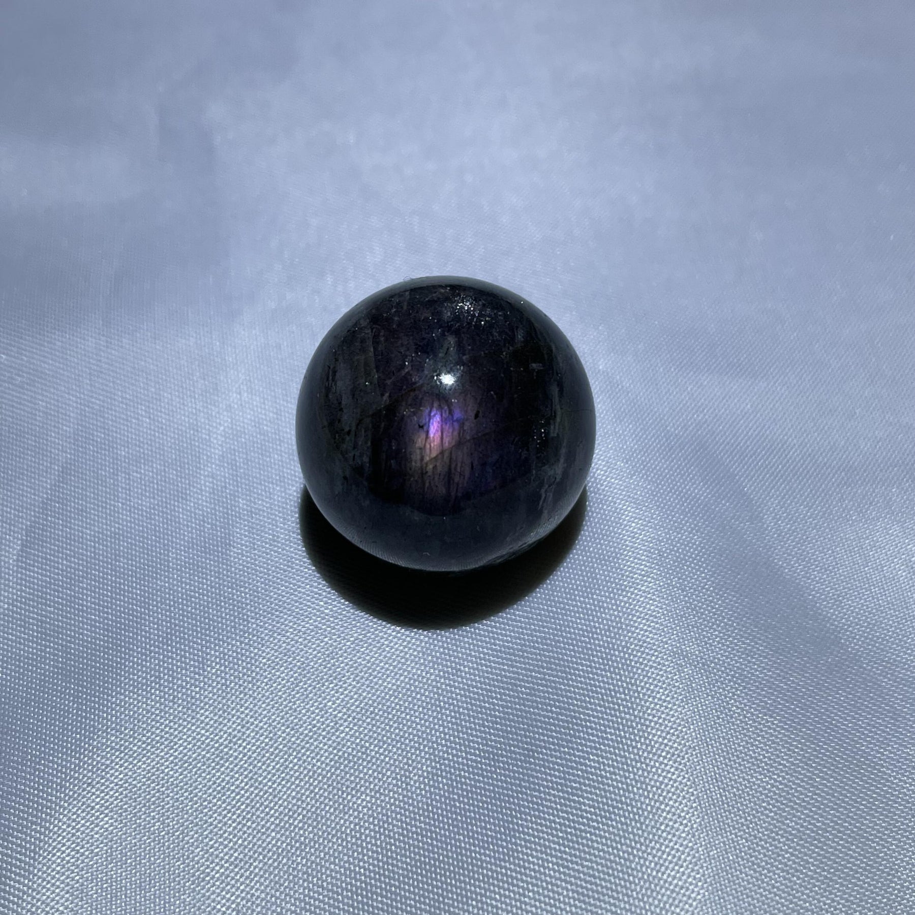 This Labradorite crystal ball displays purple flash, perfect for healing and meditation. Harness spiritual energy with this powerful crystal.