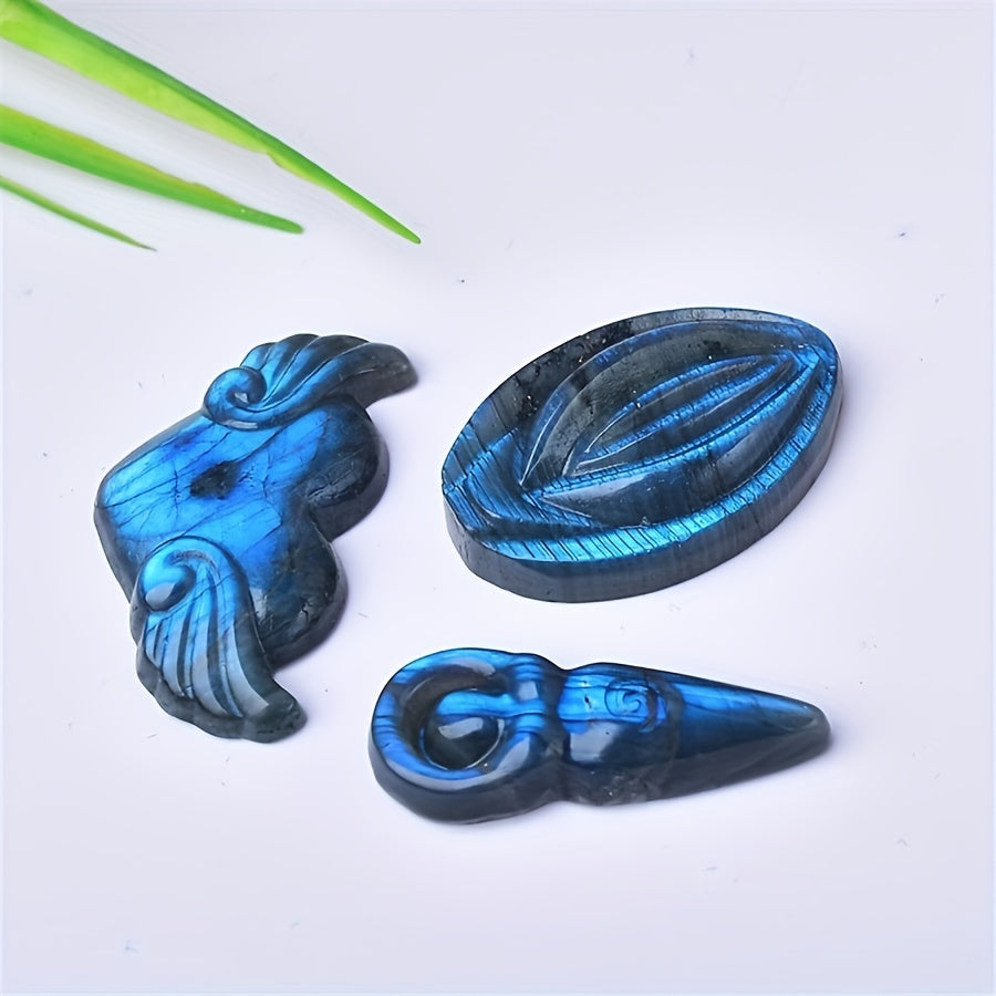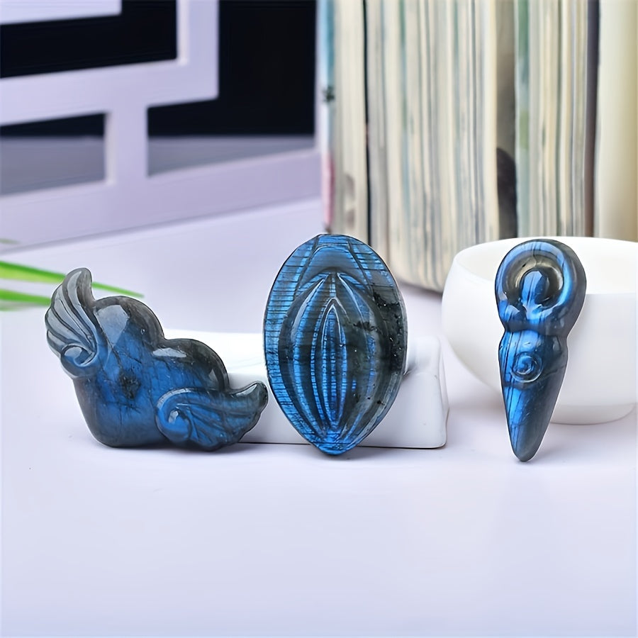 Enhance your space with this exquisite natural Labradorite carving piece. It features a stunning gray moonlight design that adds a touch of elegance to any room.