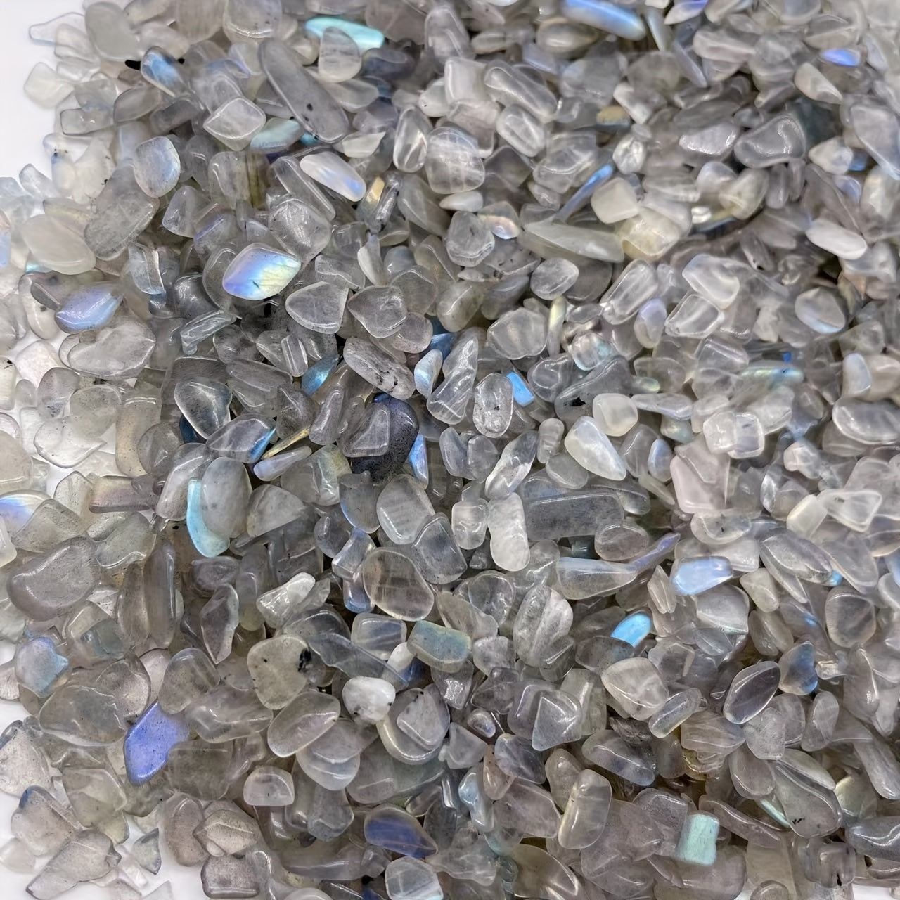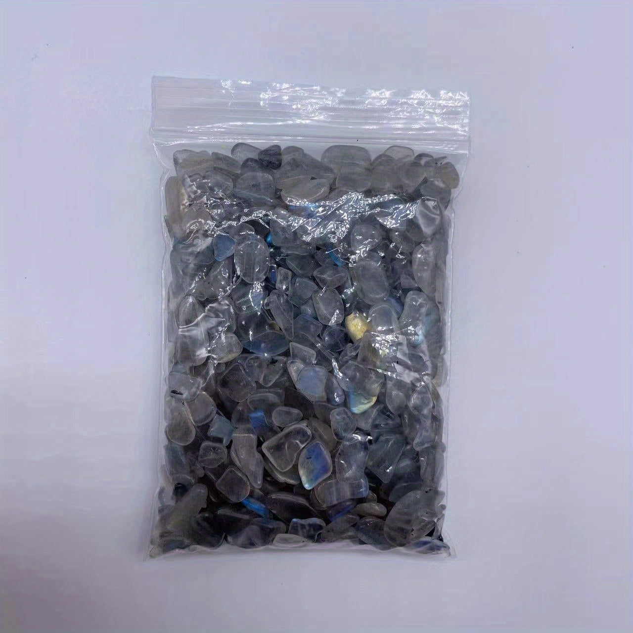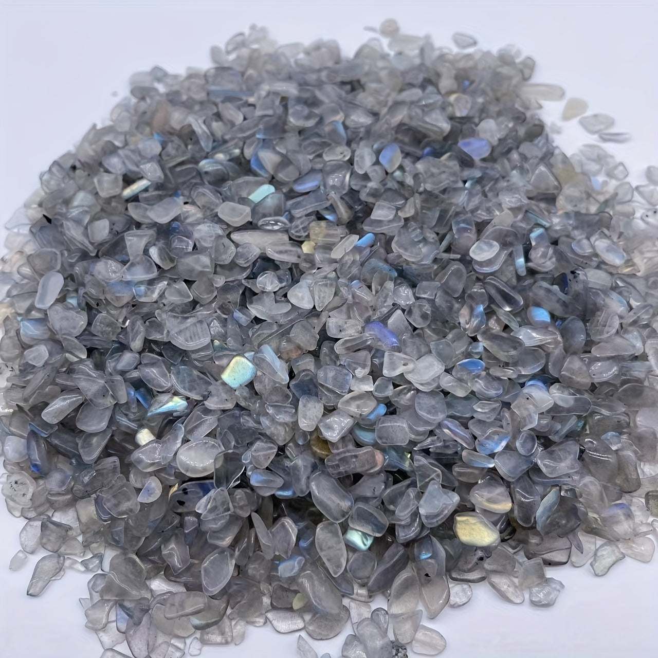 This 50g bag of Labradorite chips features irregular shaped gemstones that can be used for healing and decoration. Perfect for aquariums.