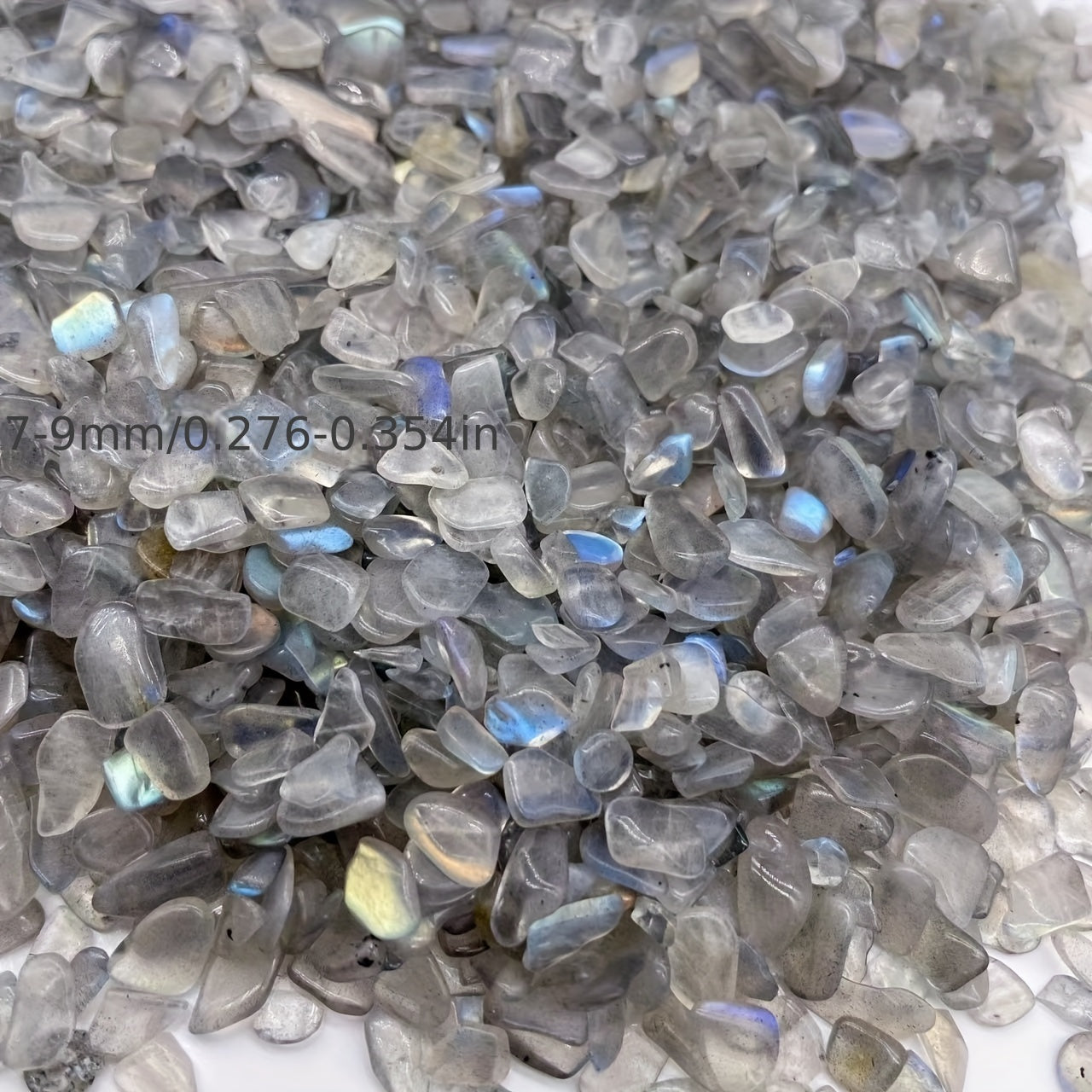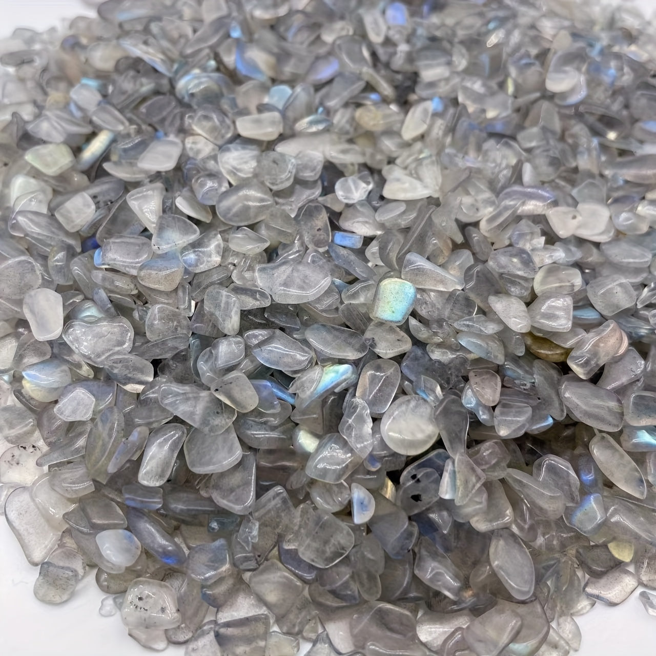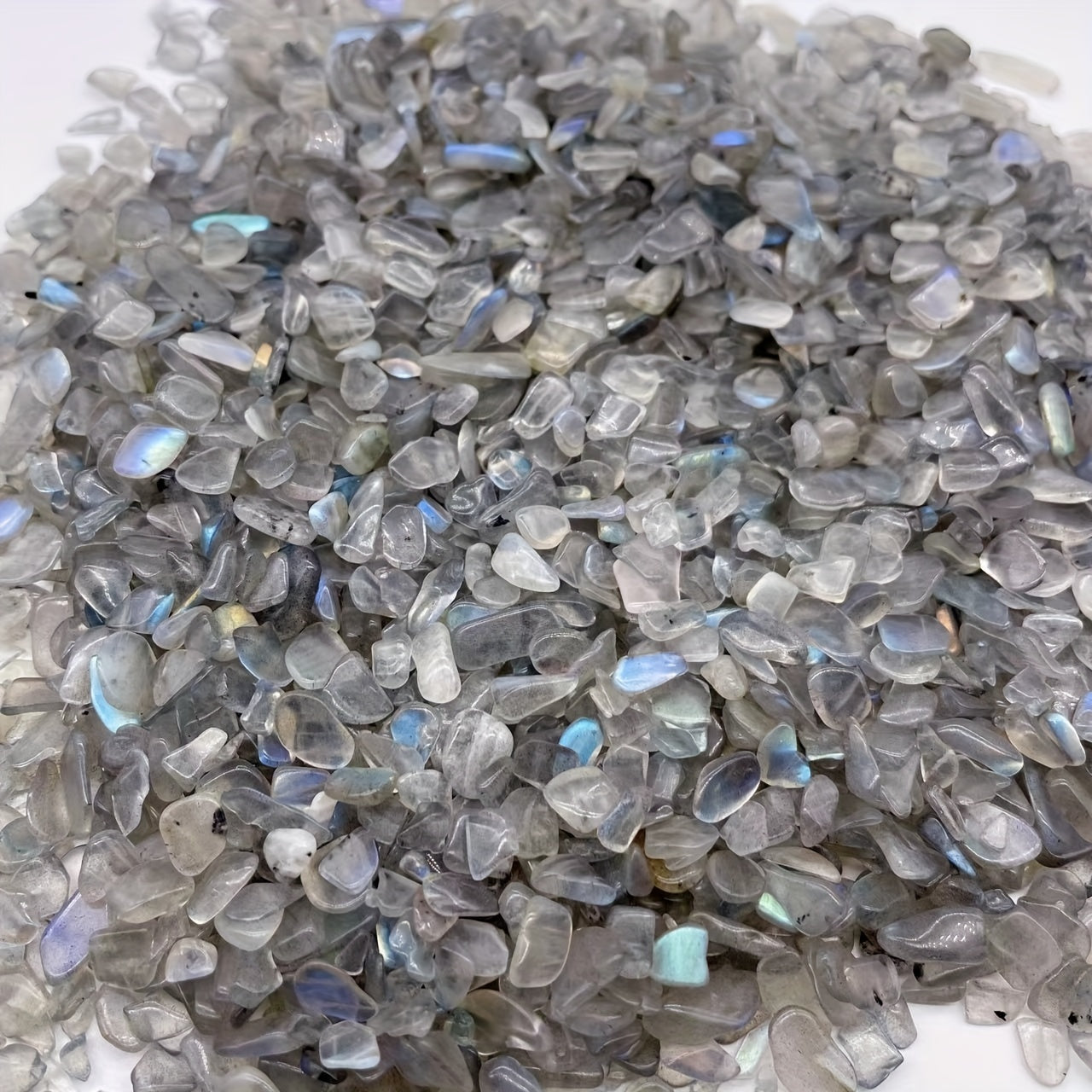 This 50g bag of Labradorite chips features irregular shaped gemstones that can be used for healing and decoration. Perfect for aquariums.