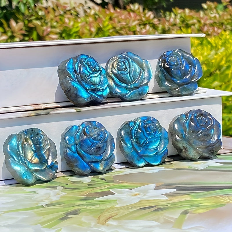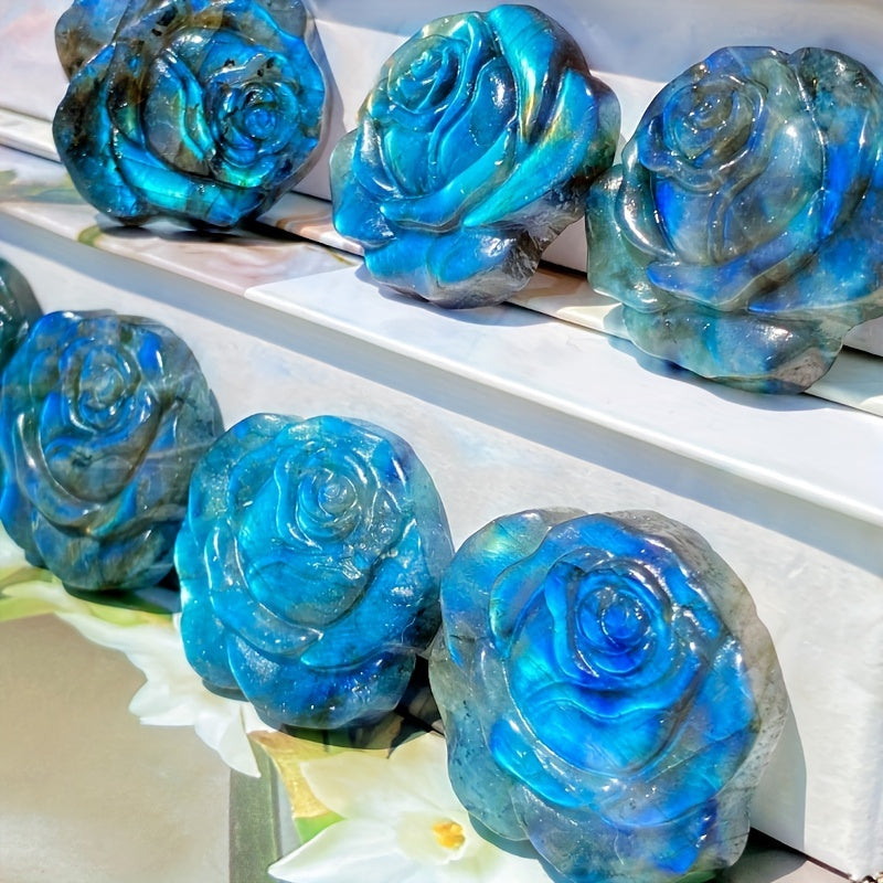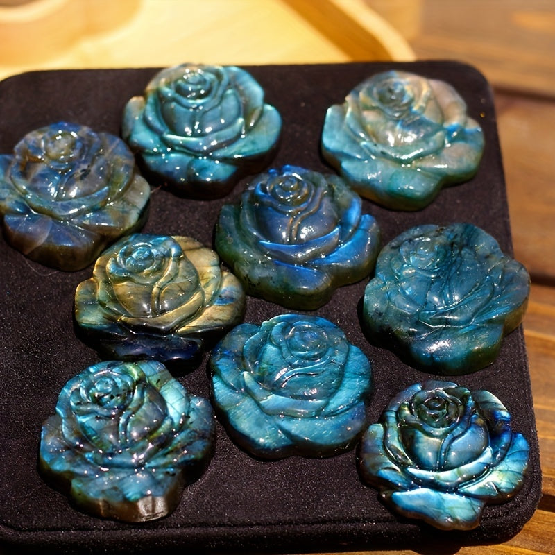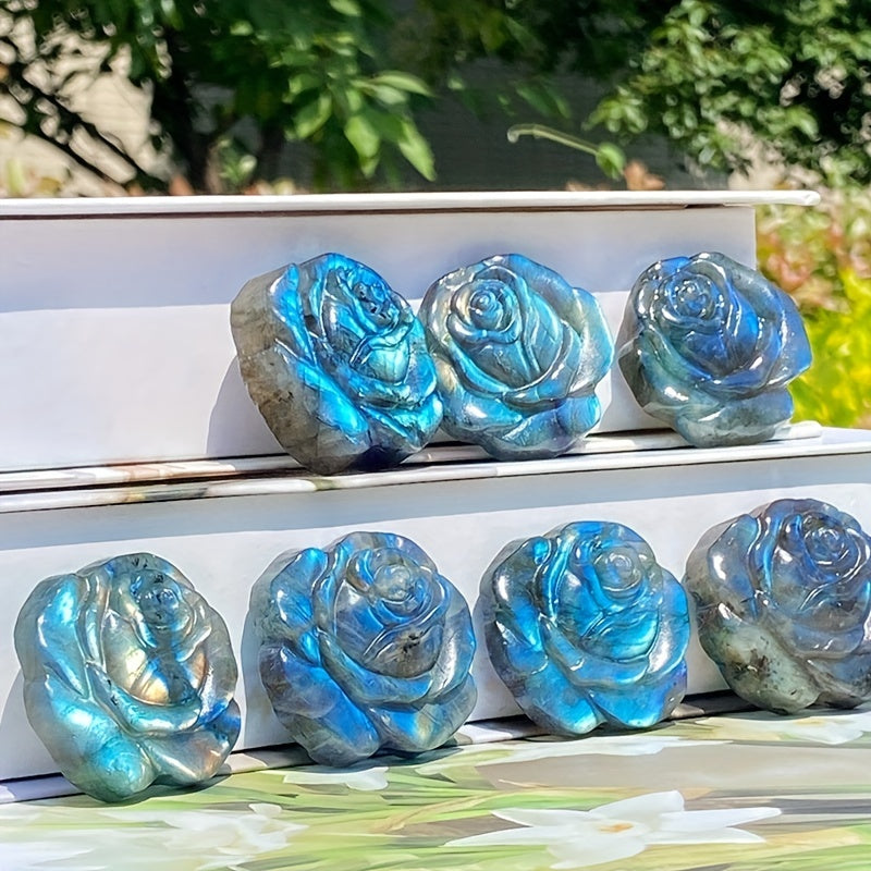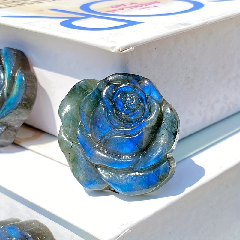 Natural Labradorite Rose Carved Crystal Craft Gift for Office Decoration