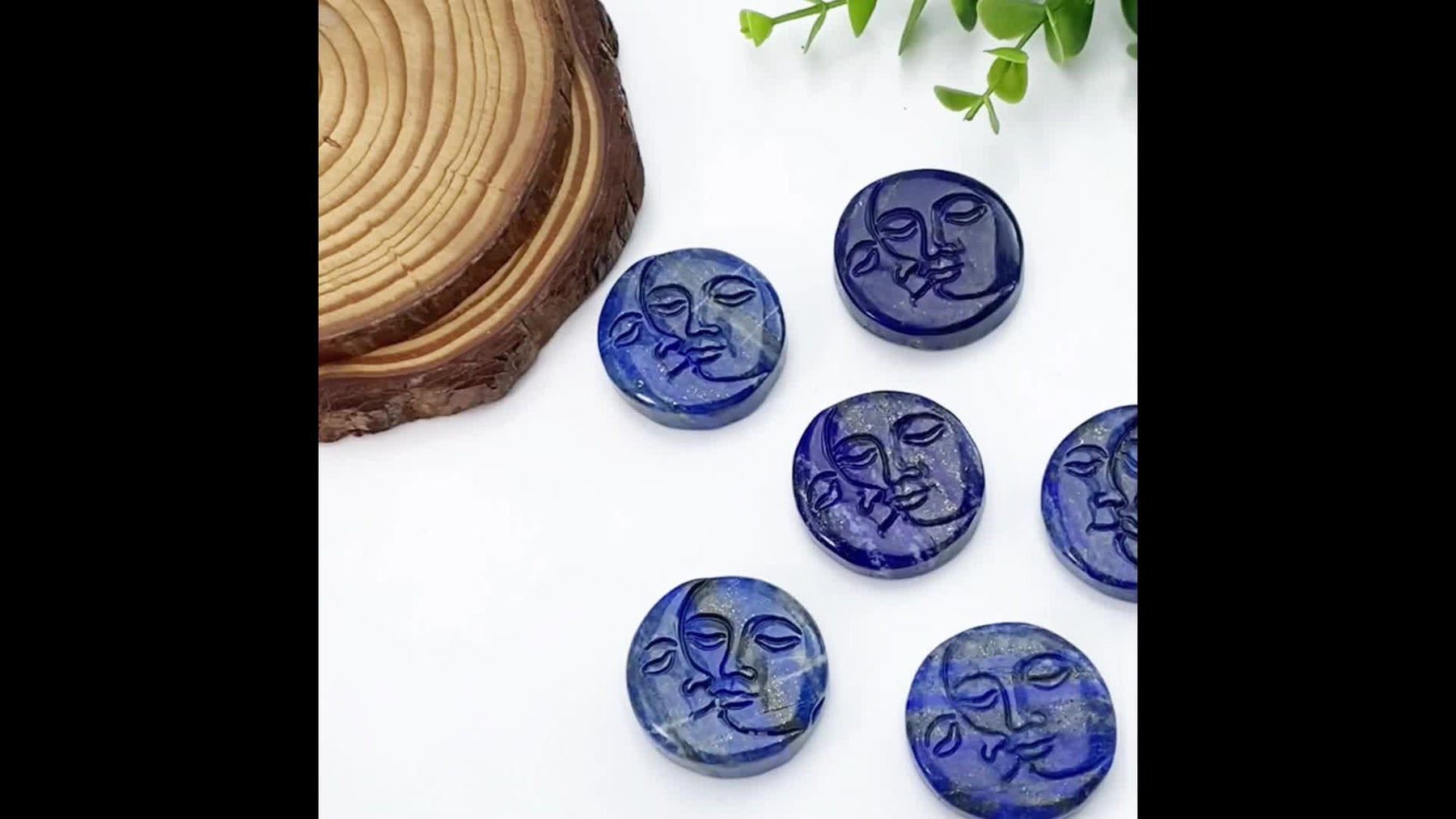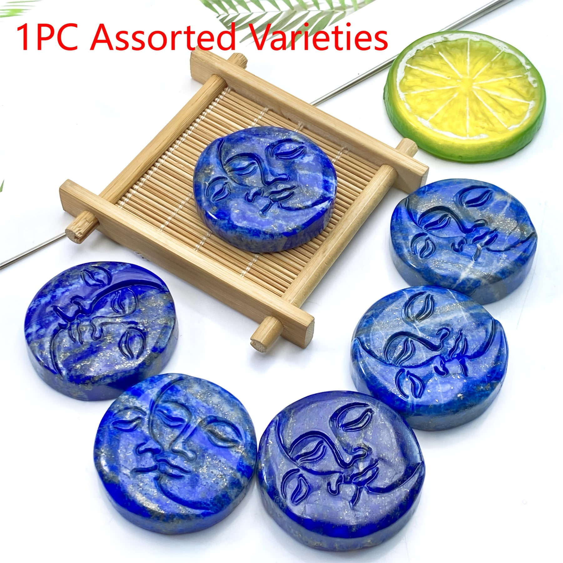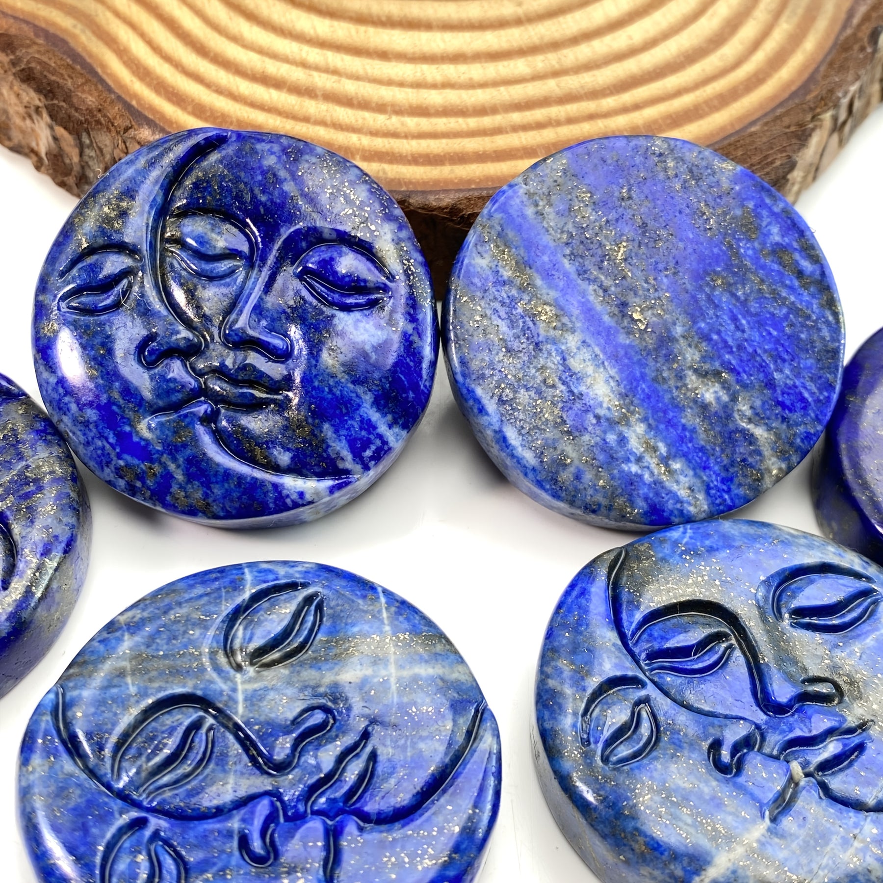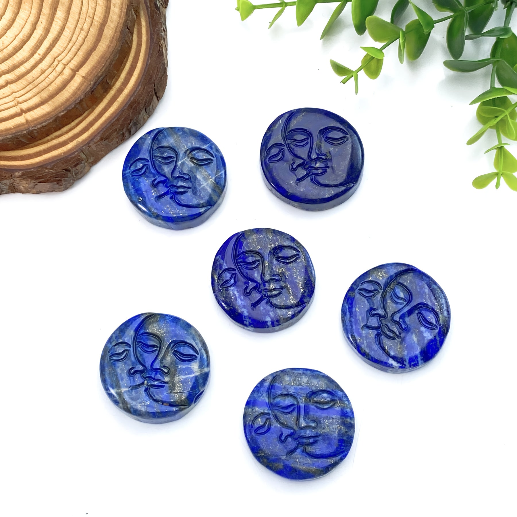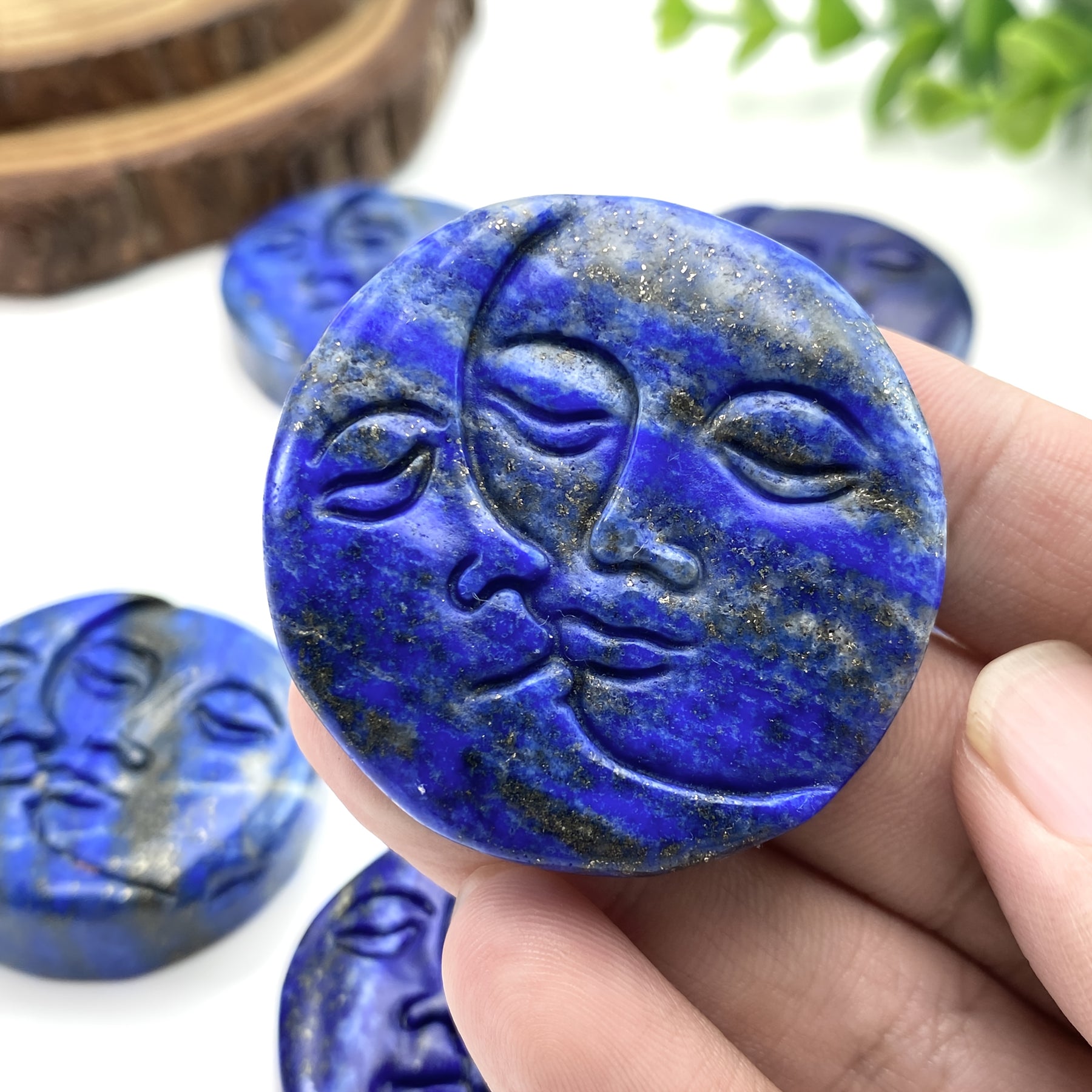 Beautiful Lapis Lazuli moon face carving round stone ideal for birthdays, Valentine's, Mother's Day, Christmas, home decor, and parties.