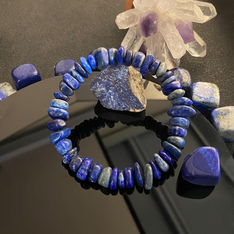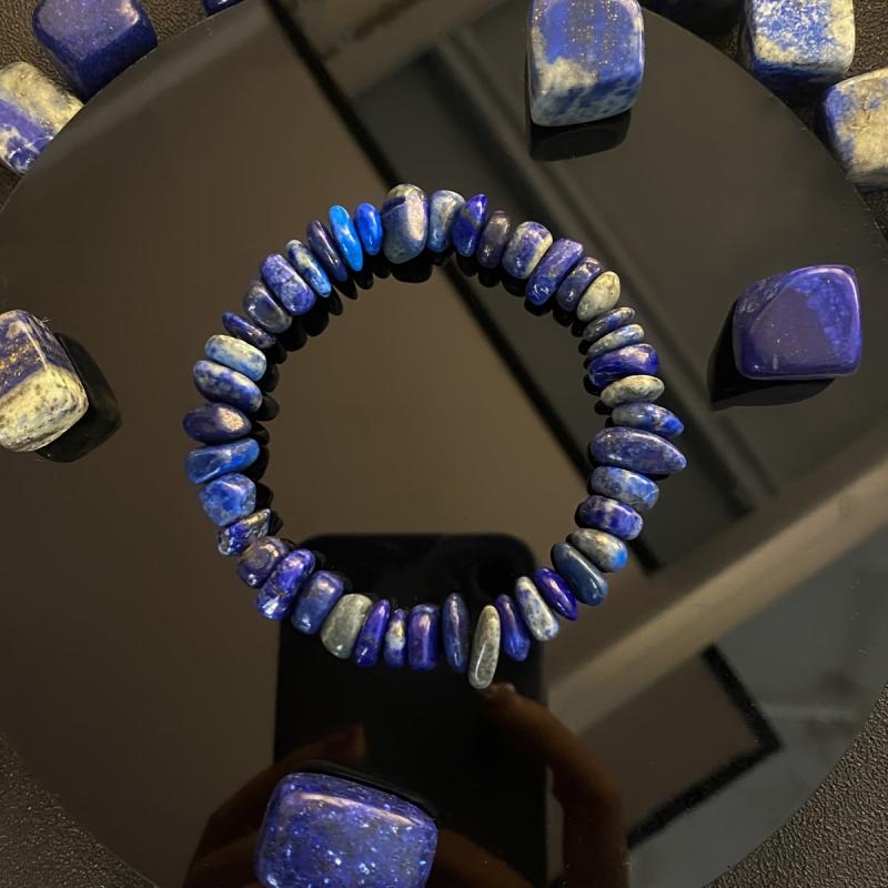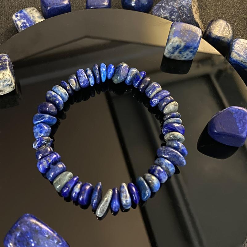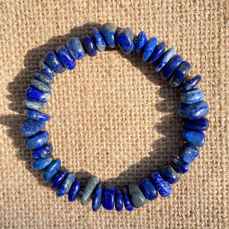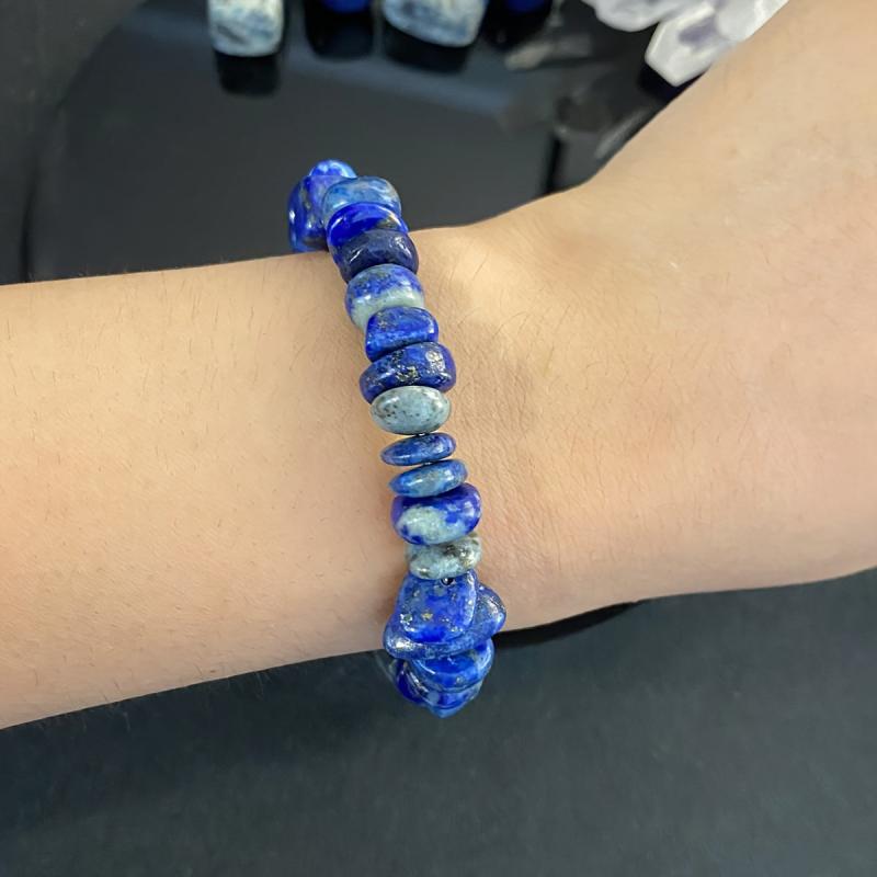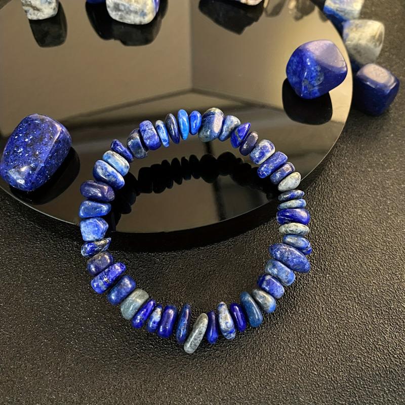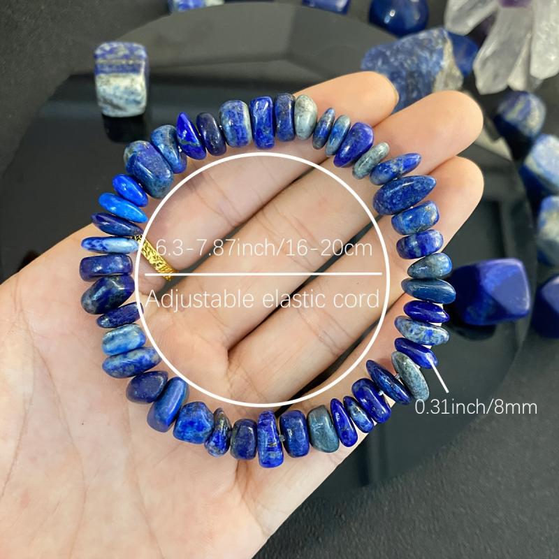 This bracelet features 8-12mm natural Lapis Lazuli stone beads with irregular and grey beads. It is adjustable with an elastic band, suitable for both men and women.