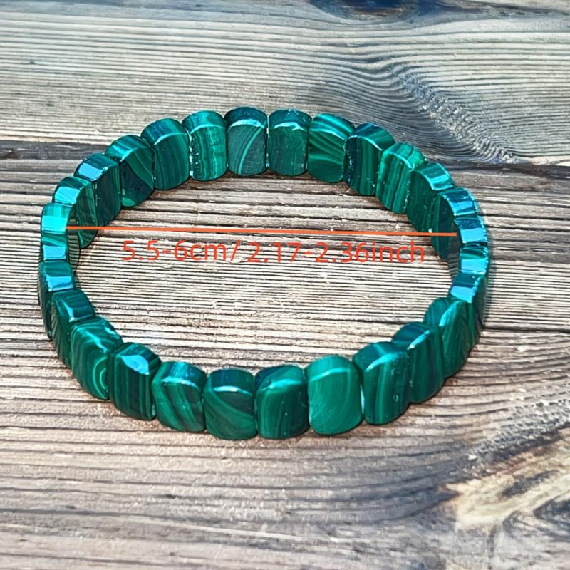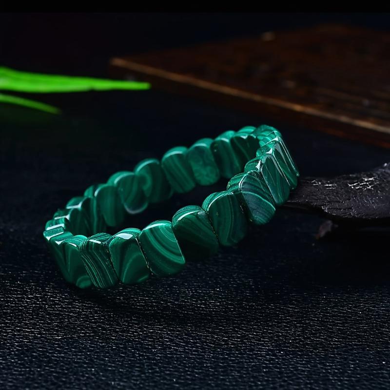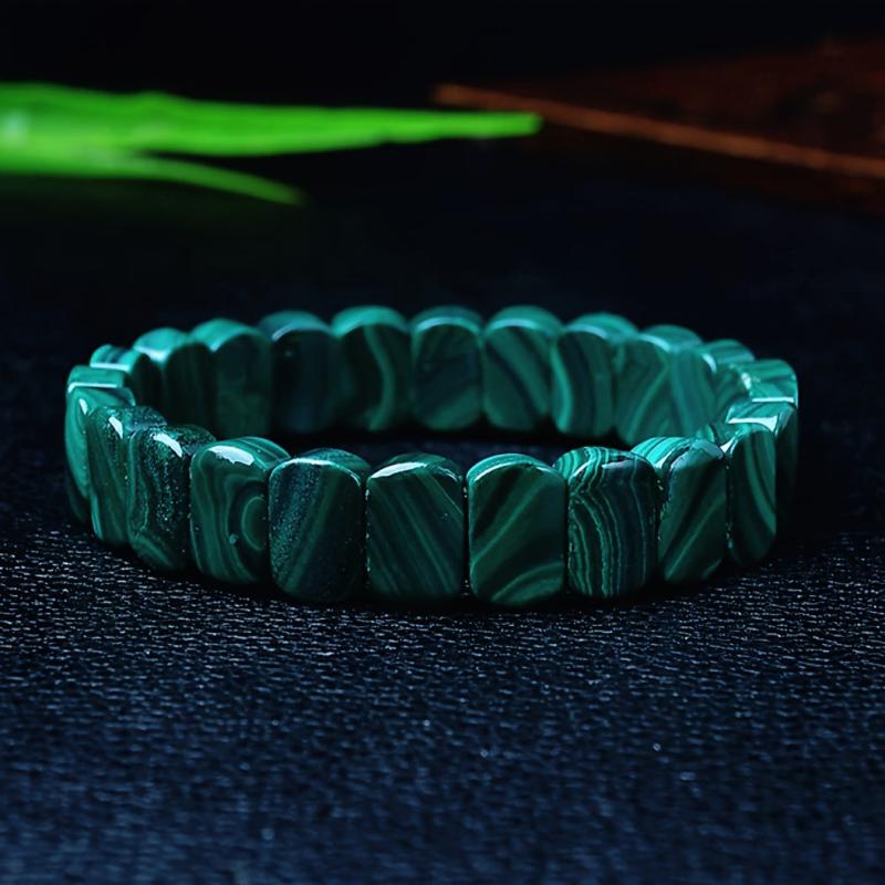 Elegant and auspicious, this single loop malachite bracelet is an ideal gift for Halloween, Christmas, or Thanksgiving. The vibrant green crystal accents add a touch of beauty.