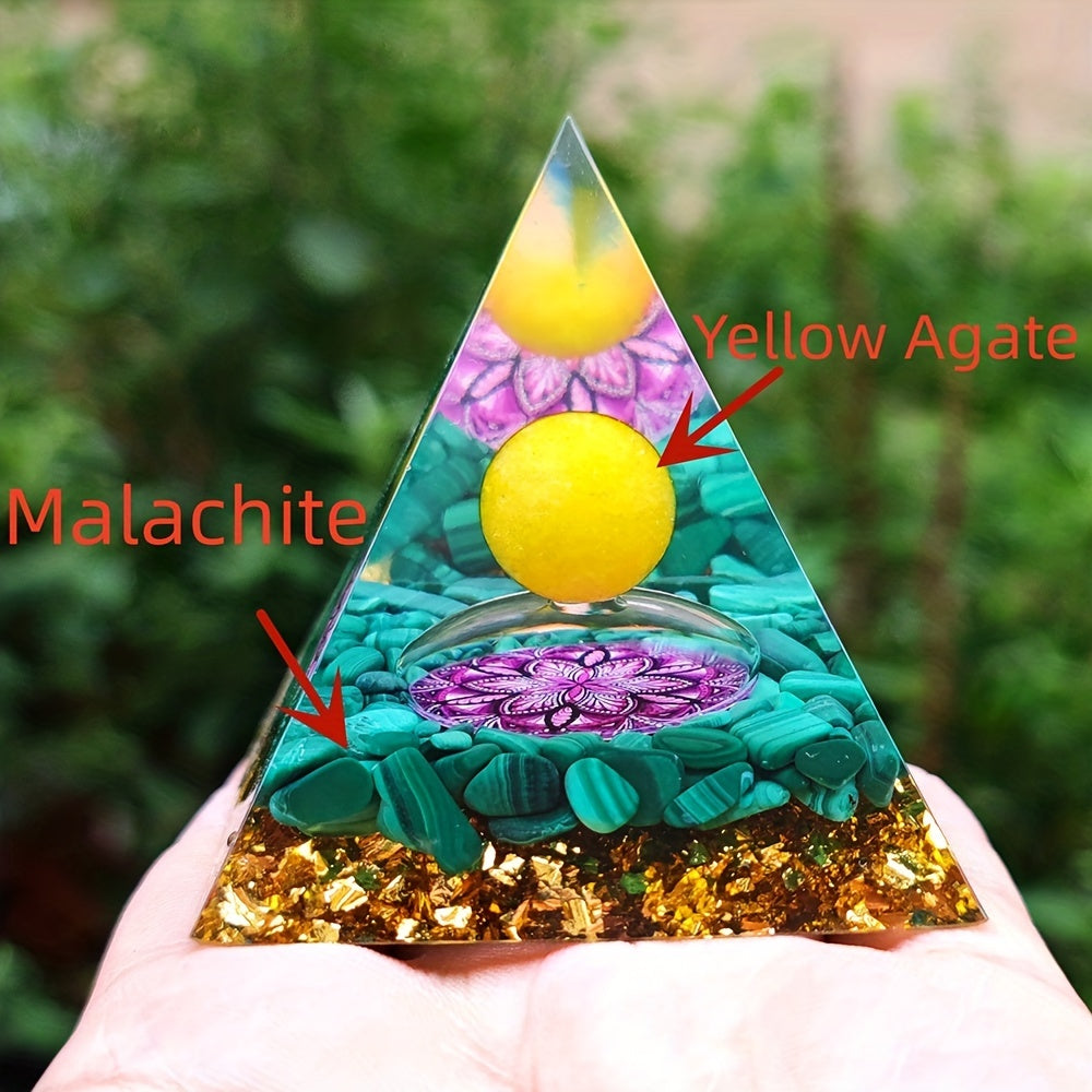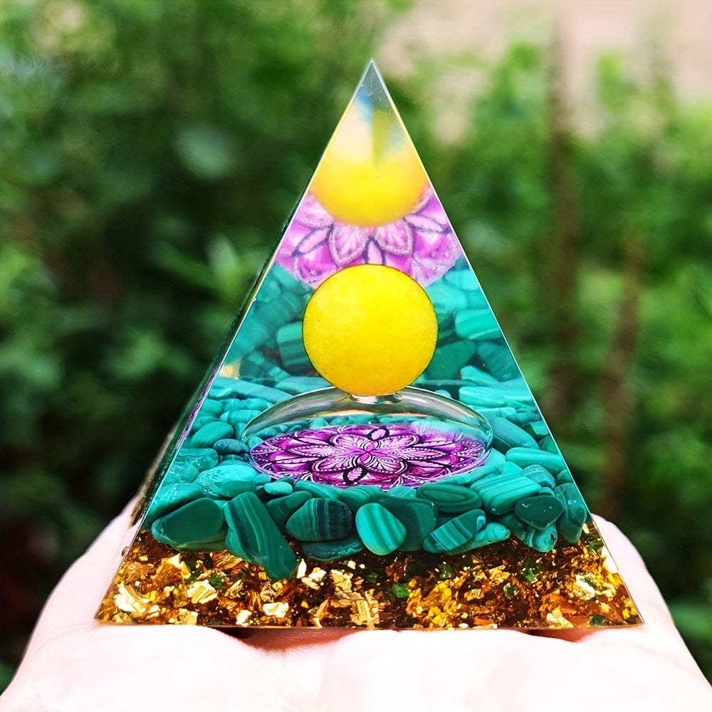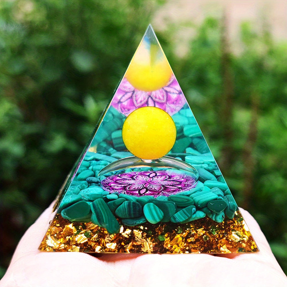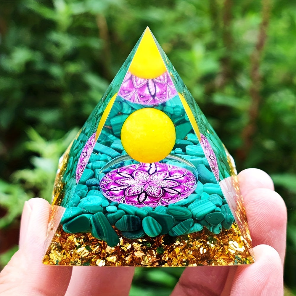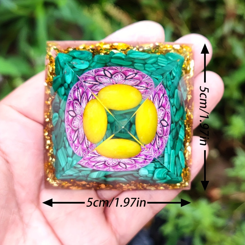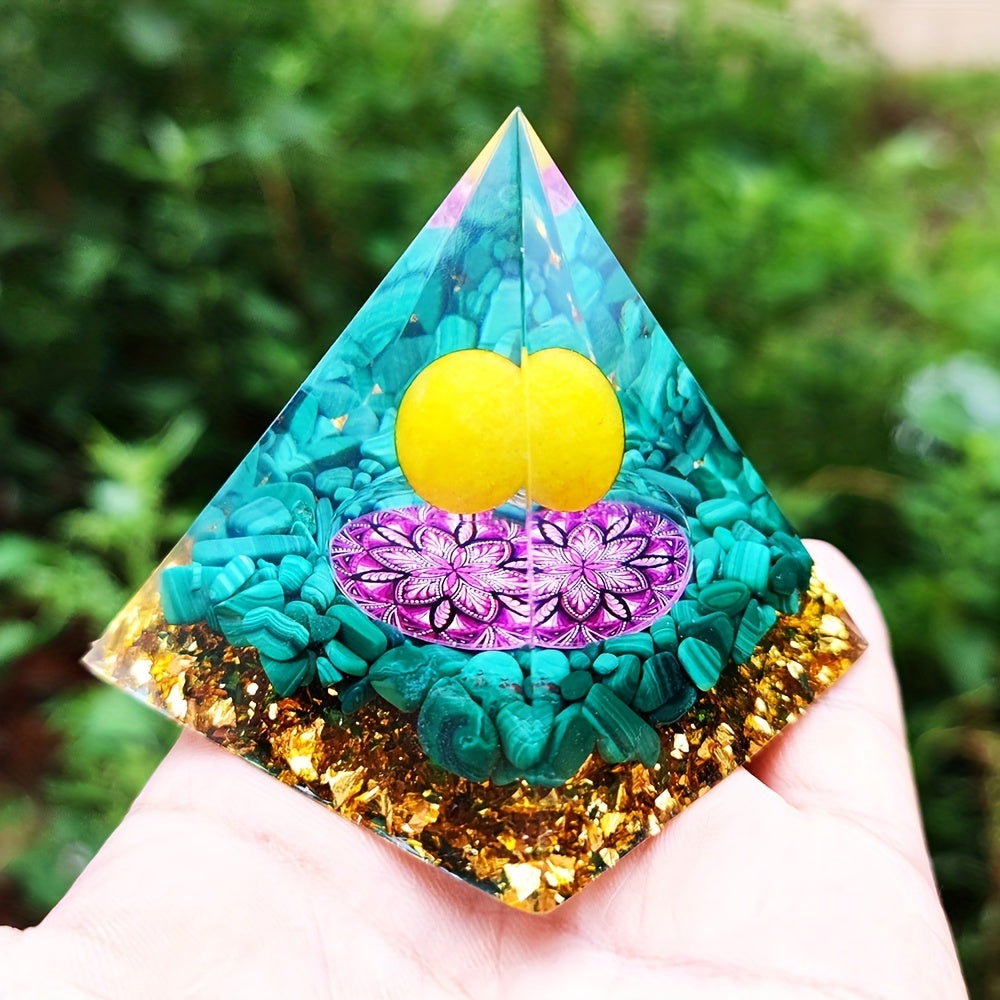 Enhance your energy with this powerful Malachite orgonite pyramid. Perfect for meditation, healing, and chakra balancing.