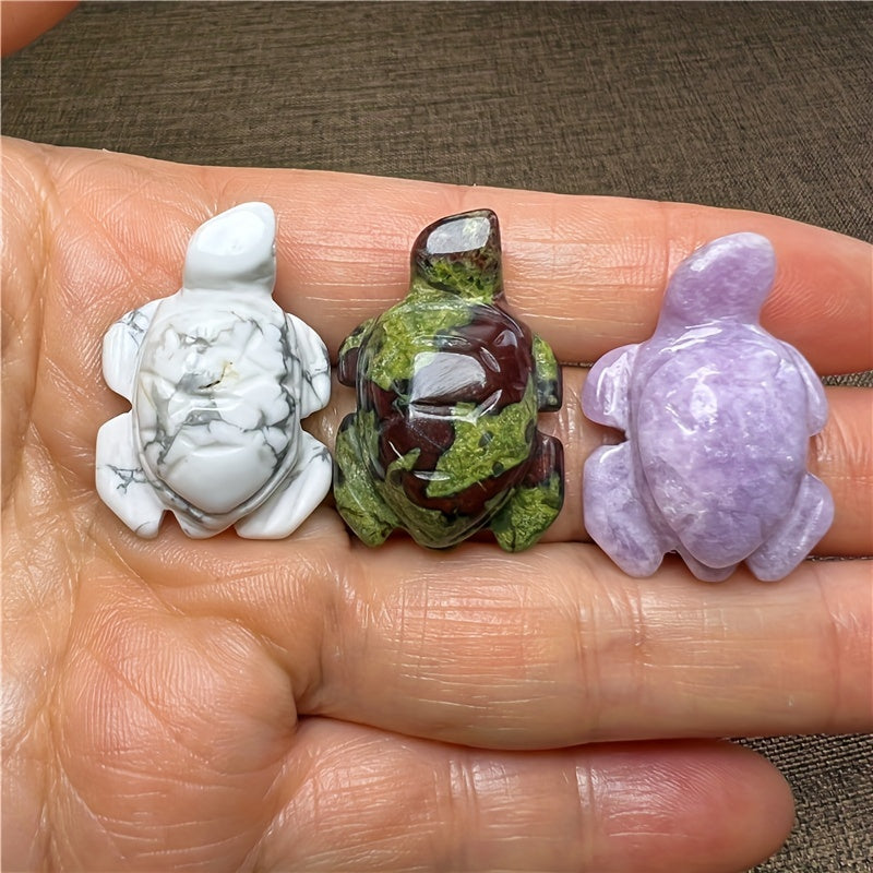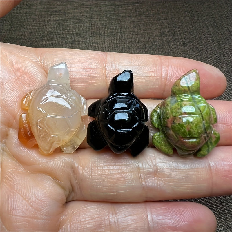 Add a touch of nature to your home with this baby turtle carving made from natural mixed crystal. This healing stone brings positive energy and charm to any space.