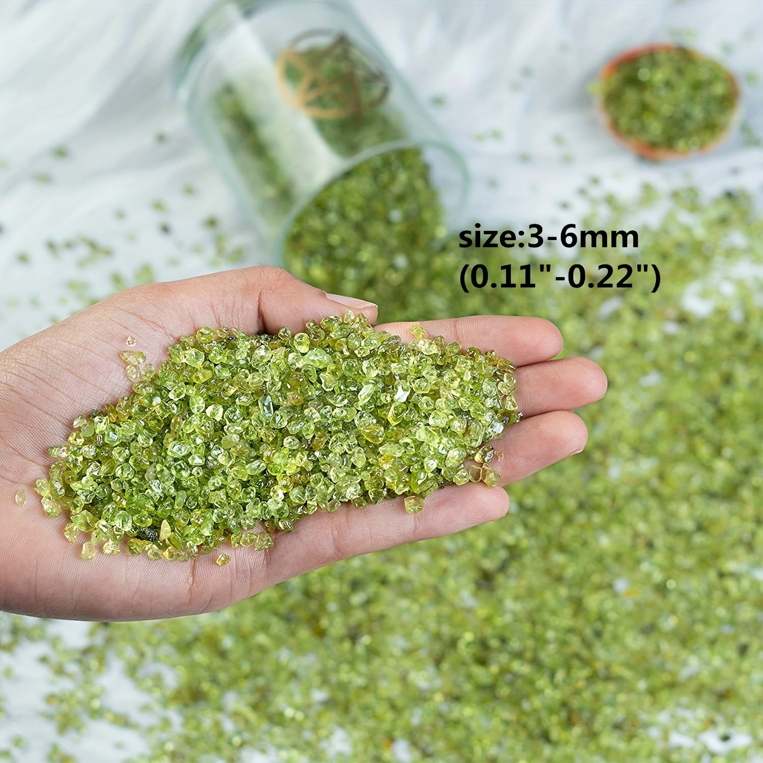 Enhance your space with these natural peridot crushed stones, known for their healing properties. Perfect for interior decorative use.