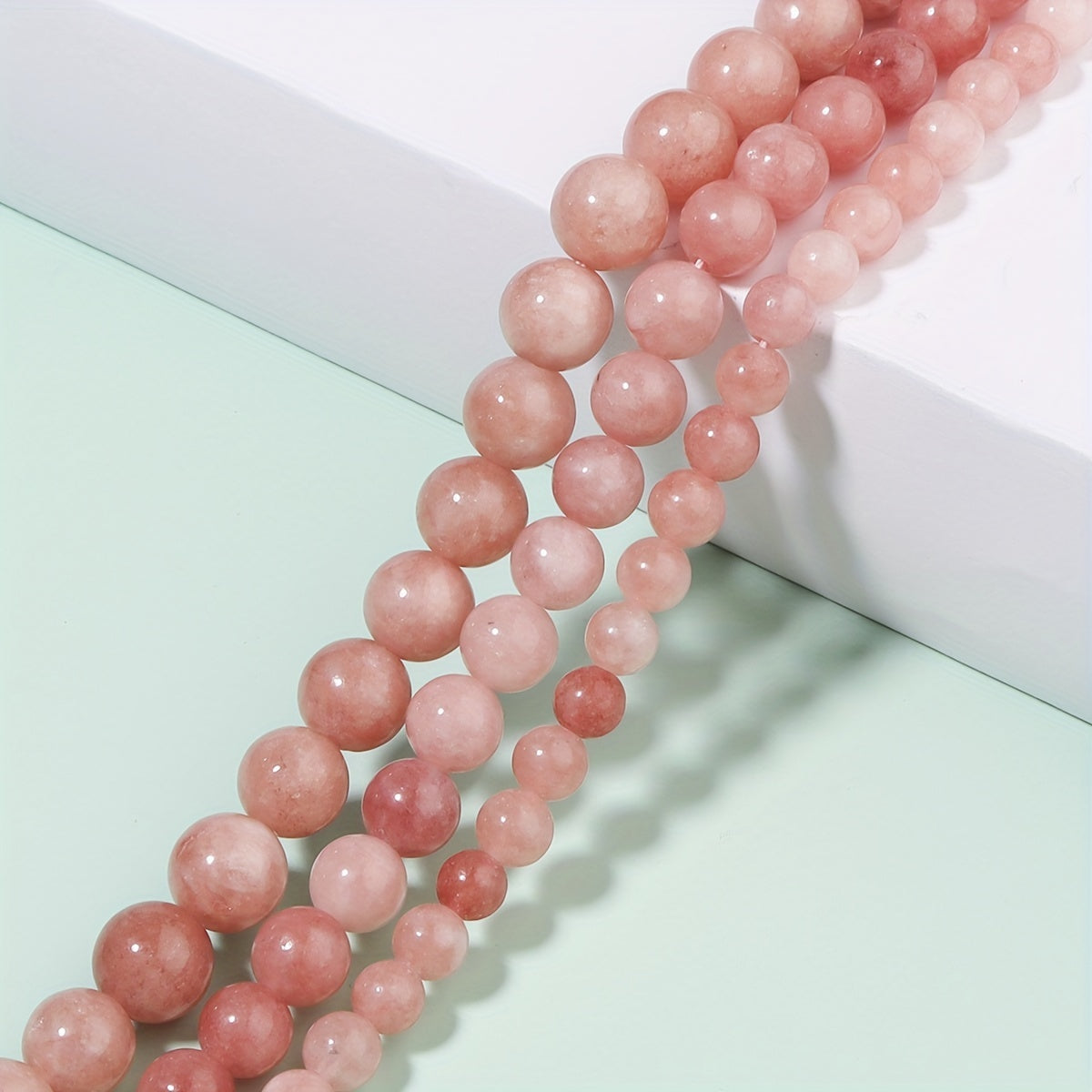 Add a touch of elegance to your jewelry with these natural pink chalcedony jade round beads. Perfect for making DIY bracelets and accessories. Each pack contains 15 beads.