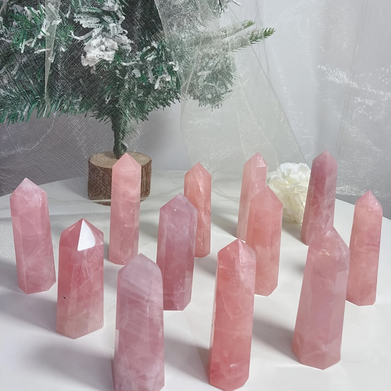Enhance your space with this beautiful naturally pink crystal hexagonal prism ornament.