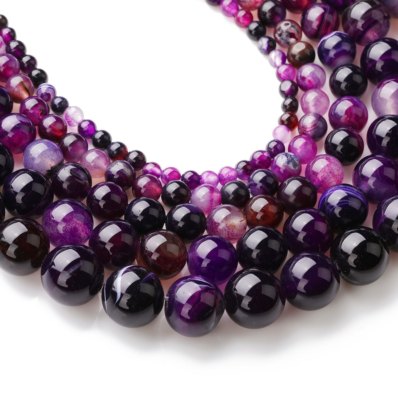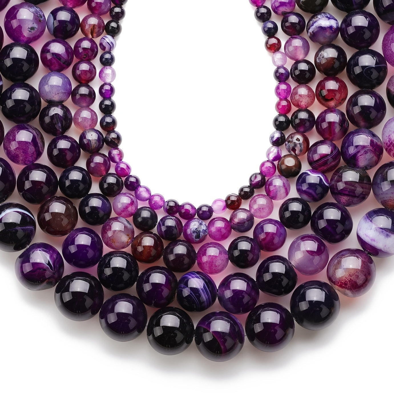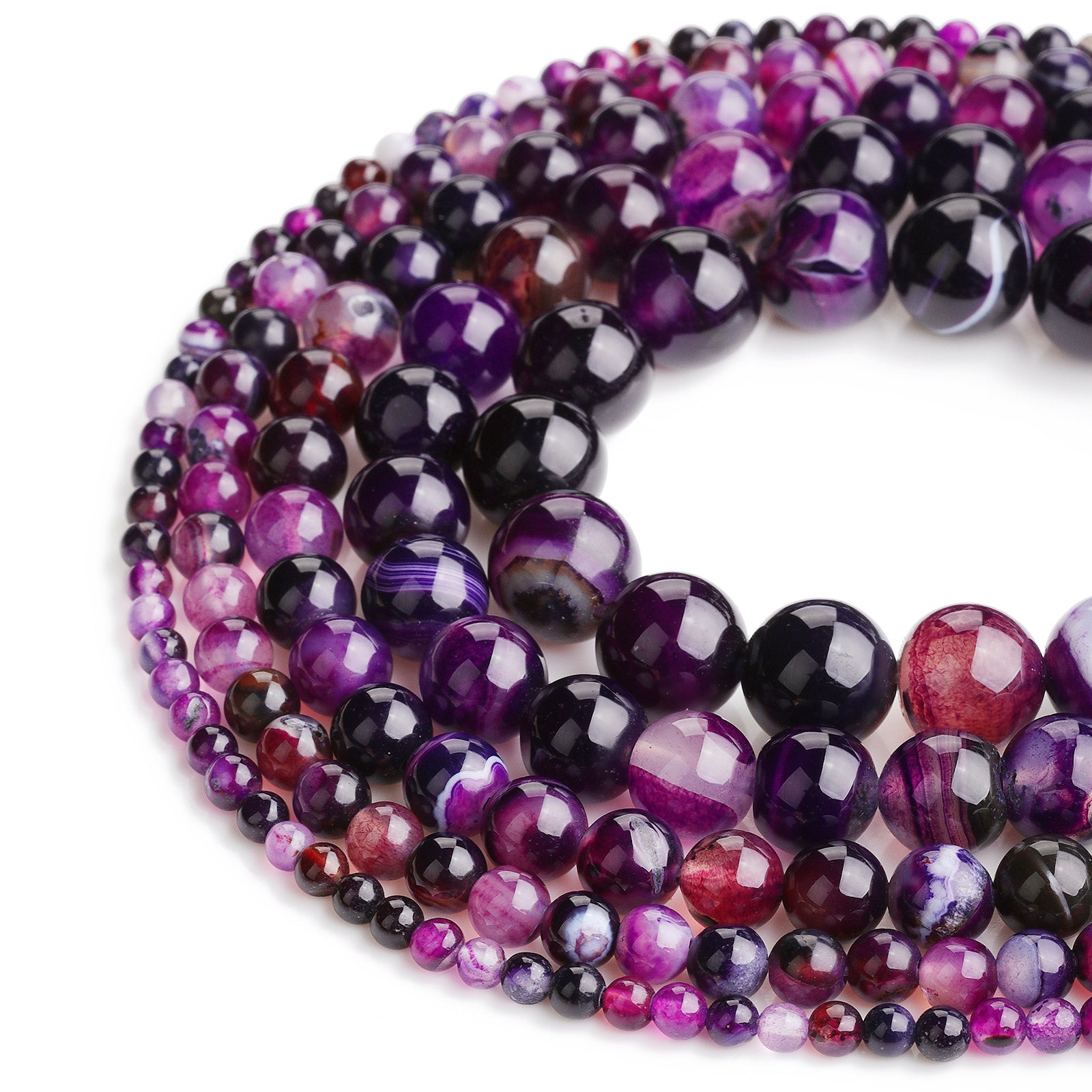 Create stunning jewelry with these 4mm natural purple stripe agate beads. Perfect for necklaces, earrings, and bracelets. Add a touch of elegance to your designs.