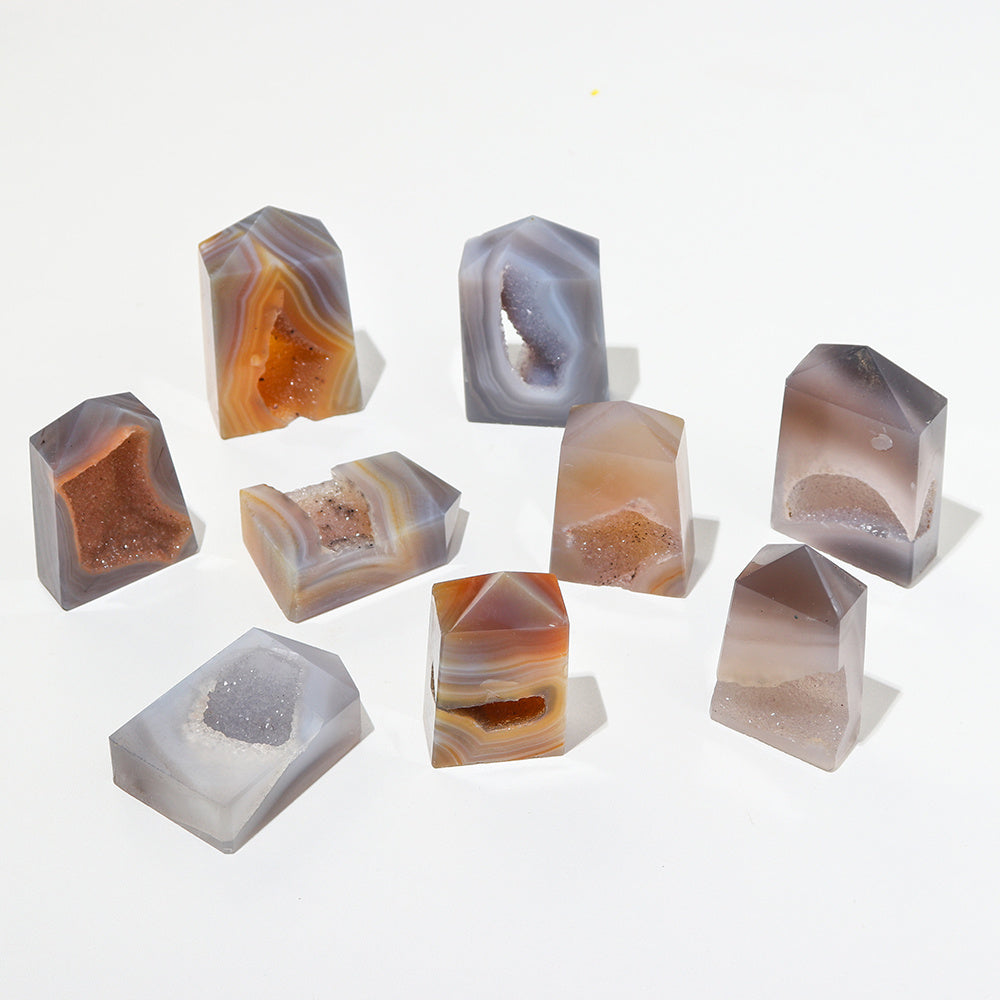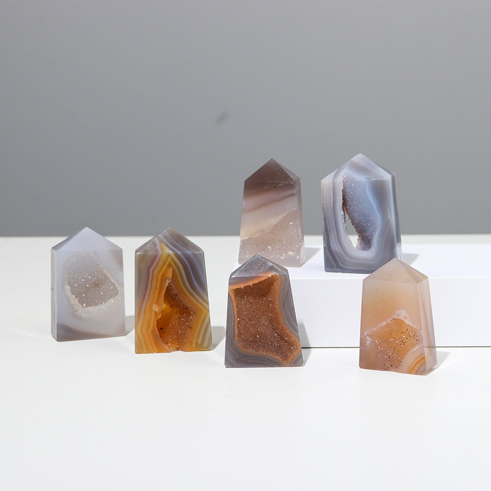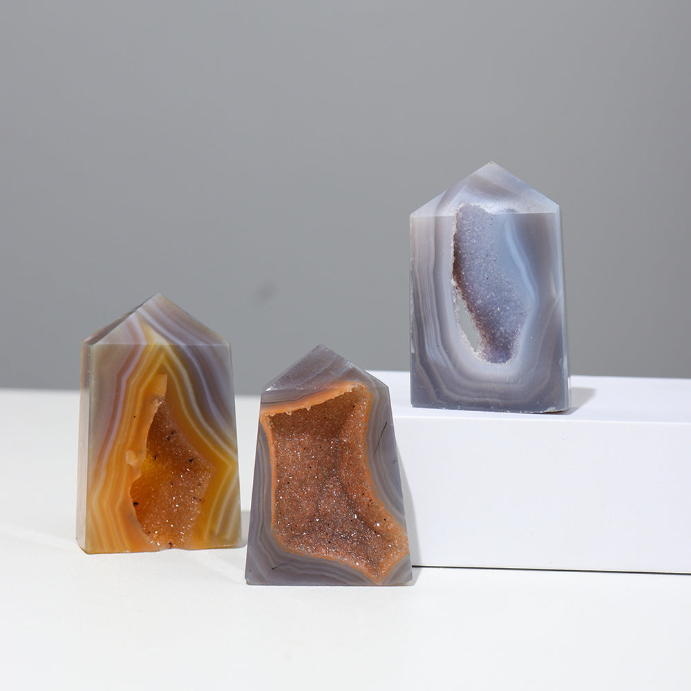 Add a touch of nature with this stunning natural quartz tower ornament. The agate crystal cave power gemstone will bring positive energy to your space.