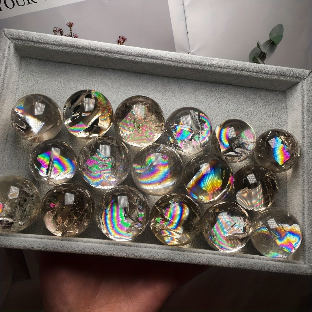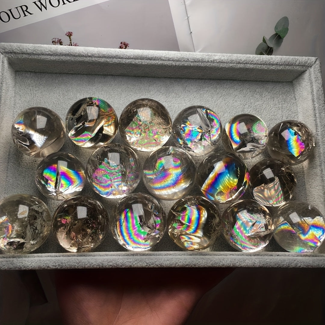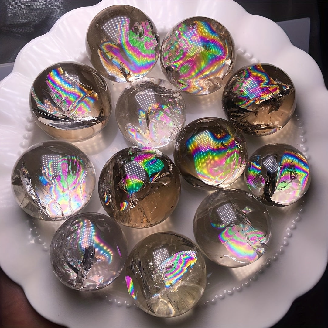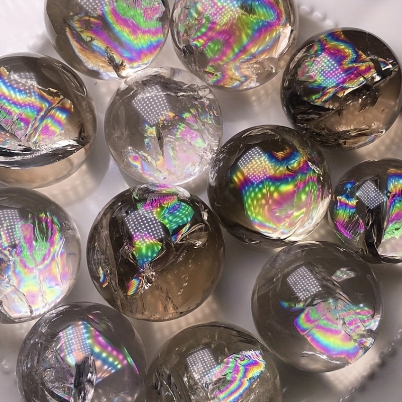 Experience the soothing energy of this natural rainbow smoky quartz crystal ball. Perfect for healing, reiki, and energy work. Enhance your home decor with this beautiful crystal piece.